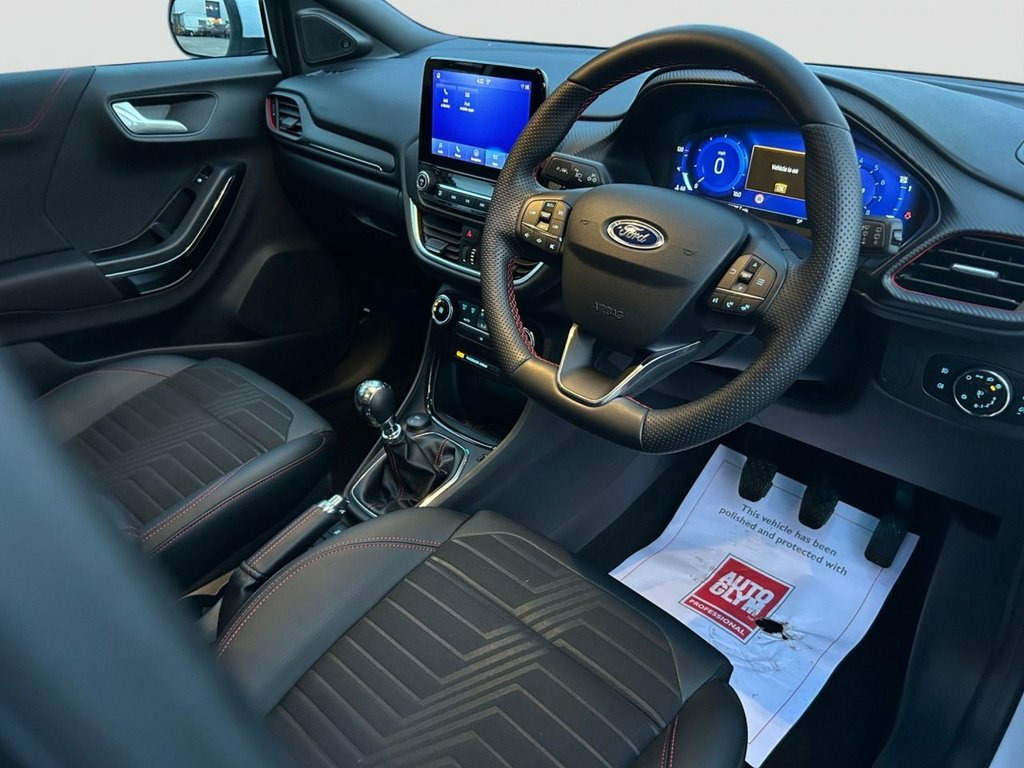 B&O Premium Audio System and Ford SY, Wireless Charging Pad with Electronic Ai, 18in Alloy Wheels - 5-Spoke - Matt Black, Acoustic Laminated Windscreen, Active Grille Shutter, Ecoboost Hybrid Tailgate Badge, Electric Windows - Front and Rear, Front Bumper - Unique ST-Line Sport Desi, Large Rear Spoiler - Body Colour with Ce, Locking Wheel Nuts, Lower Bodyside Moulding - Body Colour, Power-Foldable Heated Door Mirrors with , Privacy Glass, Puma Badge, Quickclear Heated Windscreen, Rear Bumper Body Colour - Diffuser, ST-Line Badge, ST-Line Body Styling Kit, Tailgate - Manual, Tyre Inflation Kit, Automatic Dimming Rear View Mirror, Carbon-Look Interior Deco Spears, Centre Console - Premium