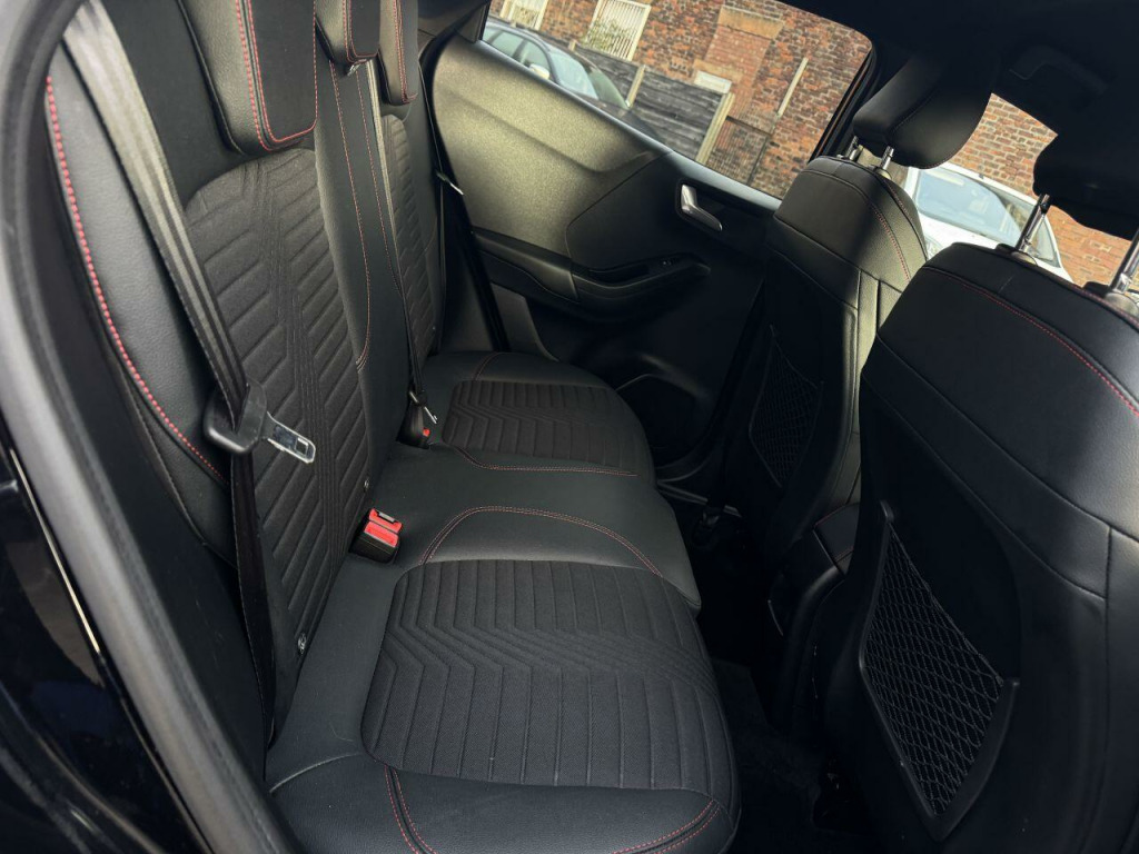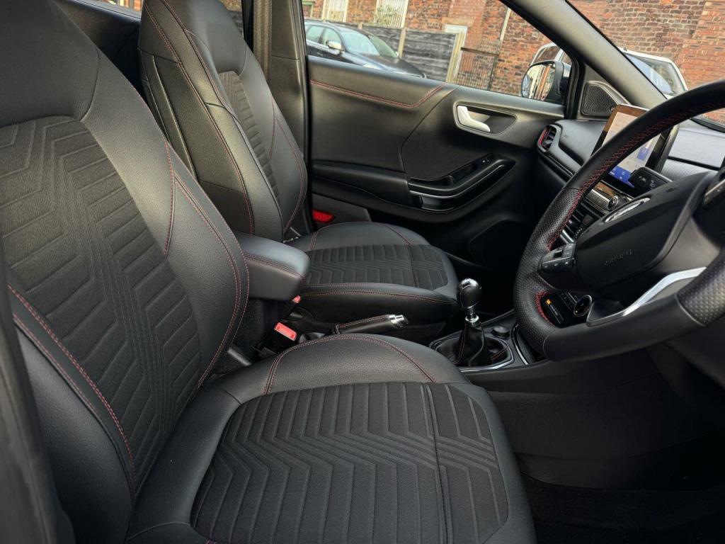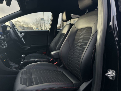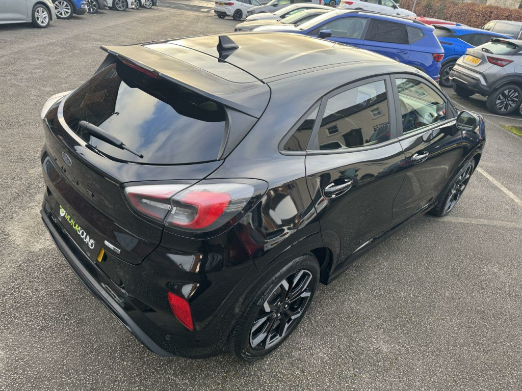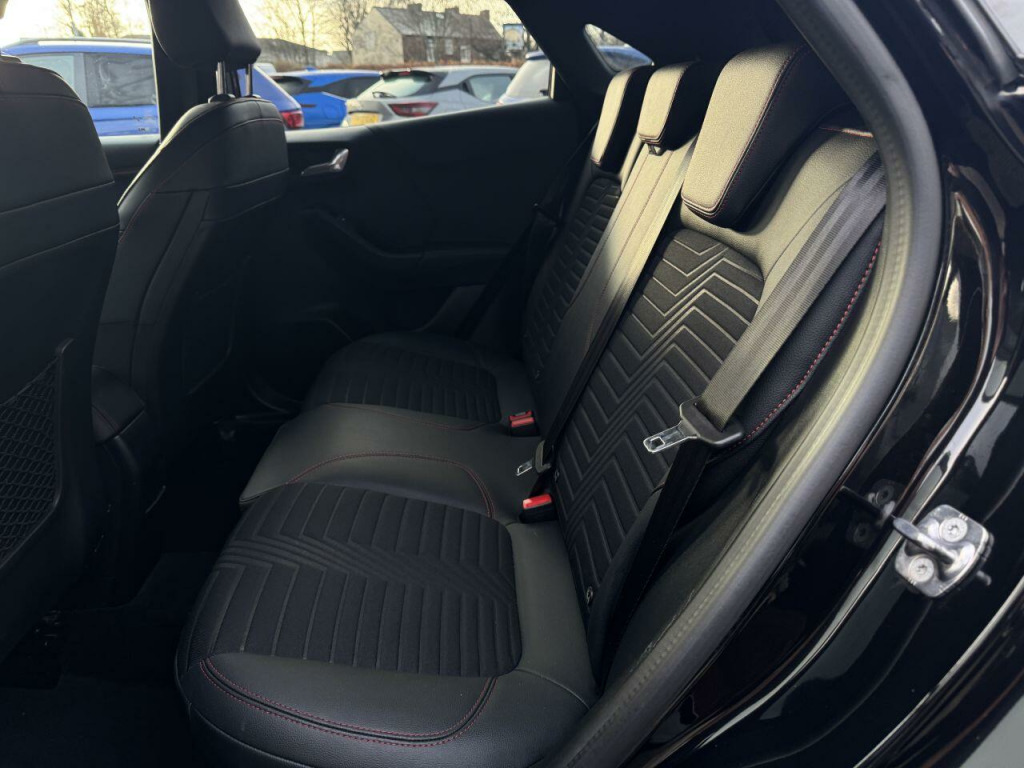. 18in Alloy Wheels - 5-Spoke - Matt Black Machined Finish, ABS - Anti-lock Braking System, Acoustic Laminated Windscreen, Active Grille Shutter, Automatic Dimming Rear View Mirror, Automatic Headlights with Rain-Sensing Wipers and Auto High Beam, B&O Premium Audio System and Ford SYNC 3 Navigation, Carbon-Look Interior Deco Spears, Centre Console - Premium with Openable Stowage Area with USB Connectivity - 2 Cupholders and 12v Power Point, Courtesy Lights - Ambient LED Courtesy Lighting - Single Colour, Cruise Control with Intelligent Speed Assist, Drivers Manual 4-Way Seat Adjustment with Manual Lumbar Adjust, Ecoboost Hybrid Tailgate Badge, Electric Windows - Front and Rear, Electronic Air Temperature Control - EATC, Emergency Brake Warning - Automatic Hazard Warning Lights, ESC - Electronic Stability Control and Hill Start Assist, First Aid Kit Strap, Ford MegaBox Extended Bootspace, Ford Power Starter Button, Front Bumper - Unique ST-Line Sport Design - Body Colour, Front Floor Mats, Front Fog Lights with Cornering lights and LED Rear Lamps, Front Seats - Sports Style, Full Digital 12.3in Instrument Cluster, Gear Knob - Aluminium, Handbrake - Black Sensico Trimmed with Stitching, Headliner - Deluxe, Instrument Panel - High Level, Intelligent Speed Assistance, Lane Keeping Aid with Lane Departure Warning, Large Rear Spoiler - Body Colour with Centre High Mounted Stop Light, Locking Wheel Nuts, Lower Bodyside Moulding - Body Colour, Passenger 4-Way Seat with Lumbar Adjustment, Post Collision Braking, Power Steering, Power-Foldable Heated Door Mirrors with Puddle Lamps, Pre-Collision Assist with Autonomous Emergency Braking and Pedestrian-Cyclist Detection, Privacy Glass, Projector Headlamps with LED Daytime Running Lights, Puma Badge, Quickclear Heated Windscreen, Rear Bumper Body Colour - Diffuser, Rear Parking Sensors, Rear Seats - 2-Way Head Restraint Up-Down, Rear Seats - Second Row 60-40 Folding Seats, Remote Central-Double Locking, Restrain Device Pack, Selectable Driving Modes - Normal - Eco - Sport - Slippery and Trail, Soft-feel Gearshift Boot with Red Stitching, Speed Limiter, Sports Suspension, ST-Line Badge, ST-Line Body Styling Kit, ST-Line Flat-Bottomed Leather Steering Wheel with Unique Red Stitching, Tailgate - Manual, Thatcham Alarm, Traction Control and Emergency Braking Assistance, Trip-Fuel Computer, Tyre Inflation Kit, Tyre Pressure Monitoring System - TPMS, Wireless Charging Pad with Electronic Air Temperature Control EATC, Agate Black, Partial Premium Sensico - Black with Red Stitching, Winter Pack.