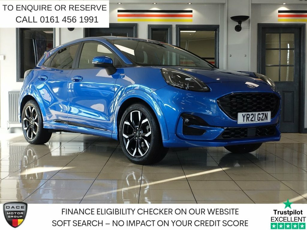 FINISHED IN STUNNING DESERT ISLAND BLUE, COMPLIMENTED WITH BLACK HALF LEATHER SPORT SEATS + EYECATCHING FORD PUMA - 1 OWNER FROM NEW, COMES WITH A FULL SERVICE HISTORY + VIRTUAL COCKPIT DIGITAL DASH DISPLAY + SATELLITE NAVIGATION + APPLE CARPLAY / ANDROID AUTO + BLUETOOTH CONNECTIVITY INCLUDING MEDIA STREAMING + PARKING SENSORS + LANE ASSIST + LEATHER MULTIFUNCTIONAL STEERING WHEEL + DAB DIGITAL RADIO + IN CAR ENTERTAINMENT WITH TOUCH SCREEN MEDIA DISPLAY + AIR CONDITIONING + HILL HOLD START ASSIST + AUTOMATIC HEADLIGHTS + LED DAYTIME RUNNING LIGHTS + ECO STOP/START SYSTEM + KEYLESS START + CRUISE CONTROL + SELECTABLE DRIVING MODES + PRIVACY GLASS + AUTOMATIC WIPERS WITH RAIN SENSORS + 60/40 SPLIT FOLDING REAR SEATS + ELECTRIC POWER FOLDING DOOR MIRRORS + HEATED WINDSCREEN + ELECTRIC WINDOWS + 18 INCH ALLOY WHEELS + VOICE COMMAND... ***NOT SURE YOU'RE ELIGIBLE FOR CAR FINANCE? CHECK TODAY USING THE FREE CAR FINANCE CHECKER ON OUR WEBSITE.*** Dace Motor Group have a dedicated team of finance experts waiting to help with your enquiry. Over the past 30 years we have forged relationships with the countrys largest and best finance houses. We are specialists in Hire Purchase (HP), Personal Contract Purchase (PCP) as well as assisting those with poor credit or previous credit problems. ------------ABOUT US------------ At Dace Specialist Car Centre Stockport, we are very proud to have been named the first Trading Standards Approved Car Retailer, with process and procedures developed 18in Alloy Wheels - 5-Spoke - Matt Black, ABS - Anti-lock Braking System, Acoustic Laminated Windscreen, Active Grille Shutter, Automatic Dimming Rear View Mirror, Automatic Headlights with Rain-Sensing W, B&O Premium Audio System and Ford SY, Carbon-Look Interior Deco Spears, Centre Console with Armrest - Stowage, Courtesy Lights - Ambient LED Courtesy L, Cruise Control - Lane Keeping Aid and La, Desert Island Blue, Driver and Passenger Seat Lumbar and Hei, Electric Windows - Front and Rear, Electronic Air Temperature Control - EAT, Electronic Stability Control - ESC with , Emergency Brake Warning - Automatic Haza, First Aid Kit Strap, Floor Mats - Front and Rear, Ford Easy Fuel System,