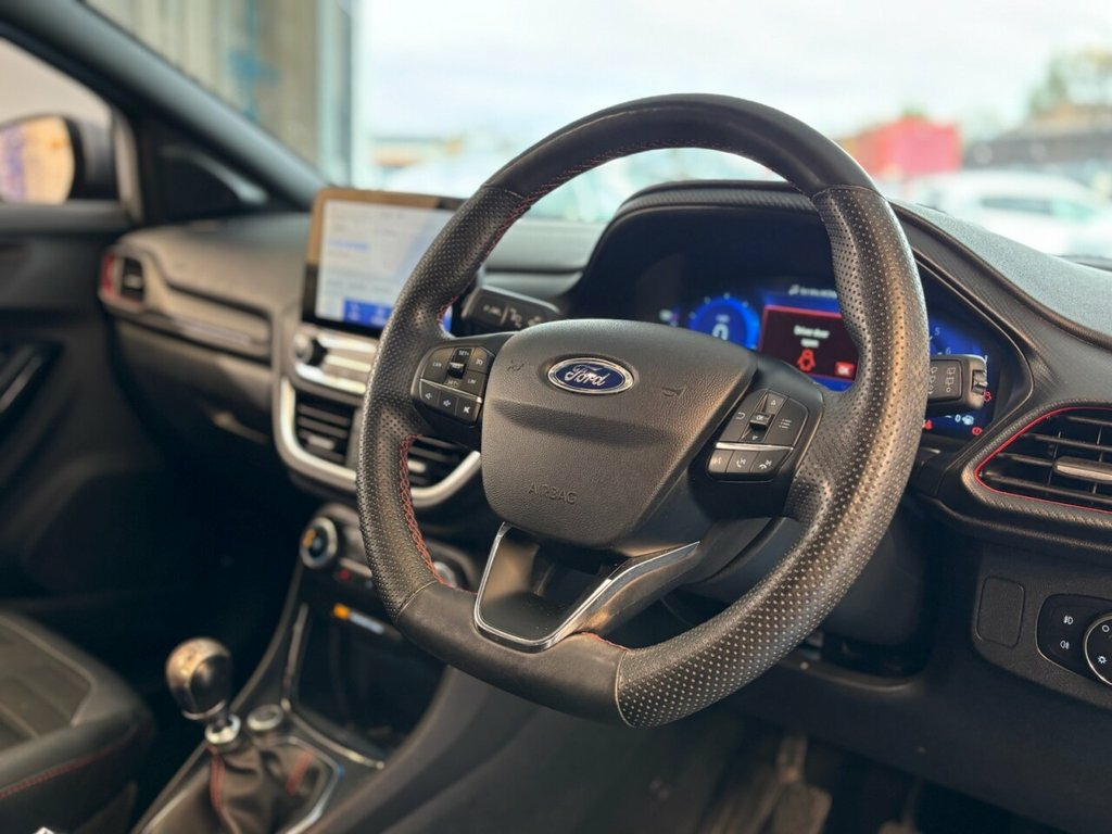 1 OWNER FROM NEW+FSH+PRIVACY+HALF LEATHER SEATS+PARK CONTROL+NAV+CLIMATE+18" ALLOYS+BLUETOOTH+MEDIA+CRUISE+HPI CLEAR+VOSA MOT HISTORY+FULL DEALER FACILITIES+GOOD MPG,+RAC CHECKED+The car is in very good condition in and out . Bodywork and interior clean for age and mileage . Interior is clean and tyres good ,Engine and gearbox in good order. This 2021 Ford Puma ST-Line X is a superb example, having been owned by just one careful keeper from new. It boasts a responsive 1.0 litre petrol engine, meeting Euro 6 emissions standards, and benefits from an MOT valid until September 2026, offering peace of mind for the road ahead. The ST-Line X trim level comes well equipped, and this particular model includes the desirable Parking Pack with front and rear sensors and a rear camera, making manoeuvring effortless. Further enhancing comfort and convenience are the Winter Pack, featuring heated seats and a heated steering wheel, and the Driver Assistance Pack which includes automatic headlights. You'll also find integrated wireless phone charging for added practicality. This Ford Puma stands out with its impressive fuel economy, achieving a highlight of 52 miles per gallon, which indicates it is more economical than many similar vehicles. Its low CO2 emissions also contribute to its appeal, suggesting a more environmentally conscious choice. This combination of efficient performance, advanced features, and excellent provenance makes this Puma ST-Line X a compelling option 18in Alloy Wheels - 5-Spoke - Matt Black, ABS - Anti-lock Braking System, Acoustic Laminated Windscreen, Active Grille Shutter, Automatic Dimming Rear View Mirror, Automatic Headlights with Rain-Sensing W, B&O Premium Audio System and Ford SY, Carbon-Look Interior Deco Spears, Centre Console with Armrest - Stowage, Courtesy Lights - Ambient LED Courtesy L, Cruise Control - Lane Keeping Aid and La, Driver and Passenger Seat Lumbar and Hei, Driver Assistance Pack - Design, Driver Impairment Monitor, Electric Windows - Front and Rear, Electronic Air Temperature Control - EAT, Emergency Brake Warning - Automatic Haza, ESC - Electronic Stability Control and H, First Aid Kit Strap, Floor Mats