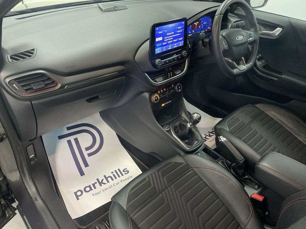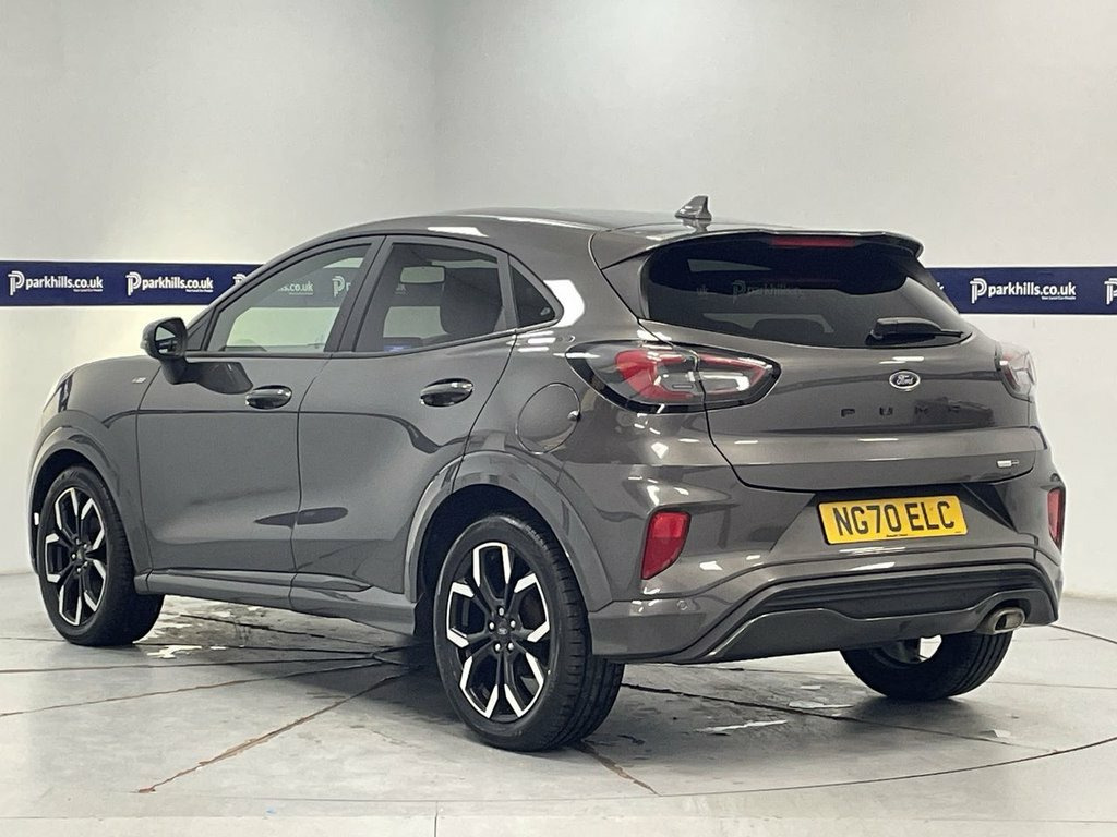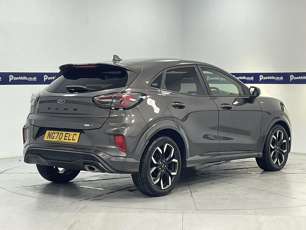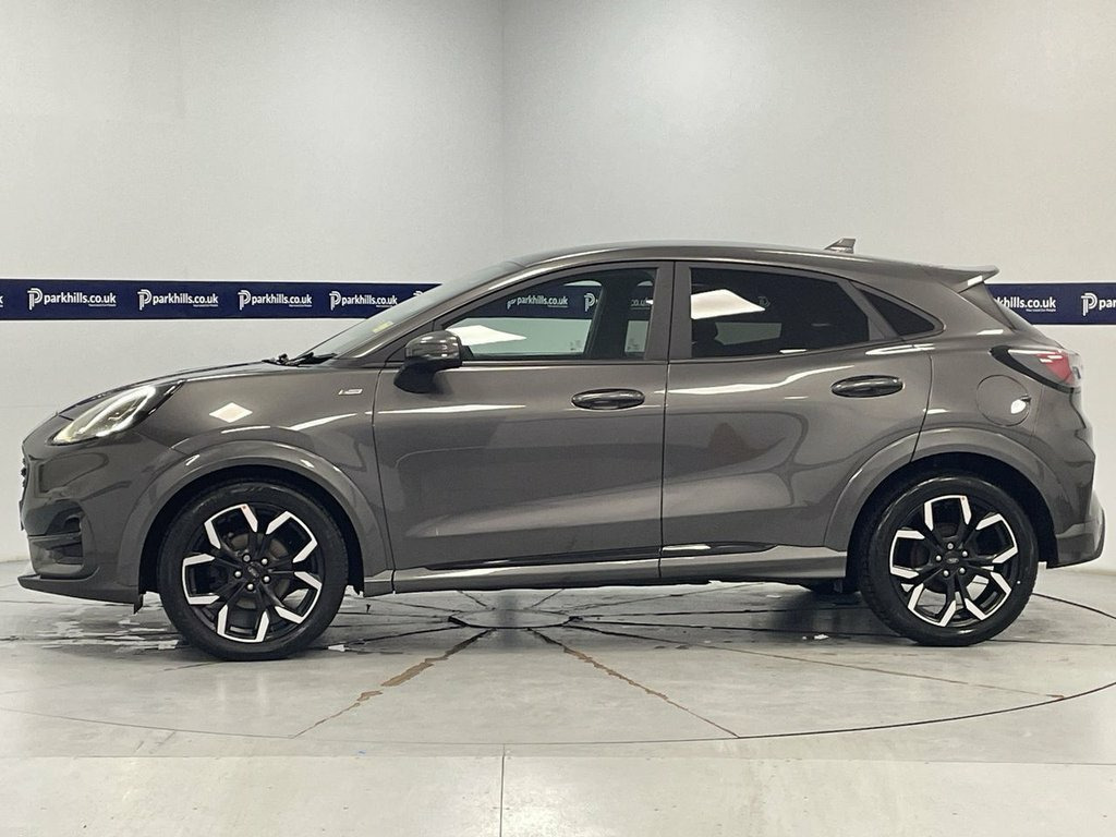 PRIVACY GLASS, FORD INFOTAINMENT FEATURING DIGITAL COCKPIT, HDD SAT NAV, DAB AND BLUETOOTH PHONE AND MEDIA ENABLING SEAMLESS MUSIC STREAMING, AIR CON WITH CLIMATE CONTROL, PARKING SENSORS, 18" ALLOYS, DAYTIME RUNNING LIGHTS, ST-LINE SPORTS HALF LEATHER, FLEXIBLE MONTHLY PAYMENTS AVAILABLE ON THIS CAR. THIS CAR IS AA APPROVED AND SOLD WITH A 145 POINT AA INSPECTION CERTIFICATE AND A NATIONWIDE PARTS AND LABOUR WARRANTY This stylish compact SUV finished in Magnetic grey metallic is equipped with a responsive 1.0L petrol engine and meets Euro 6 emission standards. Inside, you'll find a premium B&O Sound System integrated with Ford SYNC 3 Navigation, offering seamless connectivity through Android Auto, Apple CarPlay, and Bluetooth. Enjoy the convenience of Electronic Air Temperature Control for a comfortable cabin environment, along with wireless phone charging and rear parking sensors to assist with your manoeuvres. The Ford Puma ST-Line X stands out with its impressive fuel economy, achieving up to 52 miles per gallon, which is a significant advantage for everyday driving. Its low CO2 emissions also contribute to a more environmentally conscious choice compared to many other vehicles in its class. This combination of advanced technology, comfort features, and efficient performance makes this Puma a compelling option for those seeking a well equipped and economical compact SUV, sports half leather interior, heated screen, start-stop, electric windows and mirrors, 18in Alloy Wheels - 5-Spoke - Matt Black, ABS - Anti-lock Braking System, Acoustic Laminated Windscreen, Active Grille Shutter, Automatic Dimming Rear View Mirror, Automatic Headlights with Rain-Sensing W, B&O Premium Audio System and Ford SY, Carbon-Look Interior Deco Spears, Centre Console with Armrest - Stowage, Courtesy Lights - Ambient LED Courtesy L, Cruise Control - Lane Keeping Aid and La, Driver and Passenger Seat Lumbar and Hei, Electric Windows - Front and Rear, Electronic Air Temperature Control - EAT, Electronic Stability Control - ESC with , Emergency Brake Warning - Automatic Haza, First Aid Kit Strap, Floor Mats - Front and Rear, Ford Easy Fuel System, Ford MegaBox Extend