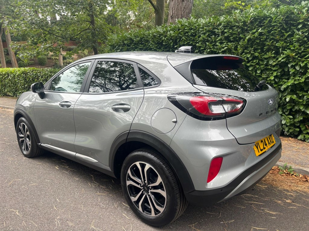 This 2024 Ford Puma T Titanium is a superb example, having been cherished by just one owner and boasting exceptionally low mileage for its year at only 8490 miles.  Powered by an efficient 1.0 litre petrol hybrid engine and meeting Euro 6 emission standards, this stylish compact SUV offers a refined driving experience.  Its Titanium trim level comes equipped with a host of desirable features, including a rear view camera complemented by rear parking sensors and parking assistance for effortless manoeuvring.  Inside, you'll find the convenience of Electronic Automatic Temperature Control for a comfortable cabin environment, while LED headlights with integrated daytime running lights ensure excellent visibility.  The Puma Titanium truly stands out with its advanced technology, featuring a large 12 inch landscape touchscreen display that seamlessly integrates with your smartphone through wireless Apple CarPlay and Android Auto. This system, part of the Ford SYNC Navigation package, also includes a 6 speaker sound system, FordPass Connect, and Emergency Assist, offering a connected and safe journey. These features demonstrate a higher level of specification and convenience compared to many other vehicles in its class, making this particular Ford Puma a compelling choice for those seeking quality and modern amenities. 12in Landscape Touchscreen Display - Wireless Apple CarPlay and Android Auto - 6 Speakers - Ford SYNC Navigation - FordPass Connect and Emergency Assist,17in Alloy Wheels - Machined Finish - Absolute Black,ABS - Anti-lock Braking System,Airbags - Driver and Front Passenger,Automatic Headlights with Rain-Sensing Wipers and Auto High Beam,Cruise Control with Intelligent Speed Assist,Drivers Manual 4-Way Seat Adjustment with Manual Lumbar Adjust,Electric Windows - Front and Rear,Electronic Automatic Temperature Control - EATC,Ford MegaBox Extended Bootspace,Ford Power Start Button,Instrument Cluster - 12.8 Full Digital,LED Headlights with Daytime Running Lights,LED Rear Lights,Lane Keeping Aid with Lane Departure Warning,Passengers Seat - 2-Way,Power Adjustable and Foldable Door Mirrors,Power Steering,Pre-Collision Assist with Autonomous Emergency Braking and Pedestrian-Cyclist Detection,Privacy Glass - Rear,Quickclear Heated Windscreen,Rear Spoiler - Body Colour,Rear View Camera with Rear Parking Sensors,Selectable Driving Modes - Normal - Eco - Sport - Slippery and Trail,Standard Suspension,Tailgate - Manual,Tyre Inflation Kit,Cloth - Black with Grey Stitching