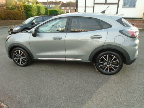 Boasting exceptionally low mileage for its age, this 2020 Ford Puma T Titanium represents a superb ownership opportunity. With only one owner from new and a mere 20,207 miles on the clock, this Euro 6 compliant 1.0L petrol model comes with a full service history, most recently serviced on 16th December 2024 at 16,843 miles, finished in Solar Silver metallic. A clear vehicle history check and 12 months MOT provided on purchase offer further peace of mind, alongside a 3 month warranty. This Titanium trim level is enhanced by the Titanium First Edition Pack, featuring adaptive cruise control, front and rear parking sensors, heated seats, and a heated steering wheel. Additionally, the Driver Assistance Pack includes blind spot assistance and a rear camera, complemented by privacy glass and convenient wireless phone charging. The Ford Puma T Titanium stands out with its impressive fuel economy and its low CO2 emissions, indicating a more environmentally conscious choice compared to many similar vehicles. These highlights, combined with its comprehensive feature set and excellent provenance, make this Puma a compelling option for those seeking a well maintained and feature rich compact SUV.