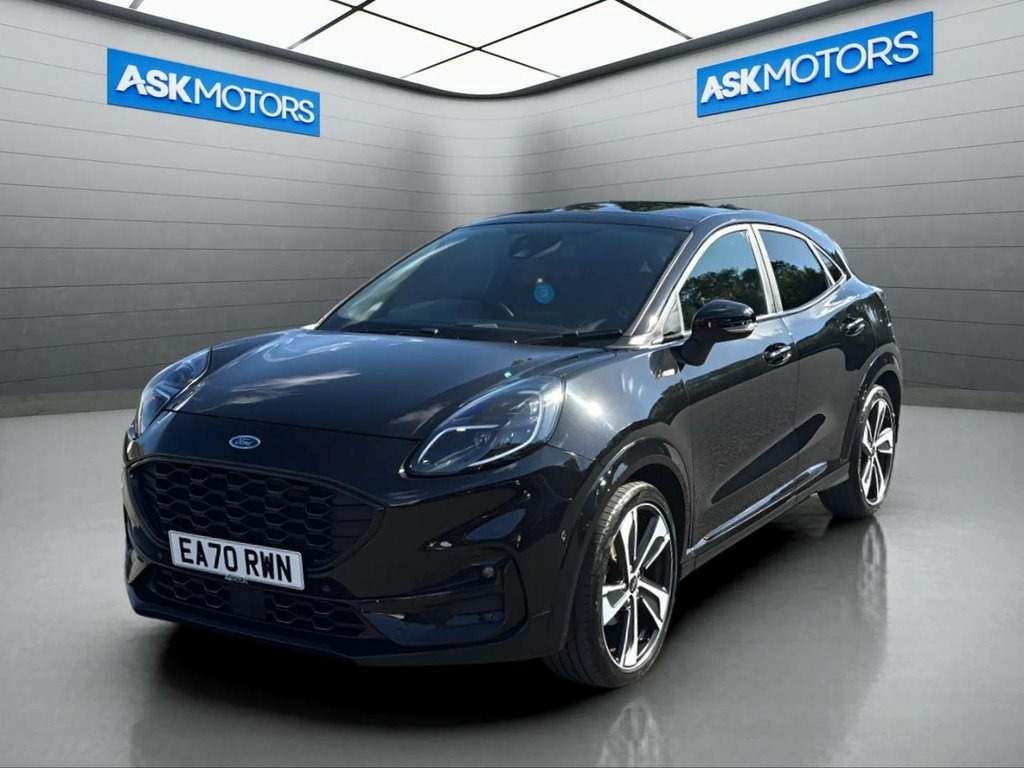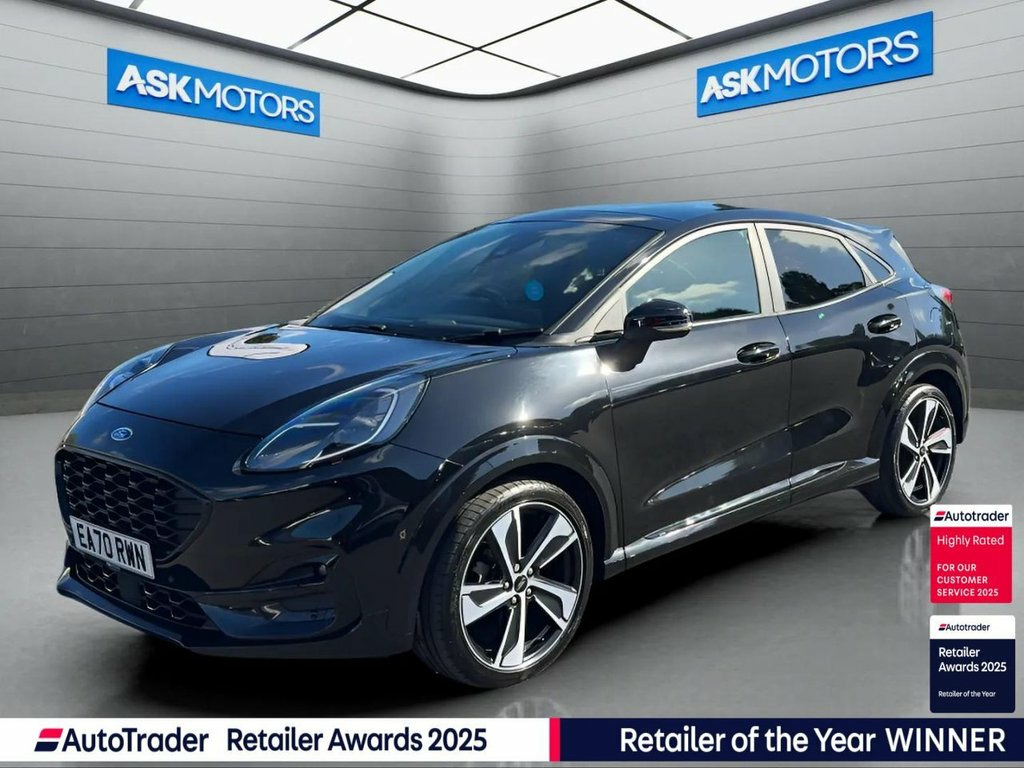 This 2020 Ford Puma ST-Line X boasts a clear vehicle history, offering peace of mind for its next owner. This stylish compact SUV is powered by an efficient 1.0 litre petrol engine, meeting Euro 6 emissions standards. Inside, you'll find a host of premium features designed for comfort and convenience, including an openable panorama roof, an ST-Line flat-bottomed leather steering wheel with a leather handbrake, and electronic air temperature control. Stay connected and entertained with the Ford SYNC 3 navigation system, complete with Android Auto, Apple CarPlay, Bluetooth, and a B&O premium audio system for a luxury branded sound experience. Plus, enjoy the convenience of wireless phone charging.  The Ford Puma ST-Line X stands out with its impressive fuel economy, achieving an excellent 46 miles per gallon, which indicates it is more economical than many similar vehicles. Furthermore, its low insurance group rating suggests that running costs will be more affordable compared to other cars in its class. These highlights, combined with its comprehensive feature set and clear vehicle history, make this 2020 Ford Puma ST-Line X a compelling choice for those seeking a well equipped and cost effective compact SUV. Panorama Roof - Openable, 18in Alloy Wheels - 5-Spoke - Matt Black, ABS - Anti-lock Braking System, Acoustic Laminated Windscreen, Active Grille Shutter, Automatic Dimming Rear View Mirror, Automatic Headlights with Rain-Sensing W, B&O Premium Audio System and Ford SY, Carbon-Look Interior Deco Spears, Centre Console with Armrest - Stowage, Courtesy Lights - Ambient LED Courtesy L, Cruise Control - Lane Keeping Aid and La, Driver and Passenger Seat Lumbar and Hei, Electric Windows - Front and Rear, Electronic Air Temperature Control - EAT, Electronic Stability Control - ESC with , Emergency Brake Warning - Automatic Haza, First Aid Kit Strap, Floor Mats - Front and Rear, Ford Easy Fuel S