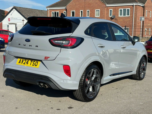 ST PERFORMANCE PACK, DRIVER ASSISTANCE PACK WITH AUTONOMOUS EMERGENCY BRAKING BY RADAR/CAMERA, BLIND SPOT INDICATOR SYSTEM(BLIS) WITH CROSS TRAFFIC ALERT (CTA) AND ACTIVE BRAKING, ACTIVE PARK ASSIST AND REAR VIEW CAMERA, CONTRAST BLACK ROOF.This 2024 Ford Puma ST offers an exceptional ownership proposition with its remarkably low mileage of just 8000 miles, having been cherished by only one owner. Powered by a responsive 1.5L petrol engine and meeting Euro 6 emissions standards, this ST variant combines exhilarating performance with modern efficiency. Inside, you'll find a host of desirable features designed to enhance your driving experience, including the Driver Assistance Pack with rear camera and rear parking sensors for confident manoeuvring. Enjoy a comfortable cabin environment thanks to the Electronic Air Temperature Control, while the Fixed LED Signature Headlamps provide excellent visibility. Entertainment and connectivity are seamlessly integrated through the B&O Premium Audio System and Ford SYNC 3 Navigation, complete with Android Auto, Apple CarPlay, and Bluetooth.The Ford Puma ST truly stands out, particularly with its impressive acceleration of 0-62mph in just 6.7 seconds, demonstrating its sporty credentials and offering a more engaging drive compared to many other vehicles in its class. This swift performance is complemented by the premium B&O sound system, providing a superior audio experience that elevates every journey. The inclusion of advanced driver aids further enhances its appeal, offering peace of mind and convenience for everyday use.