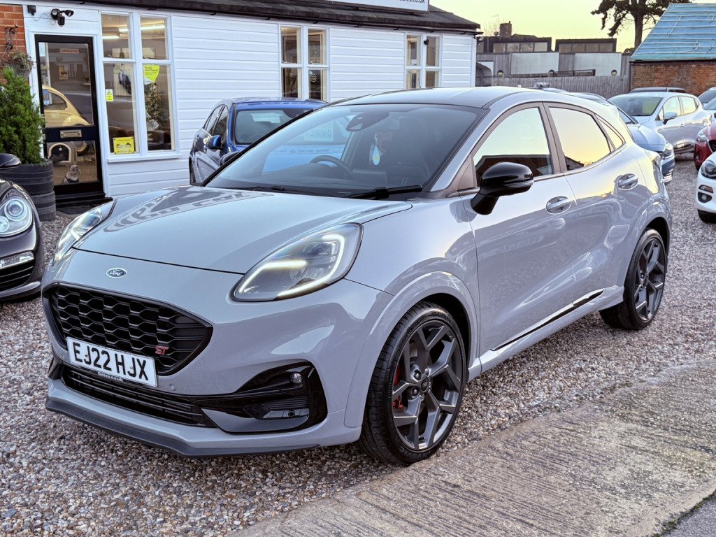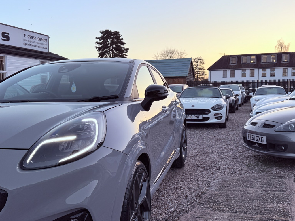 Sporty 2022 Ford Puma ST, Powerful 1.5 Turbocharged Petrol Engine With 200BHP, 6 Speed Manual, 5 Door SUV, Finished In The Best Colour Grey Matter With Contrasting Dark Graphite 19 Alloy Wheels & Black Body Highlights, Fantastic Spec Including Half Leather Ford Performance Interior With Heated Front Seats & Heated Steering Wheel, Sat Nav, Toch Screen DAB Radio With USB Connectivity including Apple Car Play/Android Auto Plus Powerful B&O Speaker System, Bluetooth, Climate Control, Heated Front & Rear Windscreens, Wireless Charging Pad, Cruise Control, Lane Departure Warning, Switchable Drive Modes (Eco, Normal, Sport & Track), Automatic Headlamps With Auto High Beam Assist, Automatic Wipers, Electric Power Fold Door Mirrors With ST Logo Puddle Lamps, Front & Rear Electric Windows, Rear Privacy Glass, Front & Rear Parking Sensors With Visual Display, Full LED Headlamps With LED Day Time Running Lamps, Keyless Entry & Push Button Start & More, Service History With Gates Ford Of Stevenage, 2 New Front Tyres, Only 1 Owner From New, Supplied With 2 Keys, 3 Months Engine & Drivetrain Warranty, ULEZ Compliant, Finance Available, HPI Clear, AA Approved Dealer, 12 Months Breakdown Cover Free Of Charge, Driveaway Insurance Available, All Of Our Cars Are Supplied With A Workshop Inspection Including MOT & Service If Required Plus A Full Valet, Debit Card Payments Accepted, FCA Regulated Dealer, No Admin Fees, Part Exchange Welcome, Delivery Can Be Arranged For An Additional Fee, Sunday Viewings Available By Pre Arranged Appointments, www.sjpoultoncarsales.co.uk