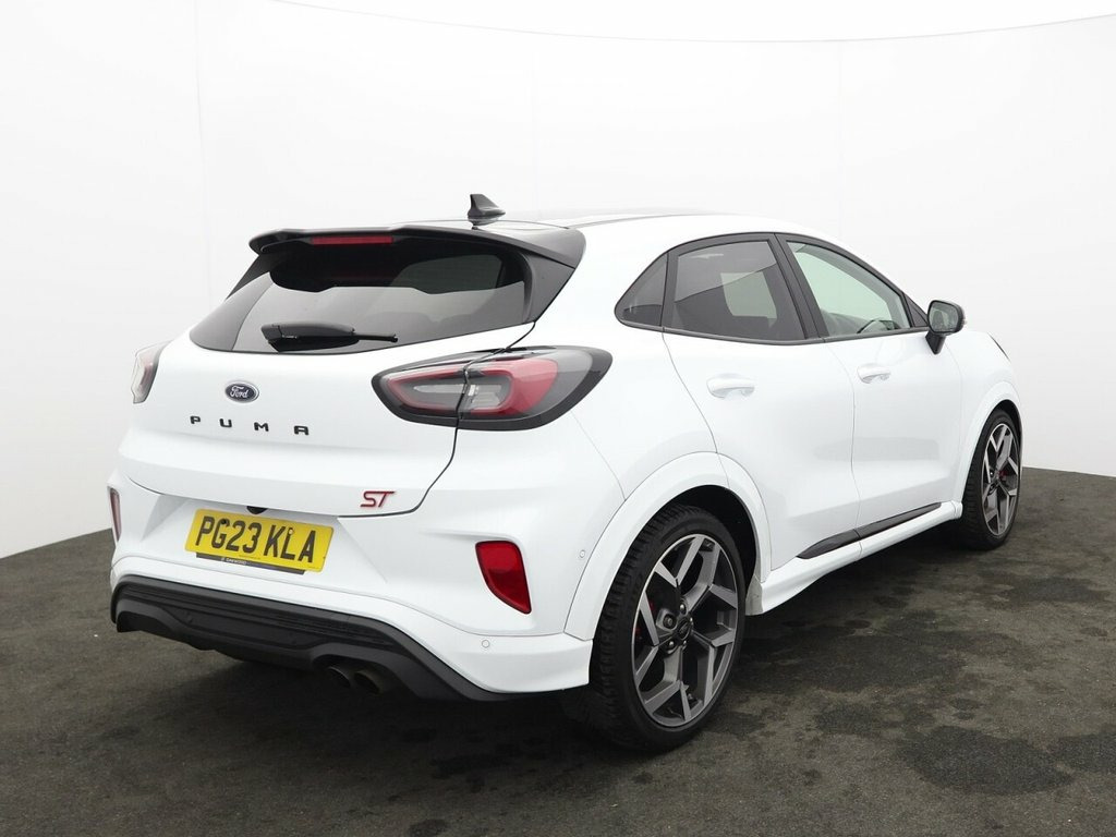This 2023 Ford Puma ST offers a unique ownership proposition, having been meticulously maintained by just one owner and boasting a long MOT. This stylish compact SUV is powered by a responsive 1.5L Petrol Engine, meeting Euro 6 emissions standards. Its provenance is further assured with a clear vehicle history check. Inside, you'll find a host of desirable features designed for comfort and convenience, including the Driver Assistance Pack with rear parking camera and rear parking sensors, Electronic Air Temperature Control with climate control, and a handy wireless charging pad. For those colder months, the Winter Pack provides heated seats and a heated steering wheel, ensuring a pleasant journey whatever the weather.  Experience exhilarating performance with the Ford Puma ST, capable of accelerating from 0 to 60mph in an impressive 6.7 seconds. This swift acceleration demonstrates its dynamic capabilities, setting it apart from many other vehicles in its class. The combination of its sporty ST trim, advanced technology, and the reassurance of a single owner and long MOT validity makes this 2023 Ford Puma ST a compelling choice for those seeking both performance and practicality. B&O Premium Audio System and Ford SY, Wireless Charging Pad with Electronic Ai, 19in Alloy Wheels - 5-Spoke - Magnetite , Acoustic Laminated Windscreen, Black Contrast Roof, Chrome Dual Exhaust Pipe, Electric Windows - Front and Rear, Front Bumper - Unique ST Design - Body C, Large Rear Spoiler - Body Colour with Ce, Lower Bodyside Moulding - Painted Accent, Power-Foldable Heated Door Mirrors with , Privacy Glass, Puma Badge, Quickclear Heated Windscreen, Rear Bumper - ST Unique, Red Brake Calipers, ST Badge, Tailgate - Manual, Unique ST Elements to Front and Rear Bod, Unique ST Scuff Plates, 6-Way Manual Driver Seat with Lumbar Adj, 6-Way Manual Passenger Seat with Lumbar , Alloy Sports