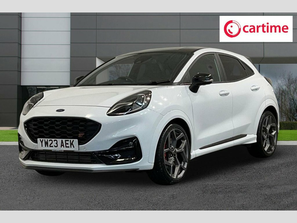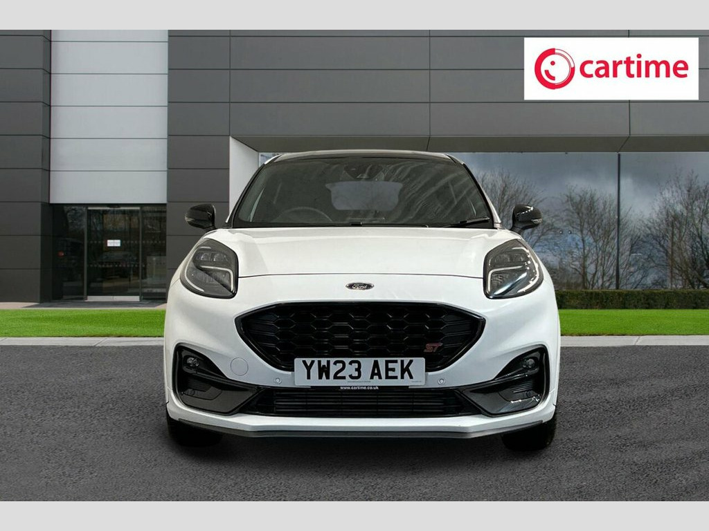 This 2023 Ford Puma ST offers a unique ownership proposition, having had only one owner from new and boasting a clear vehicle history check. Powered by a responsive 1.5L Petrol Engine and meeting Euro 6 emissions standards, this ST trim model is equipped for modern driving. You'll appreciate the convenience of the Ford KeyFree System for keyless entry and the Wireless Charging Pad, which works alongside the Electronic Air Temperature Control for a comfortable cabin. Entertainment and navigation are seamlessly integrated with the B&O Premium Audio System and Ford SYNC 3 Navigation, supporting Android Auto and Apple CarPlay. The vehicle also features striking Fixed LED Signature Headlamps. The performance of this Ford Puma ST is truly a standout feature, with an impressive 0-60mph acceleration time of just 6.7 seconds, demonstrating its dynamic capabilities. This swift acceleration indicates a superior driving experience compared to many other vehicles in its class. Furthermore, the MOT is valid until July 2026, providing peace of mind for the new owner. 19in Alloy Wheels - 5-Spoke - Magnetite , 6-Way Manual Driver Seat with Lumbar Adj, 6-Way Manual Passenger Seat with Lumbar , ABS - Anti-lock Braking System, Acoustic Laminated Windscreen, Alloy Sports Pedals, Automatic Dimming Rear View Mirror, Automatic Headlights with Rain-Sensing W, B&O Premium Audio System and Ford SY, Carbon-Look Interior Deco Spears, Centre Console - Premium with Openable S, Chrome Dual Exhaust Pipe, Courtesy Lights - Ambient LED Courtesy L, Cruise Control with Intelligent Speed As, Electric Windows - Front and Rear, Electronic Air Temperature Control - EAT, Emergency Brake Warning - Automatic Haza, Engine Sound Enhancer, ESC - Electronic Stability Control and H,