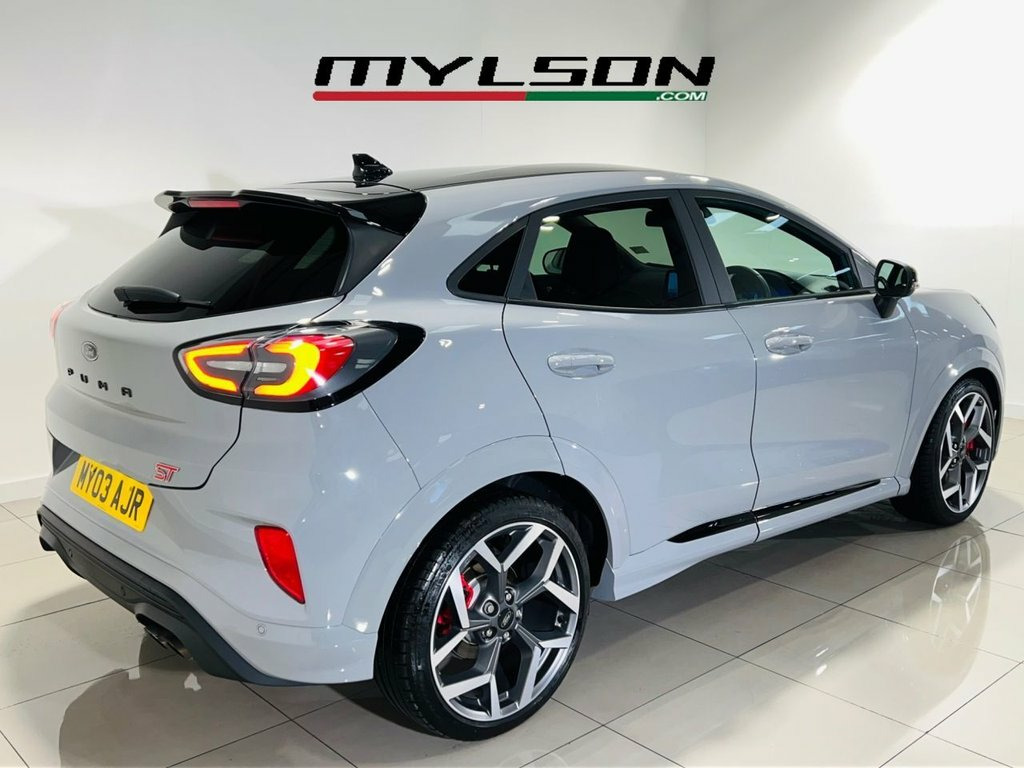 Ford Puma 1.5T EcoBoost ST SUV 5dr Petrol Manual Euro 6 (s/s) (200 ps) Registration: SY71YHL | 21,000 miles | Ford Service History | Finished in Grey Matter with ST Performance Interior (Plate shown in photos now removed) A stunning, low-mileage example of the Ford Puma ST 1.5 EcoBoost, finished in rare Grey Matter paintwork with a charcoal ST Performance interior. This exceptional example combines the practicality of a compact SUV with the excitement and agility of a true Ford Performance model — enhanced by the Performance Pack, Power Tailgate, and Detachable Towbar Powered by the award-winning 1.5-litre EcoBoost turbocharged petrol engine producing 200 PS, paired with a slick 6-speed manual gearbox, this Puma delivers sharp handling, exhilarating performance, and impressive everyday usability. Fully Euro 6 compliant and ULEZ friendly, it's both thrilling and future-ready Key Features 1.5-litre EcoBoost turbocharged petrol engine (200 PS) 6-speed manual transmission Euro 6 – ULEZ compliant Ford Performance-tuned chassis with selectable drive modes (Normal, Sport, Track, Eco) Performance Pack – Mechanical Limited-Slip Differential (LSD), Launch Control, and Shift Light Indicator Power Tailgate – hands-free electric opening and closing Detachable Towbar 19" Ford Performance alloy wheels Recaro ST sport seats in part-leather/Alcantara with grey contrast stitching SYNC 3 infotainment system with touchscreen navigation, DAB, Apple CarPlay and 19in Alloy Wheels - 5-Spoke - Magnetite , 6-Way Manual Driver Seat with Lumbar Adj, 6-Way Manual Passenger Seat with Lumbar , ABS - Anti-lock Braking System, Acoustic Laminated Windscreen, Active Grille Shutter, Alloy Sports Pedals, Automatic Dimming Rear View Mirror, Automatic Headlights with Rain-Sensing W, B&O Premium Audio System and Ford SY, Black Contrast Roof, Carbon-Look Interior Deco Spears, Centre Console - Premium with Openable S, Chrome Dual Exhaust Pipe, Courtesy Lights - Ambient LED Courtesy L, Cruise Control with Intelligent Speed As, ESC - Electronic Stability Control and H, Electric Windows - Front and Rear, Electronic Air Temperature Control - EAT, Emergency Brake Warni