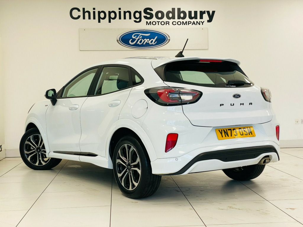 Chipping Sodbury Motor Company are pleased to present this 2023 Ford Puma ST-Line, finished in striking Frozen White which offers the ideal balance of sporty design, intelligent technology, and everyday practicality. With just one private owner from new and a full service history, this vehicle is presented in excellent condition.Key Features•Satellite Navigation•Air Conditioning•Cruise Control with Speed Limiter•Ford MegaBox Extended Boot Space for added versatility•Power Folding Door Mirrors•Rear Parking Sensors•Bluetooth Hands-Free with Apple CarPlay & Android AutoOptional Winter PackEnjoy added comfort with heated front seats and a heated steering wheel - perfect for those colder months.Vehicle Highlights•One private owner from new•Full service history•ULEZ & Clean Air Zone compliantThe Ford Puma ST-Line combines sharp styling with practical features, making it an excellent choice for drivers who value performance and convenience.Looking to finance your new car? We can help, call one of our team today to run through what options are available or for a personal quotation. Got a part exchange? We can help there too, we are always looking for quality used vans and cars so will offer a competitive part exchange figure., s - anti-lock braking system, esc - electronic stability control and hill start assist, emergency brake warning - automatic hazard warning lights, traction control and emergency braking assistance, 12v auxillary power socket, 4 way adjustable drivers seat, air conditioning, apple car play & android auto, auto dimming rear view mirror, auto high beam, automatic headlights, automatic rain sensing wipers, bluetooth hands free , clean air zone compliant, cruise control, dab radio , electric front windows, electric rear windows, ford mega box extended boot storage, ford my key system, ford pass connect via smartphone app, ford sync 3 in car connectivity, front fog lights, halogen projector syle headlights, heated front seats, heated steering wheel, key free push button start, lane departure warning system, leather trimmed steering wheel, led daytime running lights, led interior ambient lighting, led rear lights, post collision braking, power folding door mirrors, pre collision assist with pedestrian detection, premium centre console with armrest & storage, quickclear heated windscreen, rake & reach adjustable steering column, rear parking sensors, remote central locking, satellite navigation, selectable drive modes , speed limiter function, steering wheel mounted audio controls, thatcham category 1 alarm, traffic sign recognition, ulez compliant, usb audio interface, 17'' Alloys