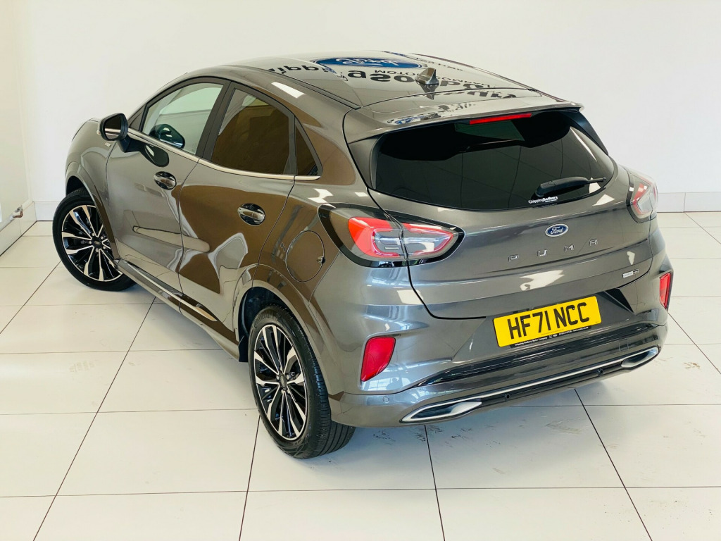 Chipping Sodbury Motor Company are pleased to present this 2021 Ford Puma ST-Line Vignale which combines sporty design, premium comfort, and spirited performance in one stylish package. Finished in sleek Magnetic Grey and powered by the higher-output 155PS EcoBoost petrol engine, it offers a confident, responsive drive with excellent efficiency.With a Full Service History and ULEZ & Clean Air Zone compliance, it's ready for wherever your journey takes you.Premium Features•Satellite Navigation•Reverse Camera•Privacy Glass•Heated Front Seats & Heated Steering Wheel•Wireless Charging Pad•Climate Control•Cruise Control with Speed Limiter•Keyless Entry & Start•Ford MegaBox - extended boot space for added practicality•Power Folding Door MirrorsWhy Choose the ST-Line Vignale?As the flagship trim in the Puma range, the ST-Line Vignale blends Ford's athletic styling with upscale interior finishes and advanced driver technology. Whether you're navigating the city or exploring further afield, it delivers comfort, convenience, and driving enjoyment in equal measure.Get in touch with our sales team today to arrange a viewing or test drive.Looking to finance your new car? We can help, call one of our team today to run through what options are available or for a personal quotation. Got a part exchange? We can help there too, we are always looking for quality used vans and cars so will offer a competitive part exchange figure., s - anti-lock braking system, driver impairment monitor, esc - electronic stability control and hill start assist, emergency brake warning - automatic hazard warning lights, 12v auxillary power socket, apple car play & android auto, auto dimming rear view mirror, auto high beam, automatic headlights, automatic rain sensing wipers, b & o premium audio system, bluetooth hands free , clean air zone compliant, climate control, cruise control, dab radio , electric front windows, electric rear windows, ford easy-fuel capless refuelling system, ford mega box extended boot storage, ford pass connect via smartphone app, ford sync 3 in car connectivity, front fog lights, front parking sensors, heated front seats, heated steering wheel, height adjustable front seats with lumbar support, key free push button start, key less entry, lane departure warning system, led daytime running lights, led headlights, led interior ambient lighting, massage front seats, paddleshift gear change on steering wheel, post collision braking, power folding door mirrors, pre collision assist, premium centre console with armrest & storage, privacy glass, quickclear heated windscreen, rake & reach adjustable steering column, rear parking sensors, remote central locking, reverse camera, satellite navigation, selectable drive modes , speed limiter function, speed sign recognition, st line body styling pack , steering wheel mounted audio controls, thatcham category 1 alarm, ulez compliant, usb audio interface, wireless charging pad, 18'' Alloys