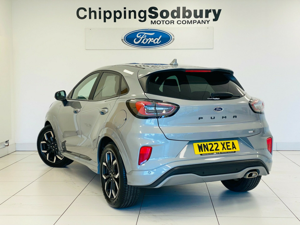 Chipping Sodbury Motor Company are pleased to present this 2022 Ford Puma ST-Line X in Solar Silver. Just taken in part exchange, this stylish and sporty Ford Puma ST-Line X is packed with premium features and comes with a full Ford dealer service history, serviced exclusively by us from new.ULEZ & Clean Air Zone compliant - drive anywhere with confidence.Key Features:•Satellite Navigation - effortless guidance wherever you go•Privacy Glass - sleek looks with added comfort•Wireless Charge Pad - stay powered on the go•Climate Control - year-round comfort•Cruise Control with Speed Limiter - relaxed long-distance driving•Ford MegaBox Extended Boot Space - extra practicality when you need it•Power Folding Door Mirrors - convenience at your fingertips•Rear Parking Sensors - hassle-free parking•Bluetooth Hands-free with Apple CarPlay & Android Auto - seamless connectivityThis Puma ST-Line X combines sporty styling with everyday practicality, making it the perfect compact SUV for both city and motorway driving.Available to view and test drive now - don't miss out on this well-cared-for example!Looking to finance your new car? We can help, call one of our team today to run through what options are available or for a personal quotation. Got a part exchange? We can help there too, we are always looking for quality used vans and cars so will offer a competitive part exchange figure., s - anti-lock braking system, esc - electronic stability control and hill start assist, emergency brake warning - automatic hazard warning lights, traction control and emergency braking assistance, power steering, 12v auxillary power socket, 4 way adjustable front seats, apple car play & android auto, auto dimming rear view mirror, auto high beam, automatic headlights, automatic rain sensing wipers, b & o premium audio system, bluetooth hands free , clean air zone compliant, climate control, cruise control, dab radio , electric front windows, electric rear windows, ford mega box extended boot storage, ford pass connect via smartphone app, ford sync 3 in car connectivity, front fog lights, halogen projector syle headlights, key free push button start, lane departure warning system, leather trimmed steering wheel, led daytime running lights, led interior ambient lighting, led rear lights, post collision braking, power folding door mirrors, pre collision assist with pedestrian detection, premium centre console with armrest & storage, privacy glass, quickclear heated windscreen, rake & reach adjustable steering column, rear parking sensors, remote central locking, satellite navigation, selectable drive modes , speed limiter function, st line body styling pack , steering wheel mounted audio controls, thatcham category 1 alarm, ulez compliant, usb audio interface, wireless charging pad, 18'' Alloys