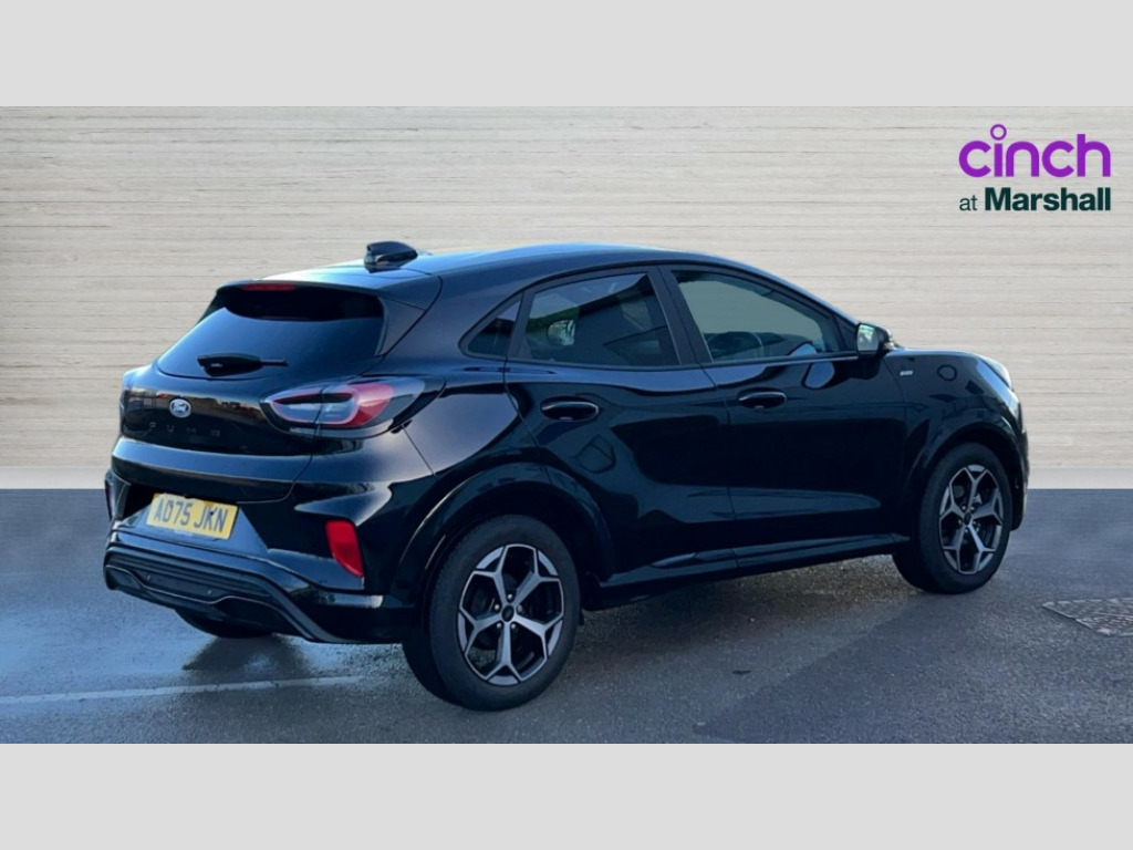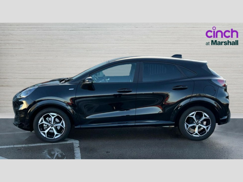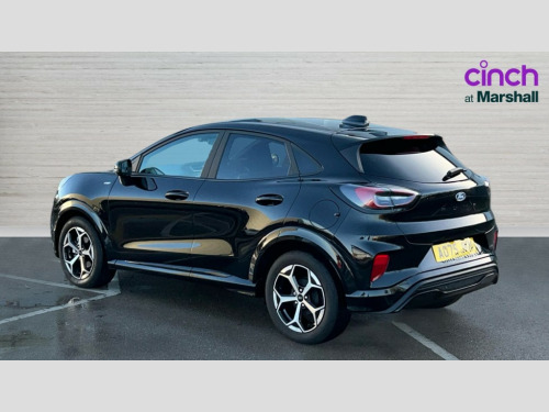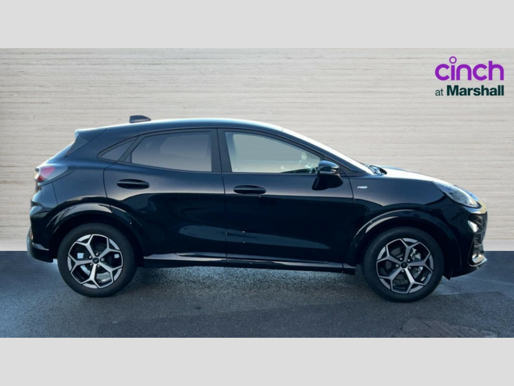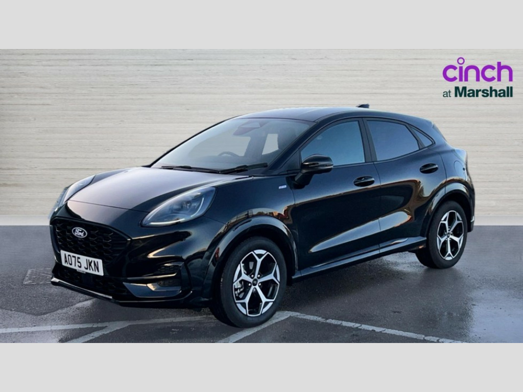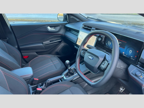 Ford Puma 1.0 EcoBoost Hybrid mHEV ST-Line 5dr Driver impairment monitor, Emergency call service, Ford easy fuel, Full digital 12.8" instrument cluster, Lane keeping aid with lane departure warning, Power assist steering, Selectable drive modes(Normal, Eco, Sport, Slippery and Trail), Speed sign recognition, Sport suspension, 12" landscape touchscreen display with wireless apple car play and android auto 6 speaker audio system, Ford pass connect and emergency assistance, Ford SYNC4 with connected navigation, Automatic headlights with rain sensing wipers and auto high beam, Front fog lamps, LED daytime running lights, LED rear lamps, LED third brake light, Power foldable heated door mirrors with puddle lamps and puma logo protection, Quickclear heated windscreen, Rear privacy glass, Rear side wing doors, Rear wiper, ST-Line body styling kit with unique grille, 3 seat bench in 2nd row, Centre console with armrest and stowage, Electronic automatic temperature control (EATC), Ford megabox extended bootspace, Front and rear head restraints, Front floor mats, Manual 4 way driver seat adjust with lumbar adjustment, Single front passenger seat, ST- Line cloth trim with red stitching, 3 rear seatbelts, Child safety lock, Electronic stability control (ESC) and hill start assist, Pre-collision assist with autonomous emergency braking, pedestrian/cyclist detection & post-collision braking, Tyre pressure monitoring system (TPMS), Thatcham alarm