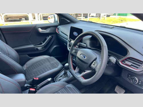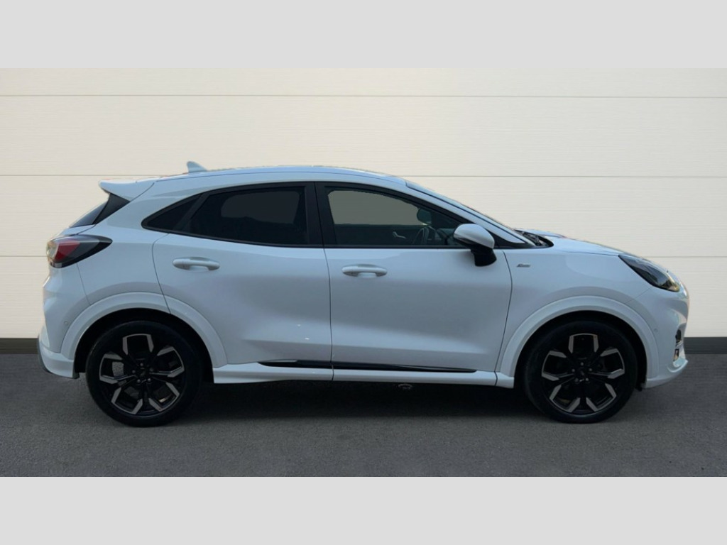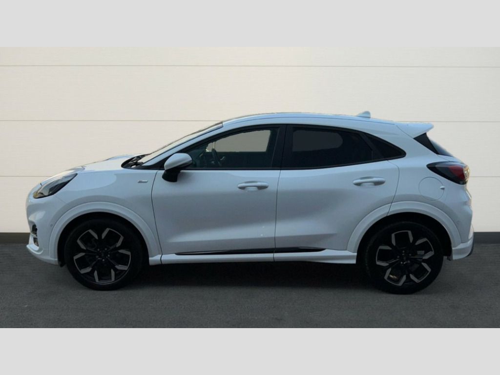 Ford Puma 1.0 EcoBoost Hybrid mHEV ST-Line X 5dr DCT Driver impairment monitor, Emergency call service, Ford easy fuel, Full digital 12.3" instrument cluster, Lane keeping aid with lane departure warning, Power assist steering, Power start button, Rear parking sensor, Selectable drive modes(Normal, sport, Eco, trail, slippery), Speed sign recognition, Sport suspension, Automatic headlights with auto high beam, Automatic rain sensing wipers, Front fog lamps, LED daytime running lights, LED rear lamps, Power foldable heated door mirrors with puddle lamps, Privacy glass to side rear windows and tailgate glass, Quickclear heated windscreen, Rear side wing doors, Rear wiper, ST-Line body styling kit with unique grille and large body colour rear spoiler, Third brake light, 3 seat bench in 2nd row, Centre console with armrest and stowage, Ford megabox extended bootspace, Front and rear head restraints, Front floor mats, Manual 4 way driver seat adjust with lumbar adjustment, Manual 4 way passenger seat with lumbar seat adjustment, Sensico partial premium upholstery, Single front passenger seat, ST-Line flat bottomed sensico leather steering wheel with leather handbrake and aluminium gear knob, Wireless charging pad with electronic air temperature control (EATC), B&O Premium Audio system + Ford SYNC 3 navigation pack - Puma, 3 rear seatbelts, Child safety lock, Electronic stability control (ESC) and hill start assist, Pedestrian/cyclist detection & post-collision braking, Pre collision assist system, Tyre pressure monitoring system (TPMS), Thatcham alarm, Carbon look interior deco spears