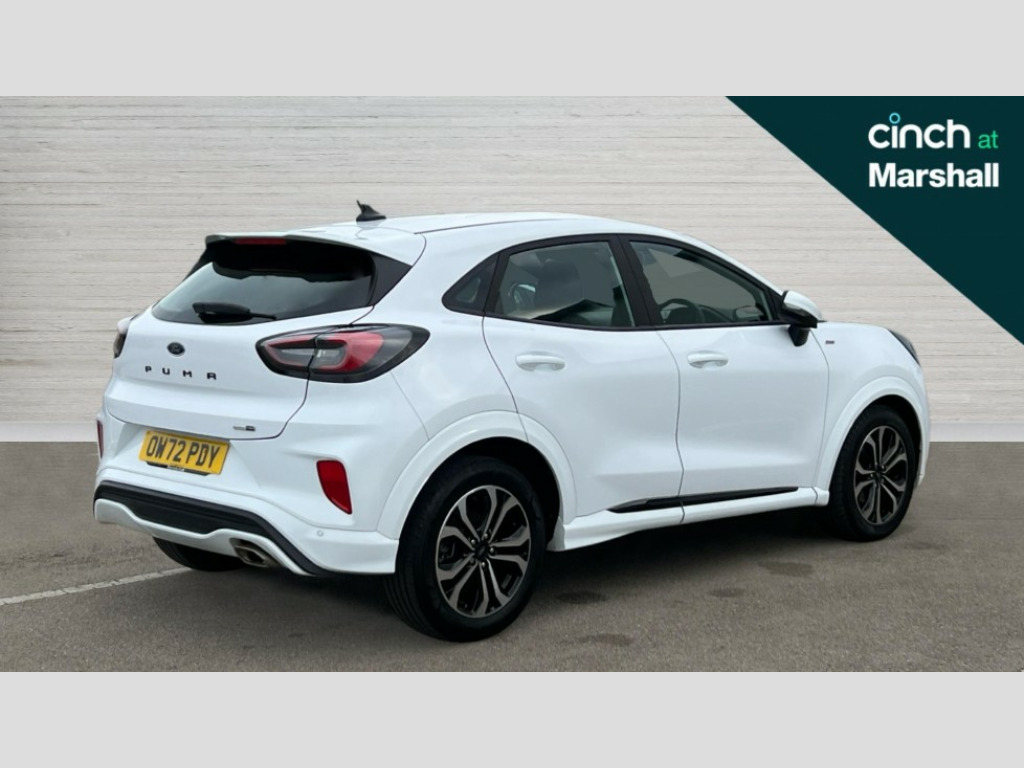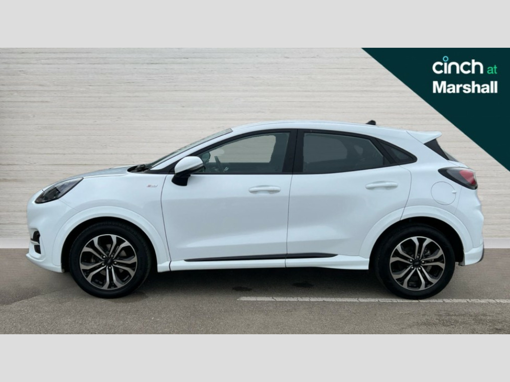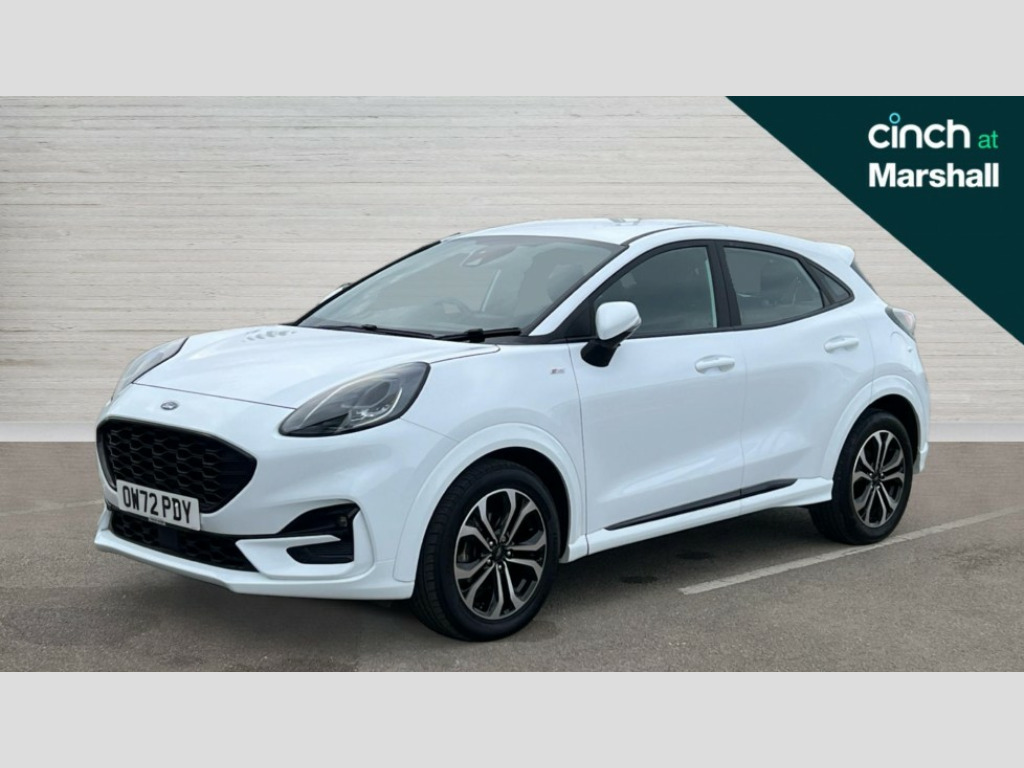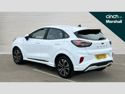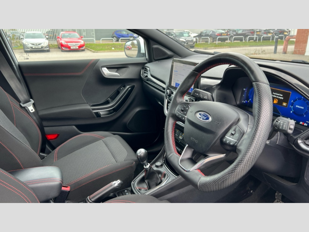 Ford Puma 1.0 EcoBoost Hybrid mHEV 155 ST-Line 5dr Driver impairment monitor, Emergency call service, Ford easy fuel, Full digital 12.3" instrument cluster, Lane keeping aid with lane departure warning, Power assist steering, Power start button, Rear parking sensor, Selectable drive modes(Normal, Eco, Sport, Slippery and Trail), Speed sign recognition, Sport suspension, Automatic headlights with auto high beam, Automatic rain sensing wipers, LED rear lamps, Power foldable heated door mirrors with puddle lamps, Projector headlamps with LED day time running lights and front fog lamps, Quickclear heated windscreen, Rear side wing doors, Rear wiper, ST-Line body styling kit with unique grille and large body colour rear spoiler, Third brake light, 3 seat bench in 2nd row, Centre console with armrest and stowage, Ford megabox extended bootspace, Front and rear head restraints, Front floor mats, Manual 2 way passenger seat adjustment, Manual 4 way driver seat adjust with lumbar adjustment, Single front passenger seat, ST- Line cloth trim with red stitching, ST-Line flat bottomed sensico leather steering wheel with leather handbrake and aluminium gear knob, Ford SYNC 3 navigation pack - Puma, 3 rear seatbelts, Child safety lock, Electronic stability control (ESC) and hill start assist, Pedestrian/cyclist detection & post-collision braking, Pre collision assist system, Tyre pressure monitoring system (TPMS), Thatcham alarm