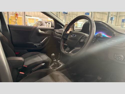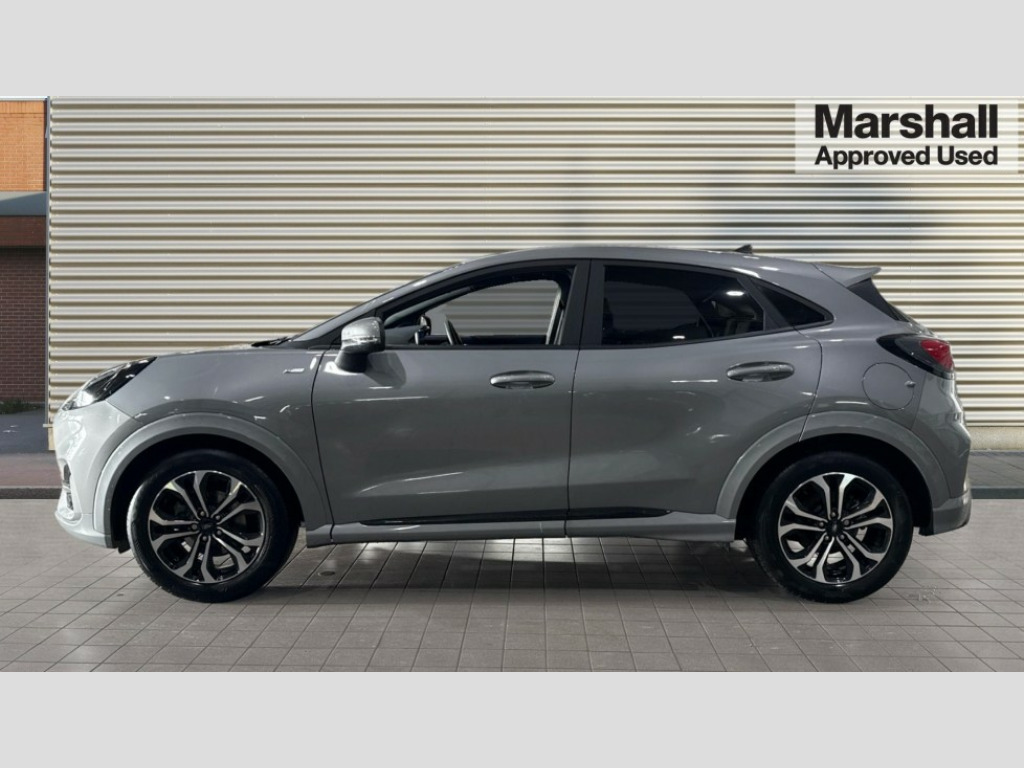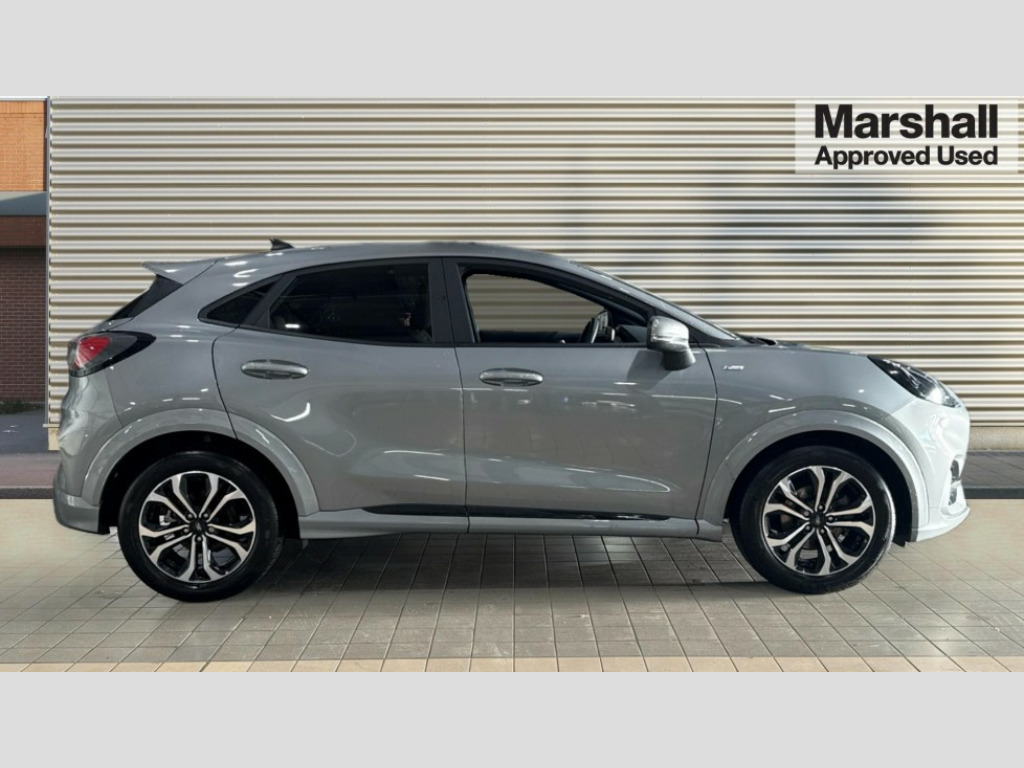 Ford Puma 1.0 EcoBoost Hybrid mHEV 155 ST-Line 5dr Driver impairment monitor, Emergency call service, Ford easy fuel, Full digital 12.3" instrument cluster, Lane keeping aid with lane departure warning, Power assist steering, Power start button, Rear parking sensor, Selectable drive modes(Normal, Eco, Sport, Slippery and Trail), Speed sign recognition, Sport suspension, Automatic headlights with auto high beam, Automatic rain sensing wipers, LED rear lamps, Power foldable heated door mirrors with puddle lamps, Projector headlamps with LED day time running lights and front fog lamps, Quickclear heated windscreen, Rear side wing doors, Rear wiper, ST-Line body styling kit with unique grille, Third brake light, 3 seat bench in 2nd row, Centre console with armrest and stowage, Ford megabox extended bootspace, Front and rear head restraints, Front floor mats, Manual 2 way passenger seat adjustment, Manual 4 way driver seat adjust with lumbar adjustment, Single front passenger seat, ST- Line cloth trim with red stitching, ST-Line flat bottomed sensico leather steering wheel with leather handbrake and aluminium gear knob, Ford SYNC 3 navigation pack - Puma, 3 rear seatbelts, Child safety lock, Electronic stability control (ESC) and hill start assist, Pedestrian/cyclist detection & post-collision braking, Pre collision assist system, Tyre pressure monitoring system (TPMS), Thatcham alarm