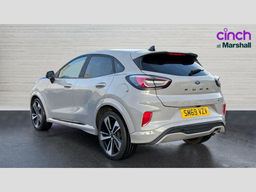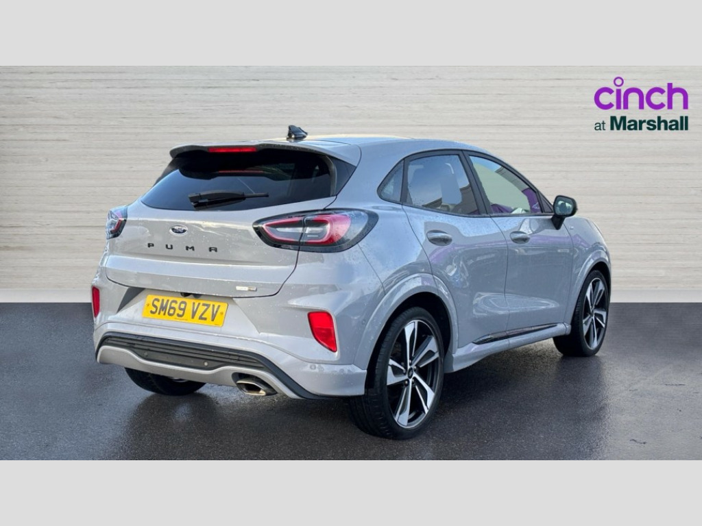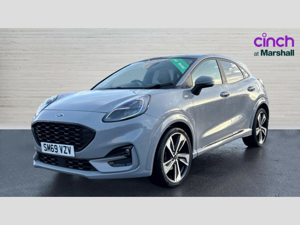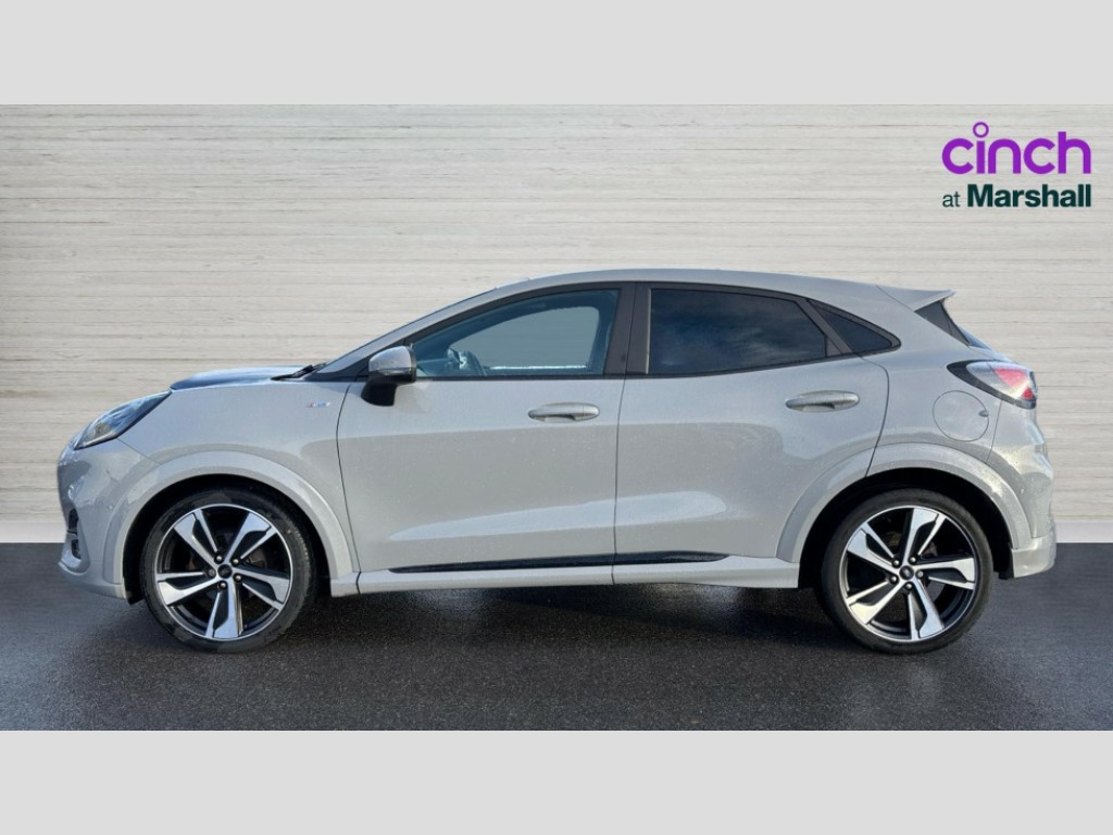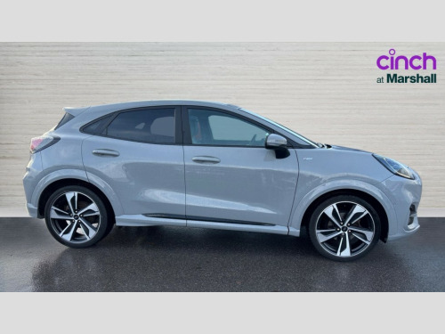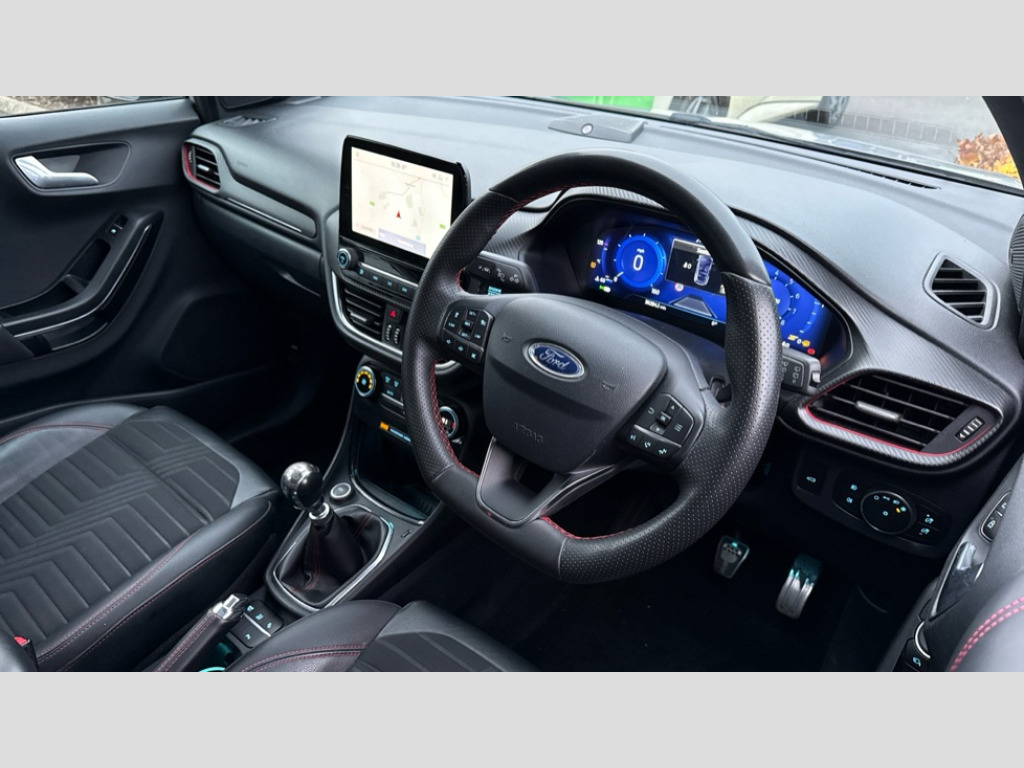 Ford Puma 1.0 EcoBoost Hybrid mHEV 155 ST-Line X 1st Ed+ 5dr Ford easy fuel, Full digital 12.3" instrument cluster, Lane keeping aid with lane departure warning, Power assist steering, Power liftgate hands free including keyless start + entry, motion sensing key fob, Rear parking sensor, Selectable drive modes(Normal, Eco, Sport, Slippery and Trail), Wireless charging pad, Automatic headlights with rain sensing wipers and auto high beam, Body coloured door mirrors, Fixed LED headlamps, Front fog lights with cornering lights and LED rear lamps, Power foldable heated door mirrors with puddle lamps, Privacy glass to side rear windows and tailgate glass, Quickclear heated windscreen, ST-Line body kit with large rear spoiler wth sports suspension, Alloy sports pedals, Casual partial leather upholstery with salerno bolster, Centre console with armrest and stowage, Driver and passenger seat lumbar and height adjust, EATC - Electronic Auto Temperature control, Ford megabox extended bootspace, Front and rear floor mats, Front and rear head restraints, ST-Line flat bottomed sensico leather steering wheel with leather handbrake and aluminium gear knob, B&O Premium Audio system + Ford SYNC 3 navigation pack - Puma, Driver assistance pack - Puma, 3 rear seatbelts, Electronic stability control (ESC) and hill start assist, Pre-collision assist with autonomous emergency braking, pedestrian/cyclist detection & post-collision braking, Tyre pressure monitoring system (TPMS), Thatcham alarm, Carbon look interior deco spears, 19" 5 spoke matt black finish alloy wheels, Tyre inflation kit