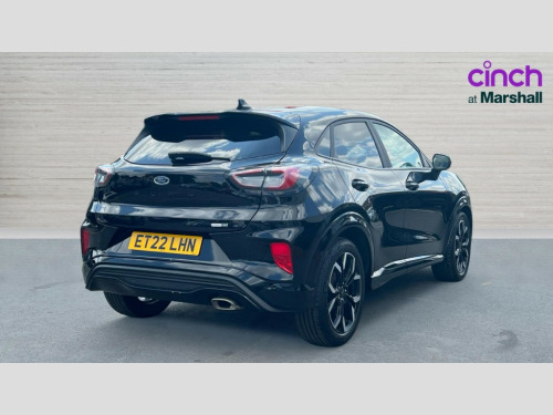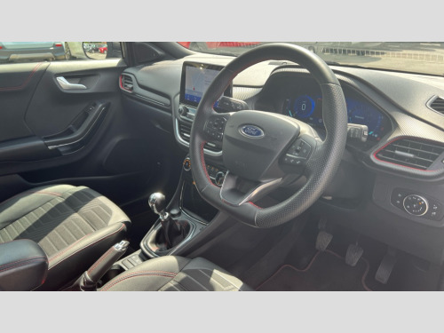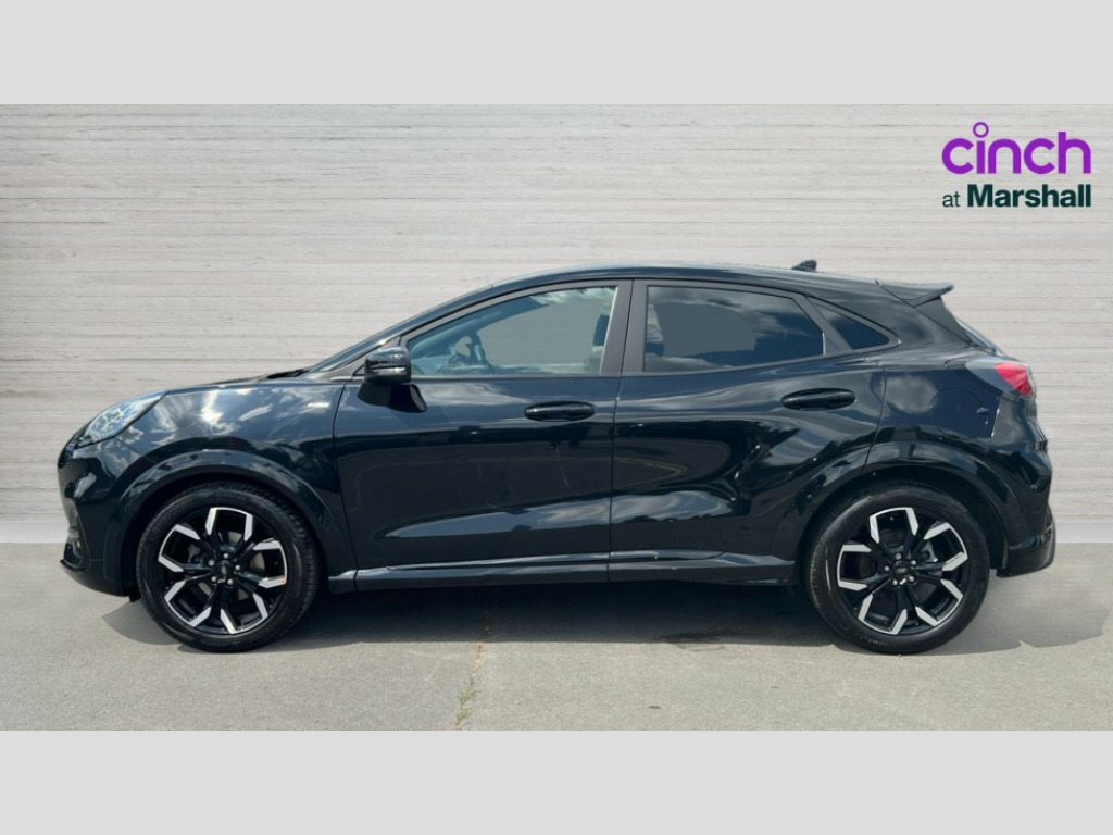 Ford Puma 1.0 EcoBoost Hybrid mHEV 155 ST-Line X 5dr Driver impairment monitor, Emergency call service, Ford easy fuel, Full digital 12.3" instrument cluster, Lane keeping aid with lane departure warning, Power assist steering, Power start button, Rear parking sensor, Selectable drive modes(Normal, Eco, Sport, Slippery and Trail), Speed sign recognition, Sport suspension, Automatic headlights with auto high beam, Automatic rain sensing wipers, Front fog lamps, LED daytime running lights, LED rear lamps, Power foldable heated door mirrors with puddle lamps, Privacy glass to side rear windows and tailgate glass, Quickclear heated windscreen, Rear side wing doors, Rear wiper, ST-Line body styling kit with unique grille and large body colour rear spoiler, Third brake light, 3 seat bench in 2nd row, Centre console with armrest and stowage, Electronic automatic temperature control (EATC), Ford megabox extended bootspace, Front and rear head restraints, Front floor mats, Manual 4 way driver seat adjust with lumbar adjustment, Manual 4 way passenger seat with lumbar seat adjustment, Sensico partial premium upholstery, Single front passenger seat, ST-Line flat bottomed sensico leather steering wheel with leather handbrake and aluminium gear knob, Wireless charging pad with electronic air temperature control (EATC), B&O Premium Audio system + Ford SYNC 3 navigation pack - Puma, Driver assistance pack with Lane departure warning - Puma, 3 rear seatbelts, Child safety lock, Electronic stability control (ESC) and hill start assist, Pedestrian/cyclist detection & post-collision braking, Pre collision assist with autonomous emergency braking, Tyre pressure monitoring system (TPMS), Thatcham alarm, Carbon look interior deco spears