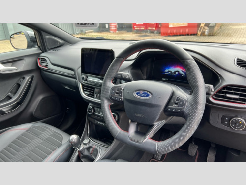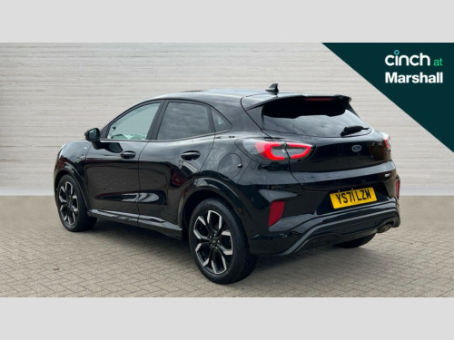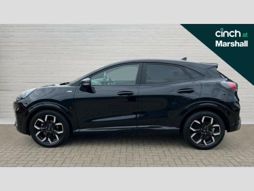 Ford Puma 1.0 EcoBoost Hybrid mHEV 155 ST-Line X 5dr Driver impairment monitor, Emergency call service, Ford easy fuel, Full digital 12.3" instrument cluster, Lane keeping aid with lane departure warning, Power assist steering, Power start button, Rear parking sensor, Selectable drive modes(Normal, sport, Eco, trail, slippery), Speed sign recognition, Wireless charging pad, Sport suspension, Automatic headlights with auto high beam, Automatic rain sensing wipers, Front fog lamps, LED daytime running lights, LED rear lamps, Power foldable heated door mirrors with puddle lamps, Privacy glass to side rear windows and tailgate glass, Quickclear heated windscreen, Rear side wing doors, Rear wiper, ST-Line body styling kit with unique grille and large body colour rear spoiler, Third brake light, 3 seat bench in 2nd row, Centre console with armrest and stowage, Electronic automatic temperature control (EATC), Ford megabox extended bootspace, Front and rear floor mats, Front and rear head restraints, Manual 4 way driver seat adjust with lumbar adjustment, Manual 4 way passenger seat with lumbar seat adjustment, Sensico partial premium upholstery, Single front passenger seat, ST-Line flat bottomed sensico leather steering wheel with leather handbrake and aluminium gear knob, B&O Premium Audio system + Ford SYNC 3 navigation pack - Puma, 3 rear seatbelts, Child safety lock, Electronic stability control (ESC) and hill start assist, Pre-collision assist with autonomous emergency braking, pedestrian/cyclist detection and post-collision braking, Tyre pressure monitoring system (TPMS), Thatcham alarm, Carbon look interior deco spears