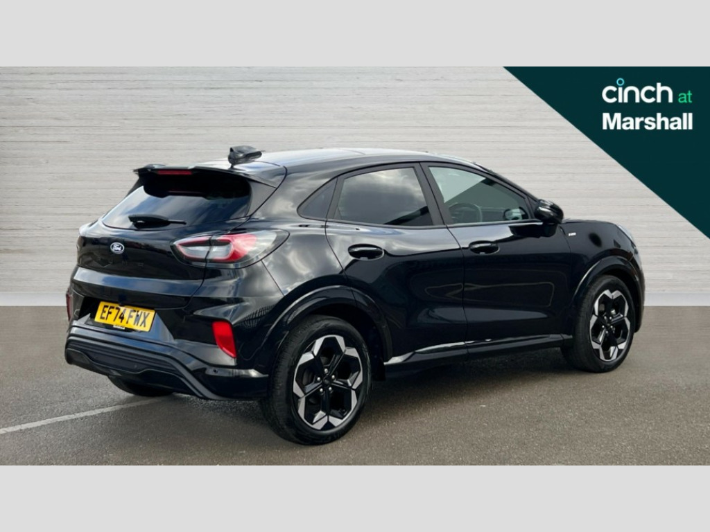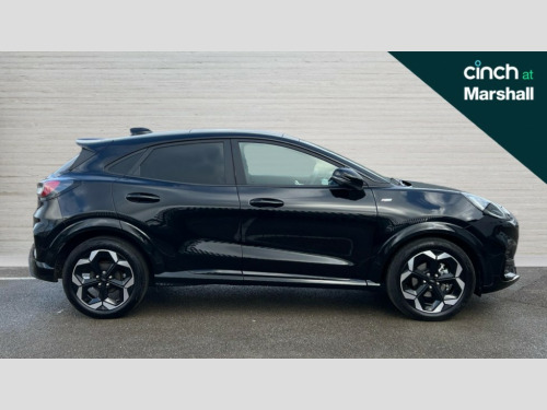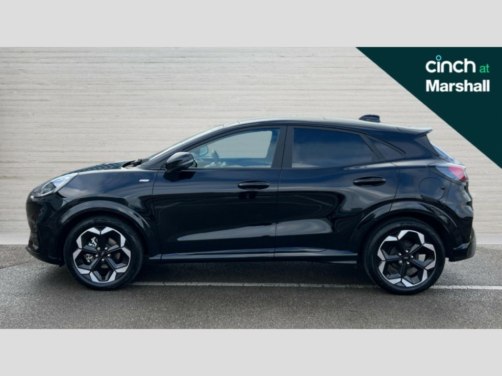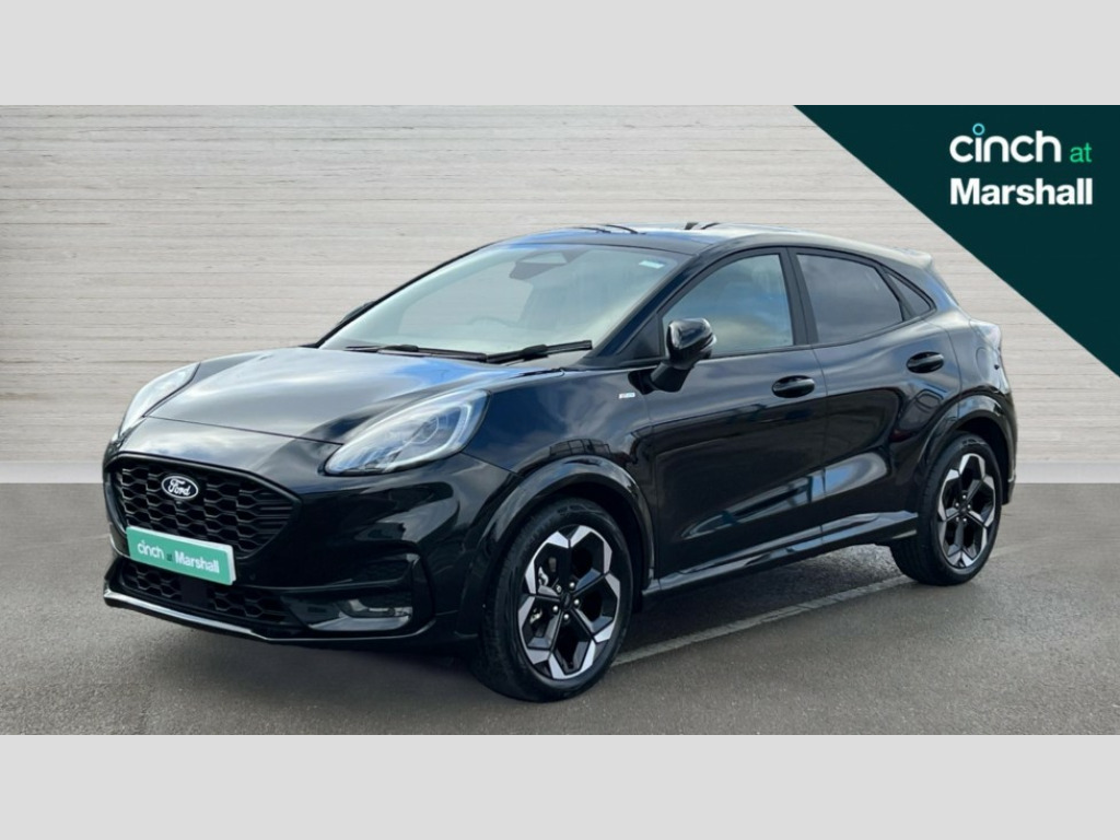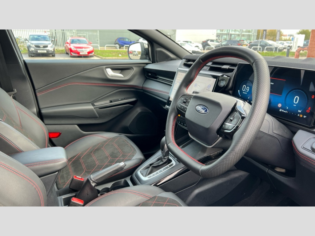 Ford Puma 1.0 EcoBoost Hybrid mHEV 155 ST-Line X DCT 5dr Driver impairment monitor, Emergency call service, Ford easy fuel, Full digital 12.8" instrument cluster, Lane keeping aid with lane departure warning, Power assist steering, Selectable drive modes(Normal, Eco, Sport, Slippery and Trail), Speed sign recognition, Sport suspension, 12" landscape touchscreen display with wireless apple car play and android auto premium B&O audio system with 10 speakers, Ford pass connect and emergency assistance, Ford SYNC4 with connected navigation, Automatic headlights with rain sensing wipers and auto high beam, Front fog lamps, LED daytime running lights, LED rear lamps, LED third brake light, Power foldable heated door mirrors with puddle lamps and puma logo protection, Quickclear heated windscreen, Rear privacy glass, Rear side wing doors, Rear wiper, ST-Line body styling kit with unique grille, 3 seat bench in 2nd row, 4 way lumbar support for passenger seat, Centre console with armrest and stowage, Electronic automatic temperature control (EATC), Ford megabox extended bootspace, Front and rear head restraints, Front floor mats, Manual 4 way driver seat adjust with lumbar adjustment, Single front passenger seat, ST-Line X Premium synthetic leather upholstery, Comfort pack with power lift tailgate - Puma, 3 rear seatbelts, Child safety lock, Electronic stability control (ESC) and hill start assist, Pre-collision assist with autonomous emergency braking, pedestrian/cyclist detection & post-collision braking, Tyre pressure monitoring system (TPMS), Thatcham alarm