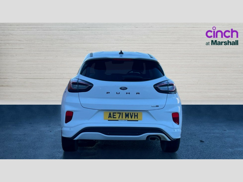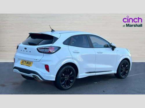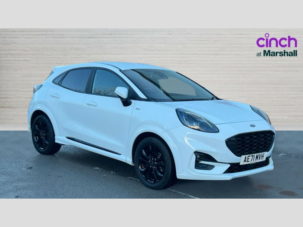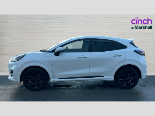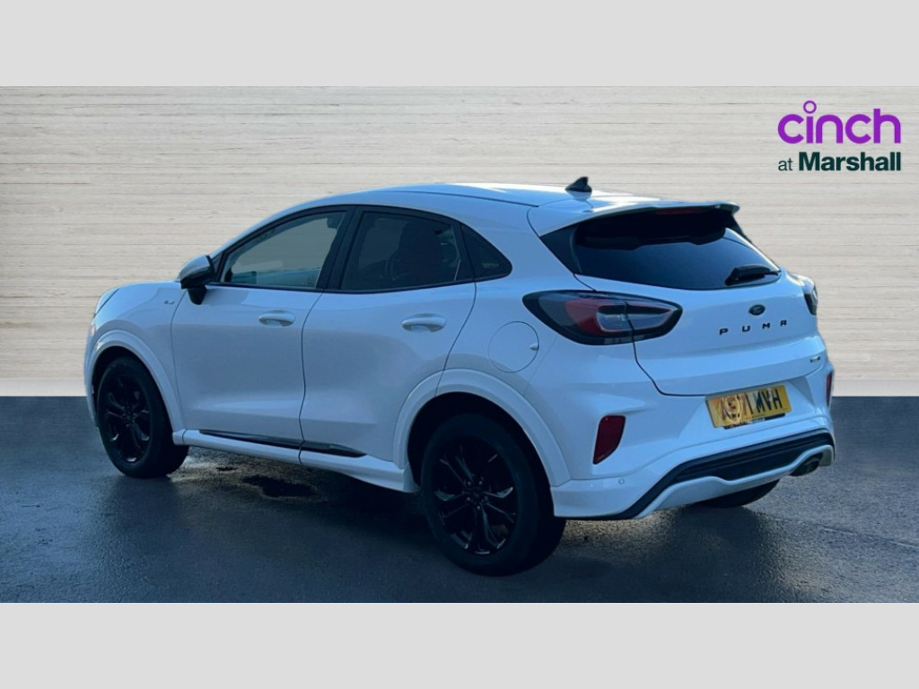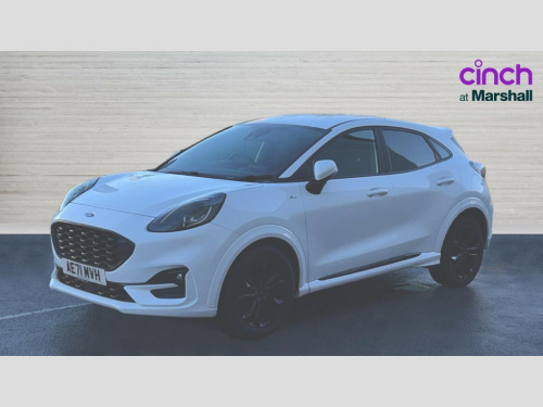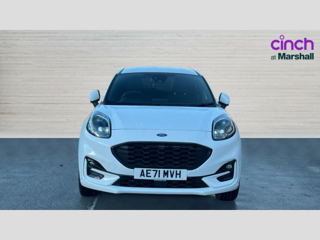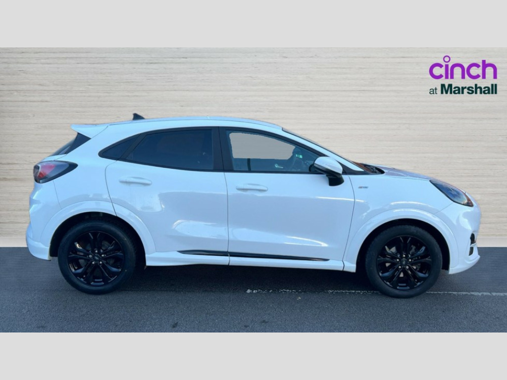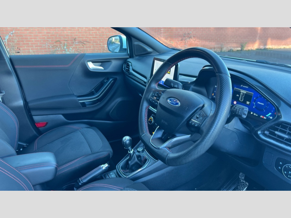 Ford Puma 1.0 EcoBoost Hybrid mHEV ST-Line Design 5dr Cruise control, Ford easy fuel, Full digital 12.3" instrument cluster, Power assist steering, Power start button, Selectable drive modes(Normal, Eco, Sport, Slippery and Trail), Automatic rain sensing wipers, Body coloured door mirrors, Front fog lights with cornering lights and LED rear lamps, Power foldable heated door mirrors with puddle lamps, Projector headlamps with LED day time running lights, Quickclear heated windscreen, Rear wiper, ST-Line body kit with large rear spoiler wth sports suspension, Centre console with armrest and stowage, Cloth upholstery, Driver seat height/lumbar adjust, Ford megabox extended bootspace, Front and rear floor mats, Front and rear head restraints, Manual air conditioning, ST-Line flat bottomed sensico leather steering wheel with leather handbrake and aluminium gear knob, Ford SYNC 3 navigation pack - Puma, 3 rear seatbelts, Electronic stability control (ESC) and hill start assist, Pedestrian/cyclist detection & post-collision braking, Tyre pressure monitoring system (TPMS), Thatcham alarm