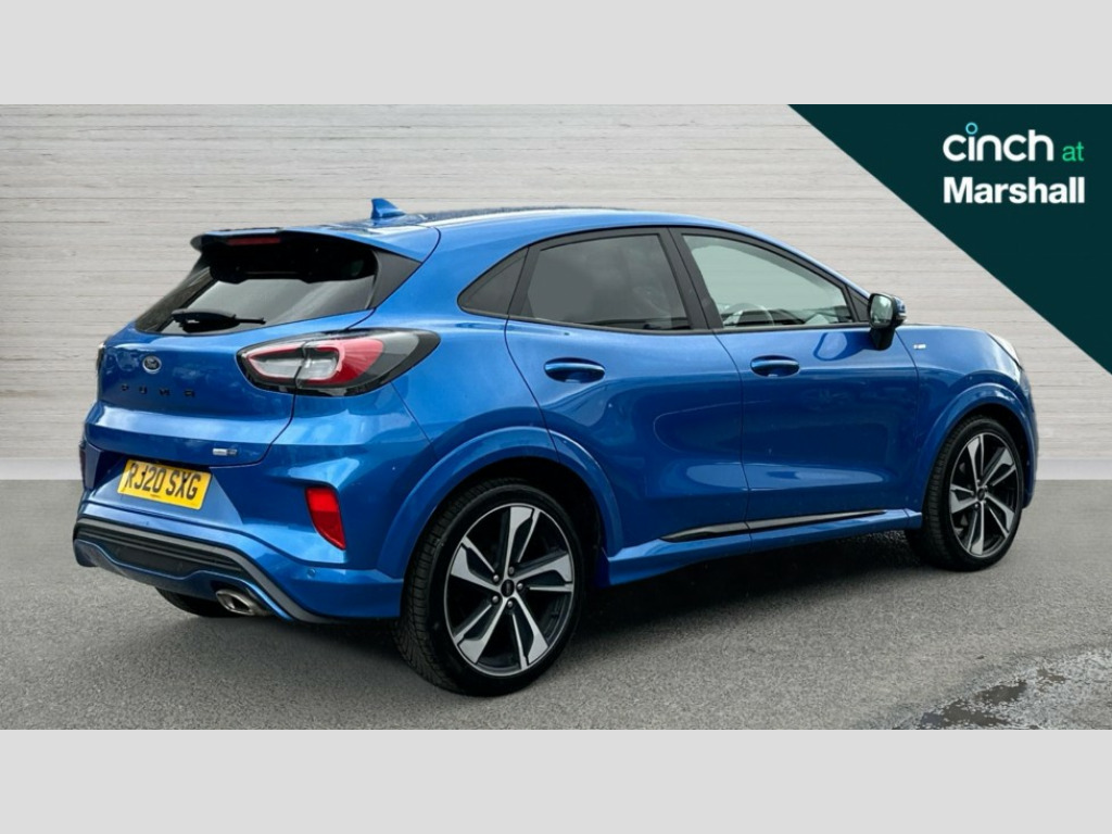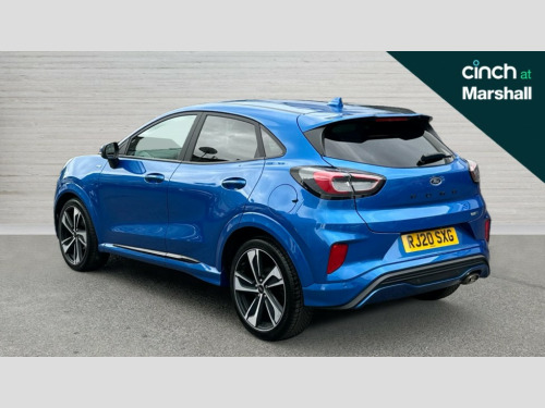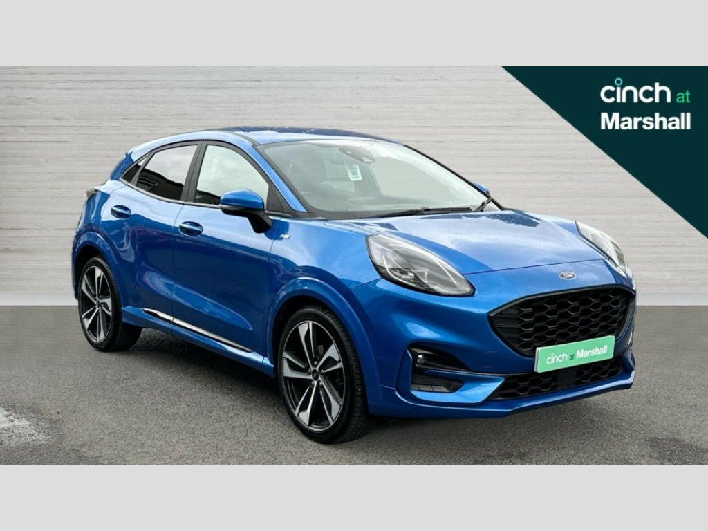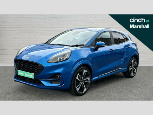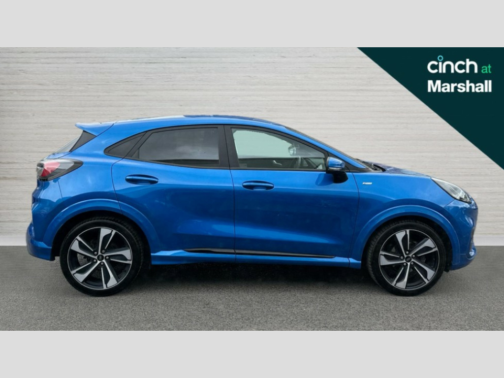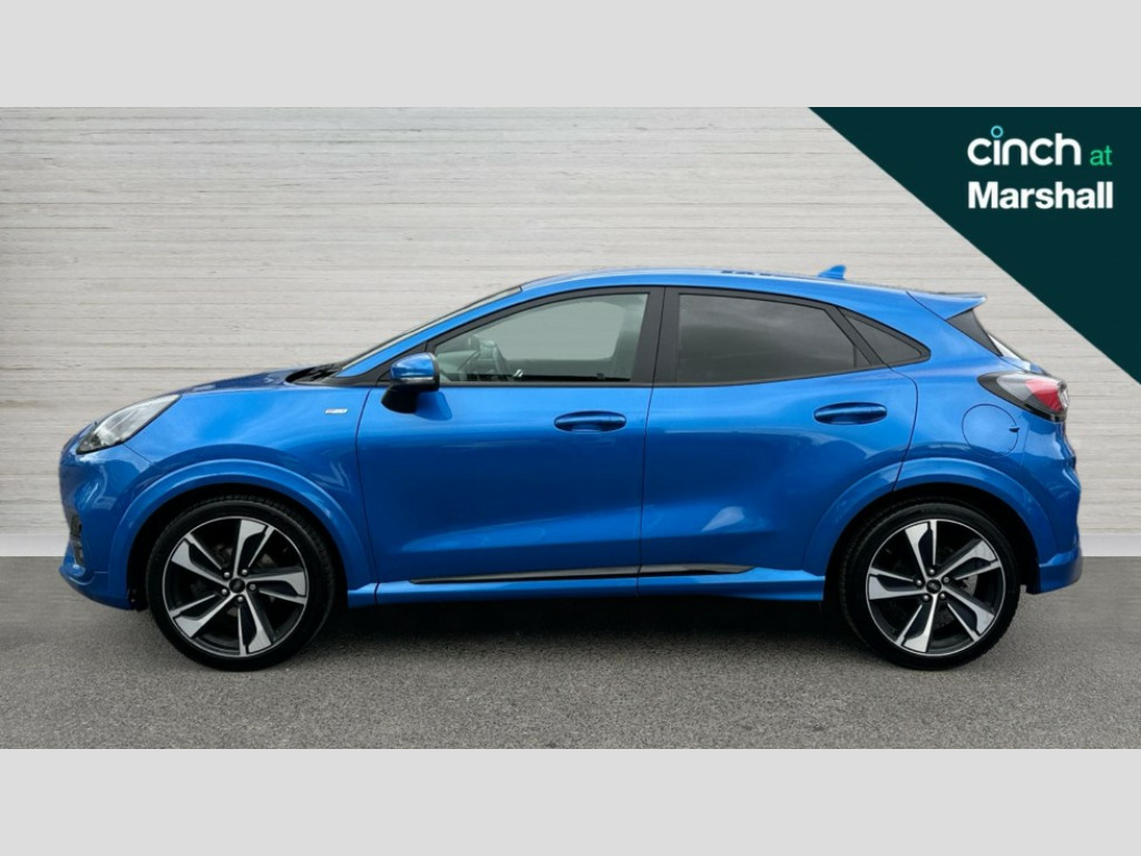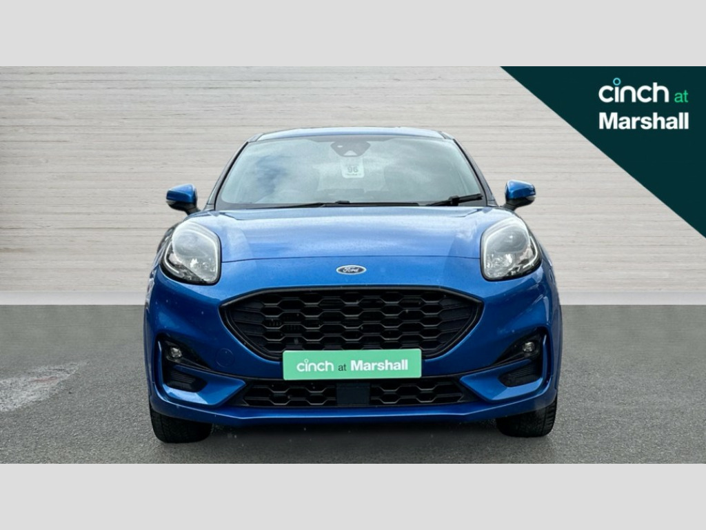 Ford Puma 1.0 EcoBoost Hybrid mHEV ST-Line X 5dr Ford easy fuel, Full digital 12.3" instrument cluster, Lane keeping aid with lane departure warning, Power assist steering, Rear parking sensor, Selectable drive modes(Normal, sport, Eco, trail, slippery), Wireless charging pad, Automatic headlights with rain sensing wipers and auto high beam, Body coloured door mirrors, Front fog lights with cornering lights and LED rear lamps, Power foldable heated door mirrors with puddle lamps, Privacy glass to side rear windows and tailgate glass, Quickclear heated windscreen, Rear wiper, ST-Line body kit with large rear spoiler wth sports suspension, Alloy sports pedals, Casual partial leather upholstery with salerno bolster, Centre console with armrest and stowage, Driver and passenger seat lumbar and height adjust, Ford megabox extended bootspace, Front and rear floor mats, Front and rear head restraints, Manual air conditioning, ST-Line flat bottomed sensico leather steering wheel with leather handbrake and aluminium gear knob, B&O Premium Audio system + Ford SYNC 3 navigation pack - Puma, 3 rear seatbelts, Electronic stability control (ESC) and hill start assist, Pre-collision assist with autonomous emergency braking, pedestrian/cyclist detection & post-collision braking, Tyre pressure monitoring system (TPMS), Thatcham alarm, Carbon look interior deco spears, Tyre inflation kit