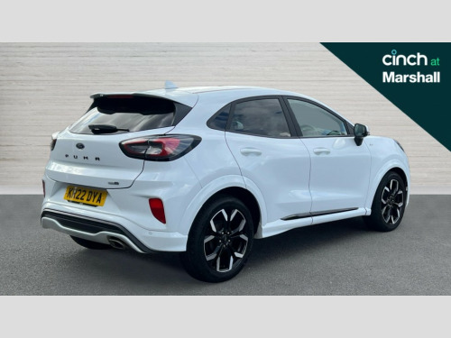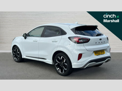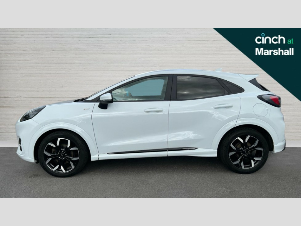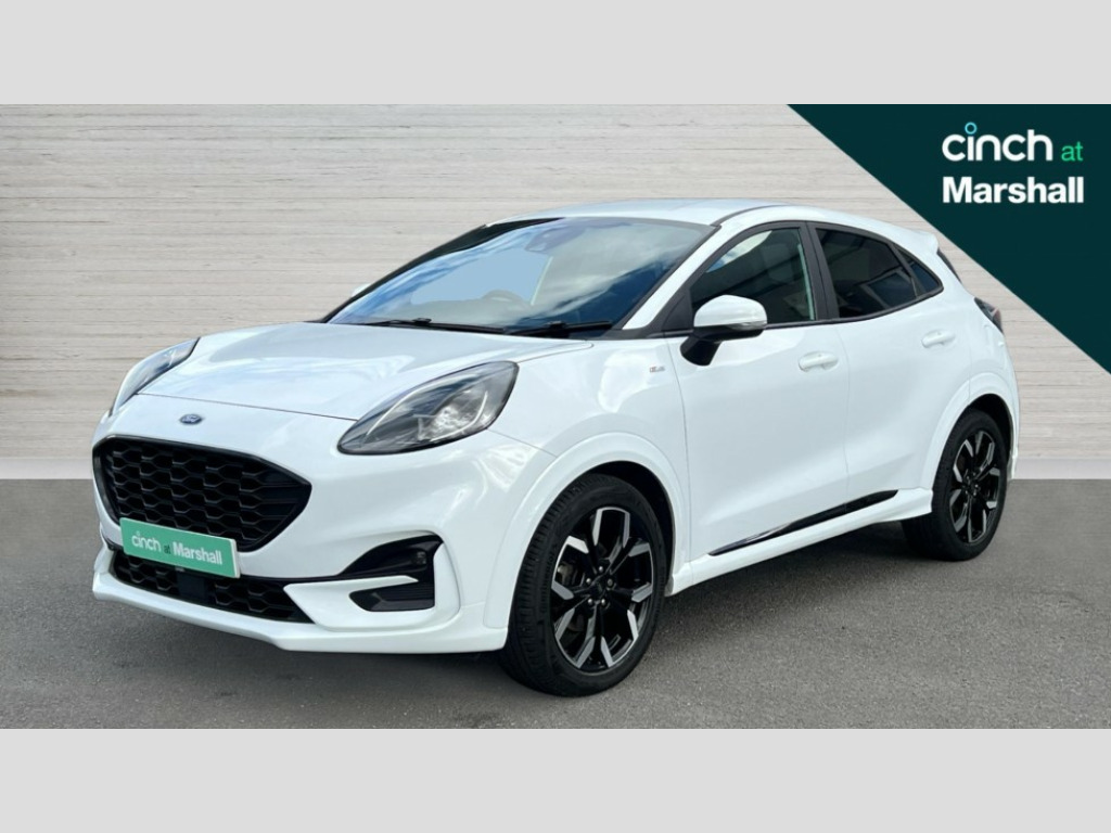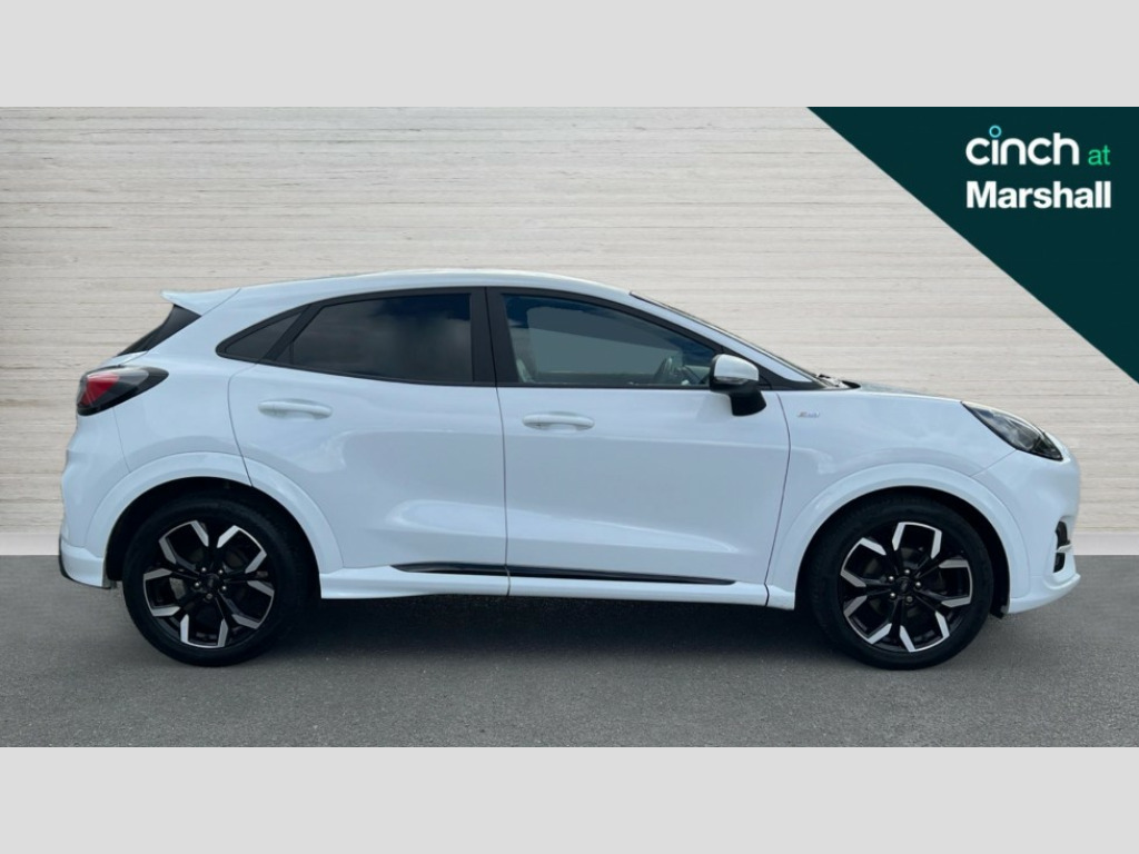 Ford Puma 1.0 EcoBoost Hybrid mHEV ST-Line X 5dr Driver impairment monitor, Emergency call service, Ford easy fuel, Full digital 12.3" instrument cluster, Lane keeping aid with lane departure warning, Power assist steering, Power start button, Rear parking sensor, Selectable drive modes(Normal, sport, Eco, trail, slippery), Speed sign recognition, Sport suspension, Automatic headlights with auto high beam, Automatic rain sensing wipers, Front fog lamps, LED daytime running lights, LED rear lamps, Power foldable heated door mirrors with puddle lamps, Privacy glass to side rear windows and tailgate glass, Quickclear heated windscreen, Rear side wing doors, Rear wiper, ST-Line body styling kit with unique grille and large body colour rear spoiler, Third brake light, 3 seat bench in 2nd row, Centre console with armrest and stowage, Electronic automatic temperature control (EATC), Ford megabox extended bootspace, Front and rear head restraints, Front floor mats, Manual 4 way driver seat adjust with lumbar adjustment, Manual 4 way passenger seat with lumbar seat adjustment, Sensico partial premium upholstery, Single front passenger seat, ST-Line flat bottomed sensico leather steering wheel with leather handbrake and aluminium gear knob, Wireless charging pad with electronic air temperature control (EATC), B&O Premium Audio system + Ford SYNC 3 navigation pack - Puma, Driver assistance pack with Lane departure warning - Puma, 3 rear seatbelts, Child safety lock, Electronic stability control (ESC) and hill start assist, Pedestrian/cyclist detection & post-collision braking, Pre collision assist with autonomous emergency braking, Tyre pressure monitoring system (TPMS), Thatcham alarm, Carbon look interior deco spears
