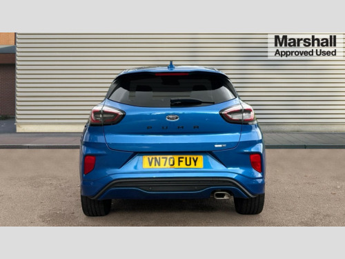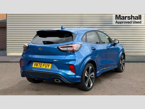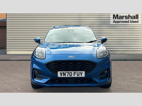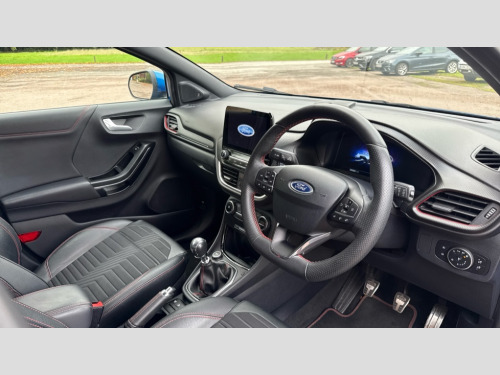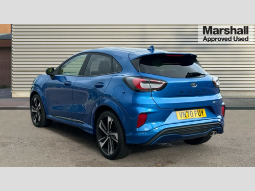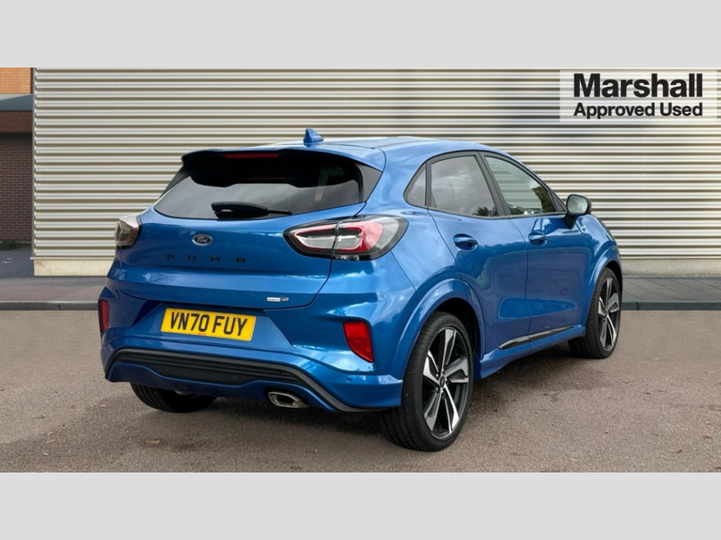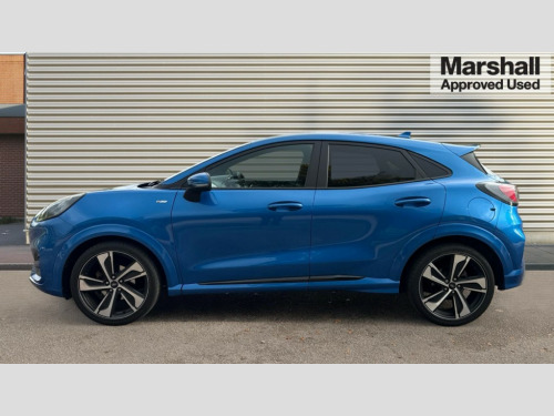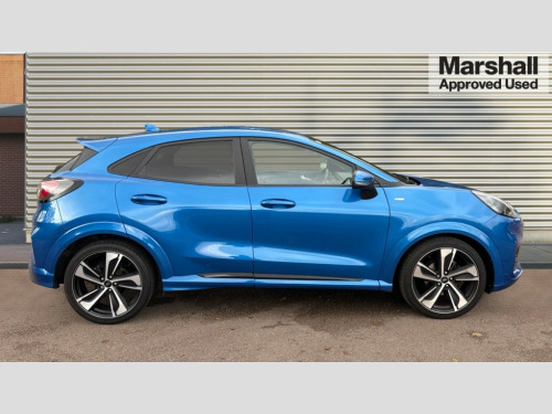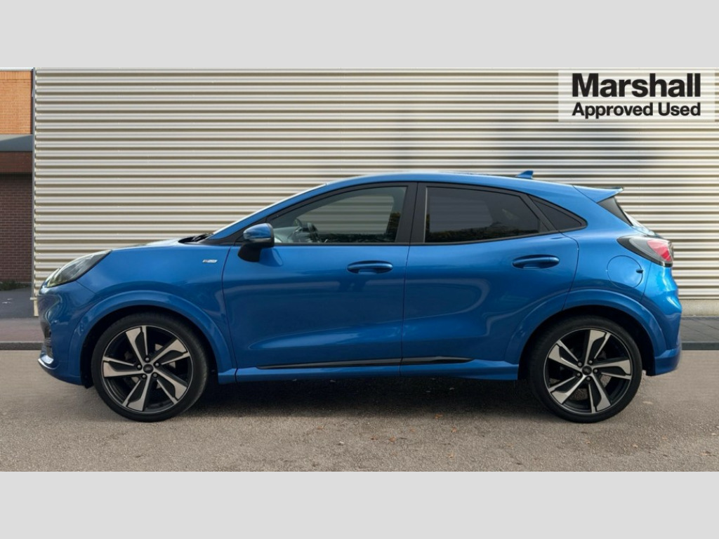 Ford Puma 1.0 EcoBoost Hybrid mHEV ST-Line X 5dr Ford easy fuel, Full digital 12.3" instrument cluster, Lane keeping aid with lane departure warning, Power assist steering, Rear parking sensor, Selectable drive modes(Normal, sport, Eco, trail, slippery), Wireless charging pad, Automatic headlights with rain sensing wipers and auto high beam, Body coloured door mirrors, Front fog lights with cornering lights and LED rear lamps, Power foldable heated door mirrors with puddle lamps, Privacy glass to side rear windows and tailgate glass, Quickclear heated windscreen, Rear wiper, ST-Line body kit with large rear spoiler wth sports suspension, Alloy sports pedals, Centre console with armrest and stowage, Driver and passenger seat lumbar and height adjust, Ford megabox extended bootspace, Front and rear floor mats, Front and rear head restraints, Manual air conditioning, Sensico partial premium upholstery, ST-Line flat bottomed sensico leather steering wheel with leather handbrake and aluminium gear knob, B&O Premium Audio system + Ford SYNC 3 navigation pack - Puma, 3 rear seatbelts, Electronic stability control (ESC) and hill start assist, Pre-collision assist with autonomous emergency braking, pedestrian/cyclist detection & post-collision braking, Tyre pressure monitoring system (TPMS), Thatcham alarm, Carbon look interior deco spears