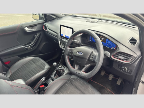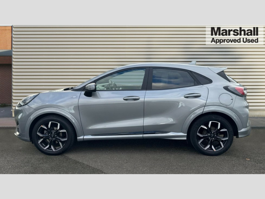Ford Puma 1.0 EcoBoost Hybrid mHEV ST-Line X 5dr Driver impairment monitor, Emergency call service, Ford easy fuel, Full digital 12.3" instrument cluster, Lane keeping aid with lane departure warning, Power assist steering, Power start button, Rear parking sensor, Selectable drive modes(Normal, sport, Eco, trail, slippery), Speed sign recognition, Sport suspension, Automatic headlights with auto high beam, Automatic rain sensing wipers, Front fog lamps, LED daytime running lights, LED rear lamps, Power foldable heated door mirrors with puddle lamps, Privacy glass to side rear windows and tailgate glass, Quickclear heated windscreen, Rear side wing doors, Rear wiper, ST-Line body styling kit with unique grille and large body colour rear spoiler, Third brake light, 3 seat bench in 2nd row, Centre console with armrest and stowage, Ford megabox extended bootspace, Front and rear head restraints, Front floor mats, Manual 4 way driver seat adjust with lumbar adjustment, Manual 4 way passenger seat with lumbar seat adjustment, Sensico partial premium upholstery, Single front passenger seat, ST-Line flat bottomed sensico leather steering wheel with leather handbrake and aluminium gear knob, Wireless charging pad with electronic air temperature control (EATC), B&O Premium Audio system + Ford SYNC 3 navigation pack - Puma, 3 rear seatbelts, Child safety lock, Electronic stability control (ESC) and hill start assist, Pedestrian/cyclist detection & post-collision braking, Pre collision assist with autonomous emergency braking, Tyre pressure monitoring system (TPMS), Thatcham alarm, Carbon look interior deco spears