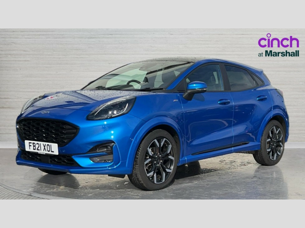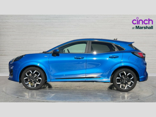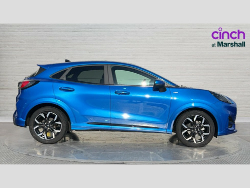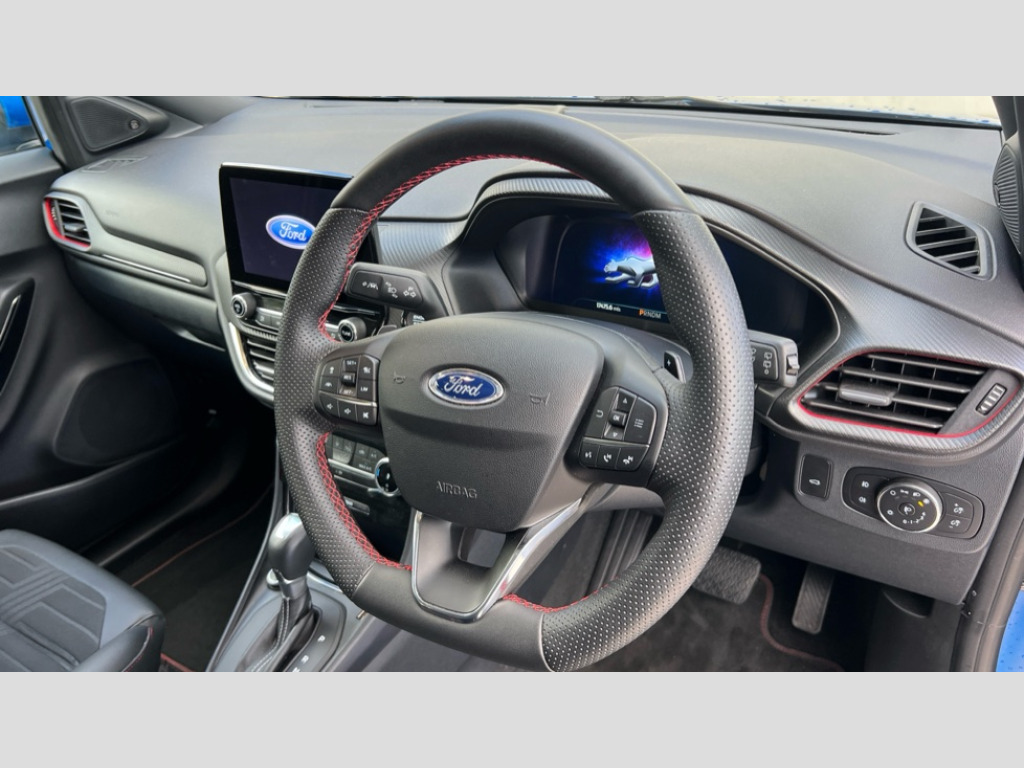 Ford Puma 1.0 EcoBoost Hybrid mHEV ST-Line X 5dr DCT Ford easy fuel, Full digital 12.3" instrument cluster, Lane keeping aid with lane departure warning, Power assist steering, Power start button, Rear parking sensor, Selectable drive modes(Normal, Eco, Sport, Slippery and Trail), Wireless charging pad, Automatic headlights with rain sensing wipers and auto high beam, Body coloured door mirrors, Front fog lights with cornering lights and LED rear lamps, Power foldable heated door mirrors with puddle lamps, Privacy glass to side rear windows and tailgate glass, Quickclear heated windscreen, Rear wiper, ST-Line body kit with large rear spoiler wth sports suspension, Centre console with armrest and stowage, Driver and passenger seat lumbar and height adjust, Ford megabox extended bootspace, Front and rear floor mats, Front and rear head restraints, Manual air conditioning, Sensico partial premium upholstery, Wireless charging pad with electronic air temperature control (EATC), B&O Premium Audio system + Ford SYNC 3 navigation pack - Puma, 3 rear seatbelts, Electronic stability control (ESC) and hill start assist, Pre-collision assist with autonomous emergency braking, pedestrian/cyclist detection & post-collision braking, Tyre pressure monitoring system (TPMS), Thatcham alarm, Carbon look interior deco spears