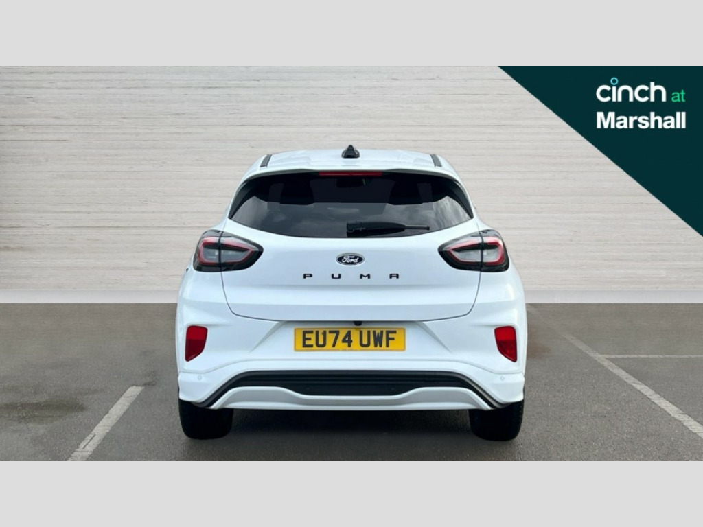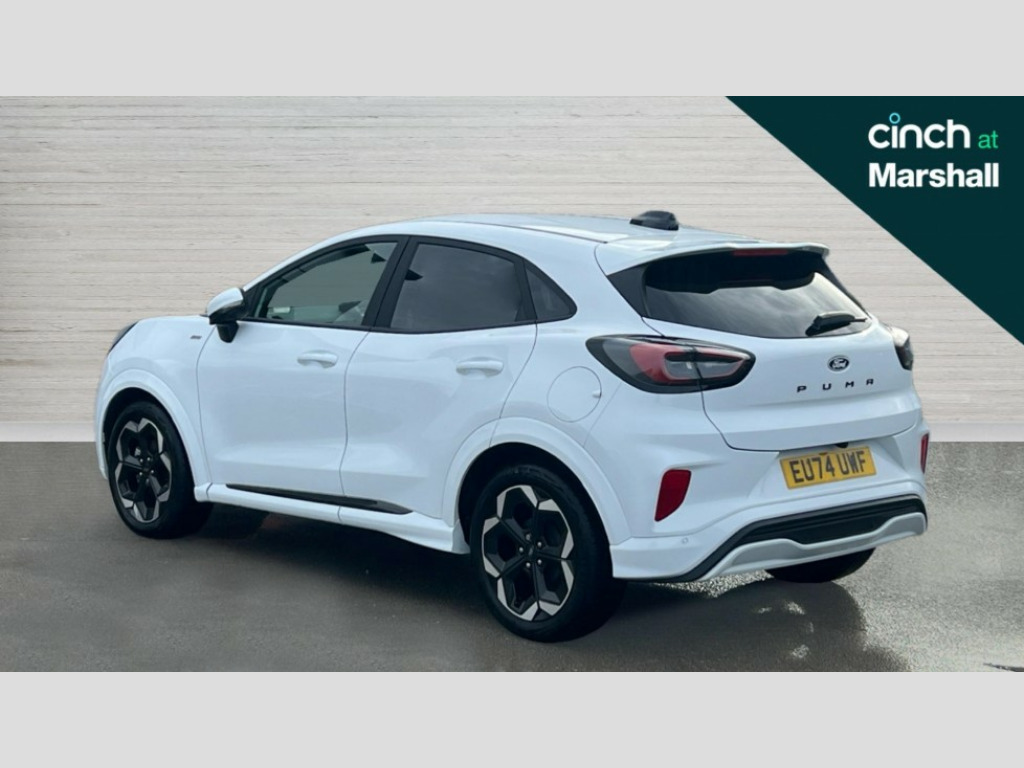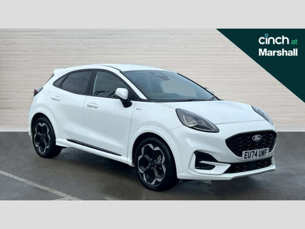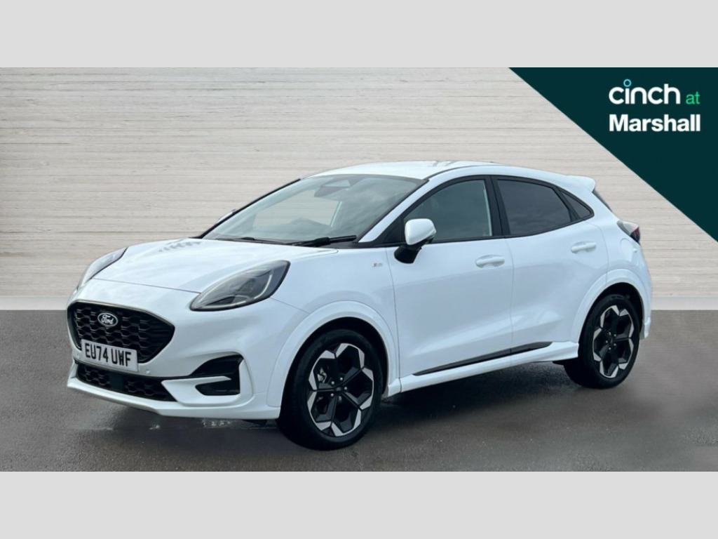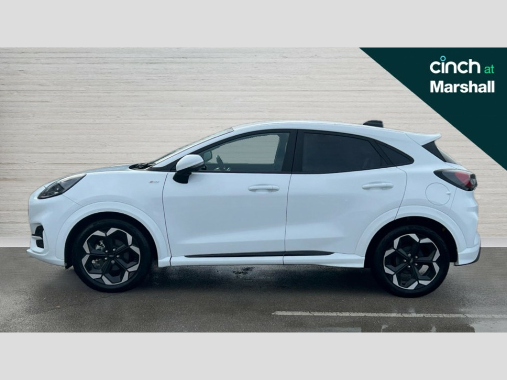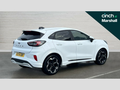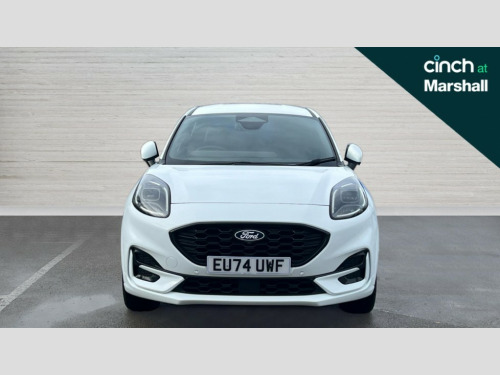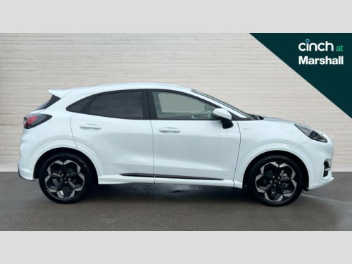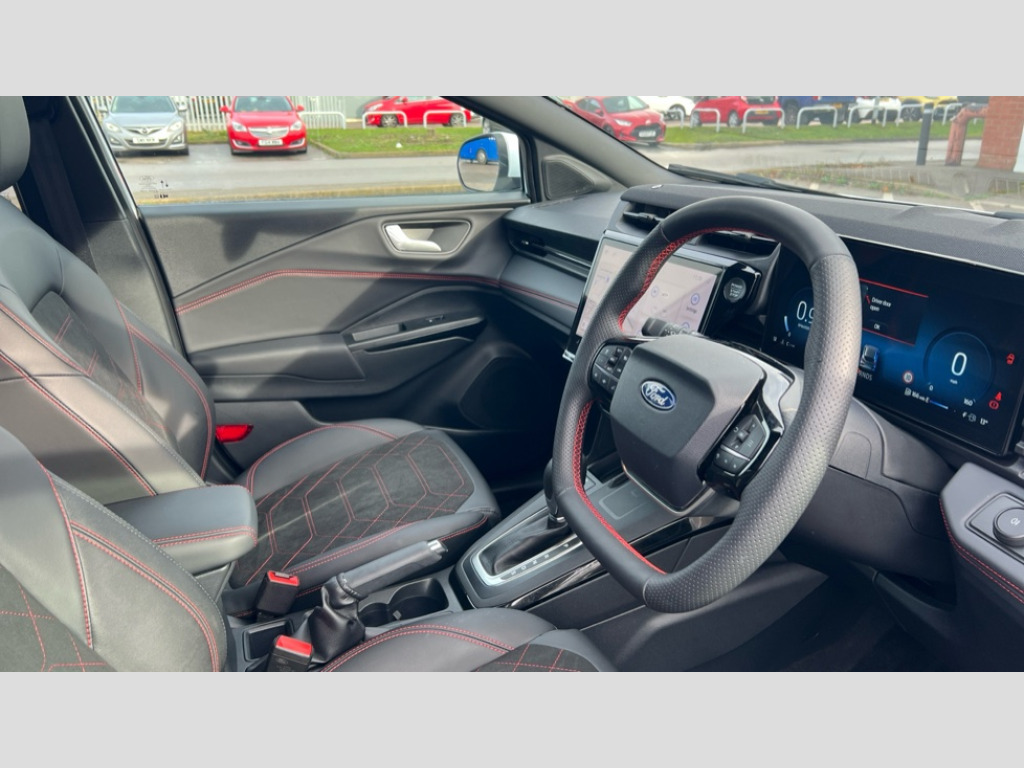 Ford Puma 1.0 EcoBoost Hybrid mHEV ST-Line X 5dr DCT Driver impairment monitor, Emergency call service, Ford easy fuel, Full digital 12.8" instrument cluster, Lane keeping aid with lane departure warning, Power assist steering, Selectable drive modes(Normal, Eco, Sport, Slippery and Trail), Speed sign recognition, Sport suspension, 12" landscape touchscreen display with wireless apple car play and android auto premium B&O audio system with 10 speakers, Ford pass connect and emergency assistance, Ford SYNC4 with connected navigation, Automatic headlights with rain sensing wipers and auto high beam, Front fog lamps, LED daytime running lights, LED rear lamps, LED third brake light, Power foldable heated door mirrors with puddle lamps and puma logo protection, Quickclear heated windscreen, Rear privacy glass, Rear side wing doors, Rear wiper, ST-Line body styling kit with unique grille, 3 seat bench in 2nd row, 4 way lumbar support for passenger seat, Centre console with armrest and stowage, Electronic automatic temperature control (EATC), Ford megabox extended bootspace, Front and rear head restraints, Front floor mats, Manual 4 way driver seat adjust with lumbar adjustment, Single front passenger seat, ST-Line X Premium synthetic leather upholstery, Comfort pack with power lift tailgate - Puma, 3 rear seatbelts, Child safety lock, Electronic stability control (ESC) and hill start assist, Pre-collision assist with autonomous emergency braking, pedestrian/cyclist detection & post-collision braking, Tyre pressure monitoring system (TPMS), Thatcham alarm