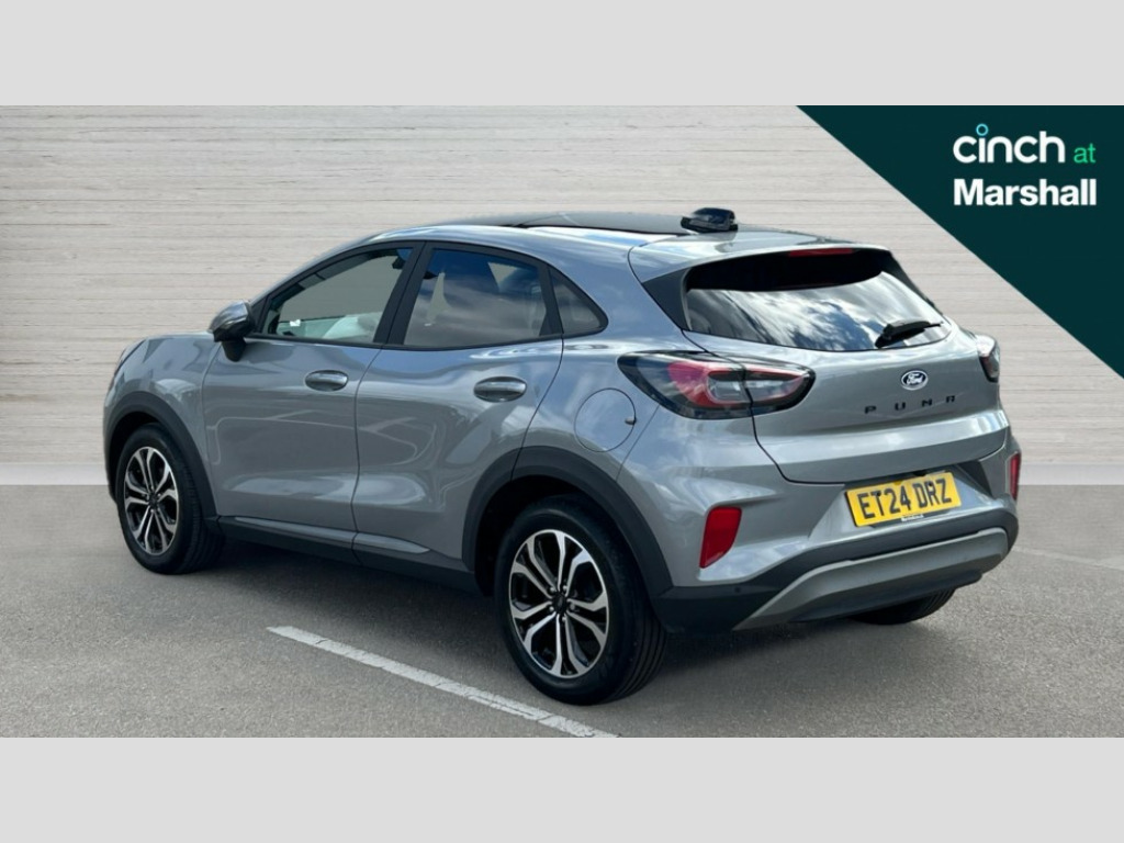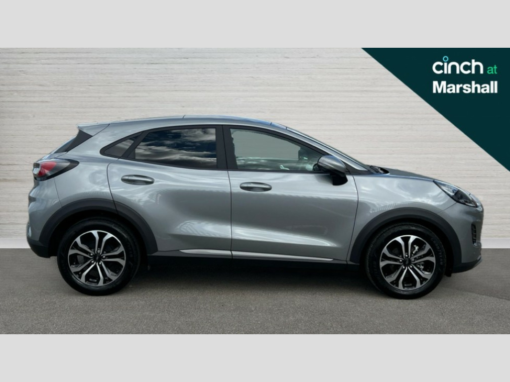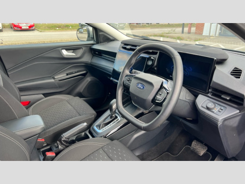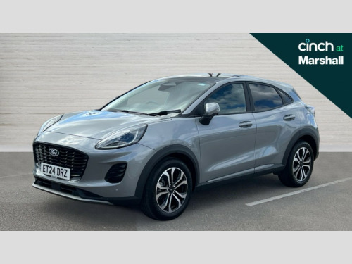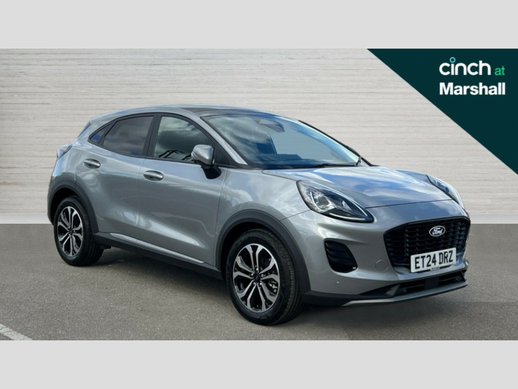 Ford Puma 1.0 EcoBoost Hybrid mHEV Titanium 5dr DCT Driver impairment monitor, Emergency call service, Ford easy fuel, Full digital 12.8" instrument cluster, Lane keeping aid with lane departure warning, Power assist steering, Selectable drive modes(Normal, Eco, Sport, Slippery and Trail), Speed sign recognition, Standard suspension, 12" landscape touchscreen display with wireless apple car play and android auto 6 speaker audio system, Ford pass connect and emergency assistance, Ford SYNC4 with connected navigation, Automatic headlights with rain sensing wipers and auto high beam, Front fog lamps, LED daytime running lights, LED rear lamps, LED third brake light, Quickclear heated windscreen, Rear privacy glass, Rear side wing doors, Rear wiper, 3 seat bench in 2nd row, Centre console with armrest and stowage, Electronic automatic temperature control (EATC), Ford megabox extended bootspace, Front and rear head restraints, Front floor mats, Manual 4 way driver seat adjust with lumbar adjustment, Single front passenger seat, Titanium cloth upholstery, 3 rear seatbelts, Child safety lock, Electronic stability control (ESC) and hill start assist, Pre-collision assist with autonomous emergency braking, pedestrian/cyclist detection & post-collision braking, Tyre pressure monitoring system (TPMS), Thatcham alarm, 17" Absolute black machined finish alloy wheel