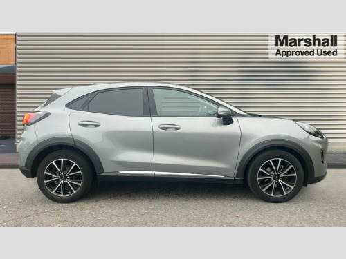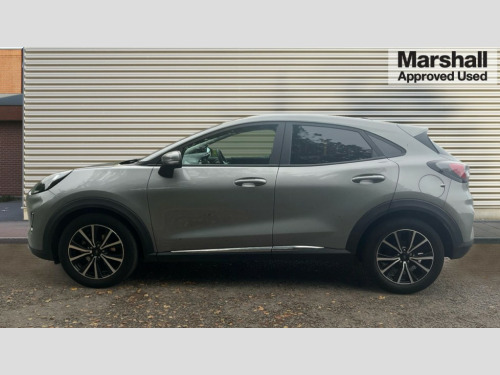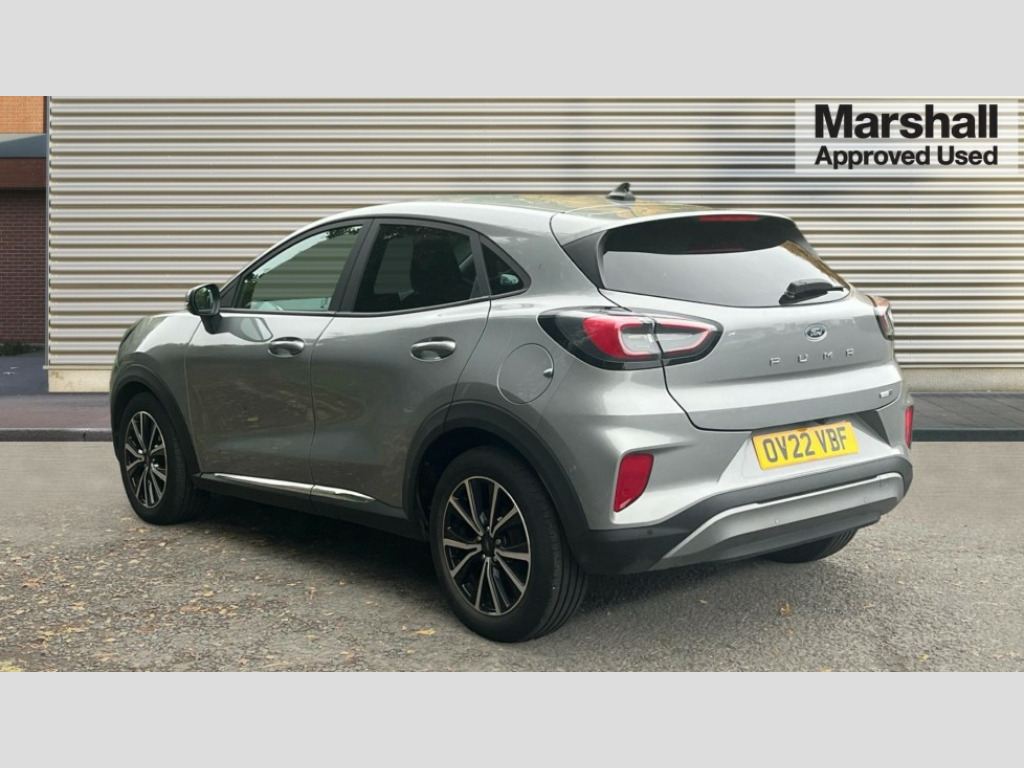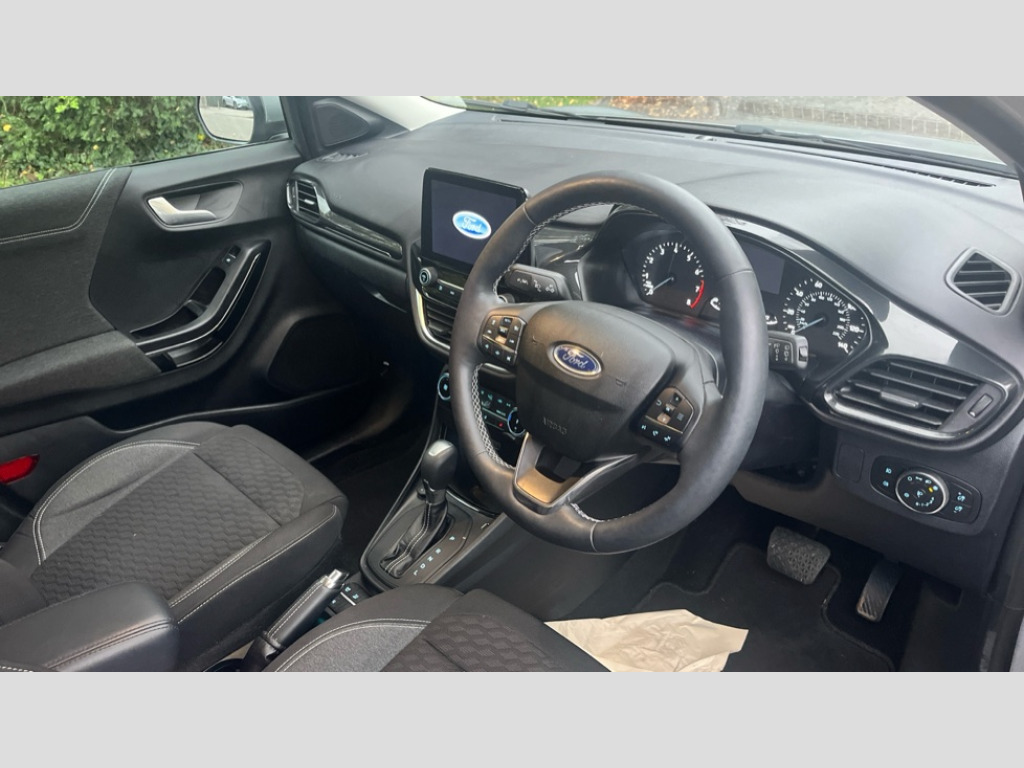 Ford Puma 1.0 EcoBoost Hybrid mHEV Titanium 5dr DCT Driver impairment monitor, Emergency call service, Ford easy fuel, Lane keeping aid with lane departure warning, Power assist steering, Power start button, Rear parking sensor, Selectable drive modes(Normal, sport, Eco, trail, slippery), Speed sign recognition, Standard suspension, Automatic headlights with auto high beam, Automatic rain sensing wipers, Body colour rear spoiler, LED rear lamps, Power foldable heated door mirrors with puddle lamps, Projector headlamps with LED day time running lights and front fog lamps, Quickclear heated windscreen, Rear side wing doors, Rear wiper, Third brake light, 3 seat bench in 2nd row, Centre console with armrest and stowage, Electronic automatic temperature control (EATC), Ford megabox extended bootspace, Front and rear head restraints, Front floor mats, Manual 2 way passenger seat adjustment, Manual 4 way driver seat adjust with lumbar adjustment, Sensico leather steering wheel/gear knob/handbrake, Single front passenger seat, Titanium cloth upholstery, Driver assistance pack with Lane departure warning - Puma, Ford SYNC 3 navigation pack - Puma, 3 rear seatbelts, Child safety lock, Electronic stability control (ESC) and hill start assist, Pedestrian/cyclist detection & post-collision braking, Pre collision assist with autonomous emergency braking, Tyre pressure monitoring system (TPMS), Thatcham alarm, 17" 10 spoke absolute black machined finish alloy wheel