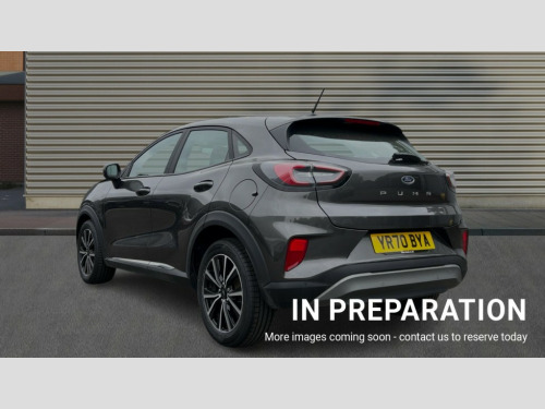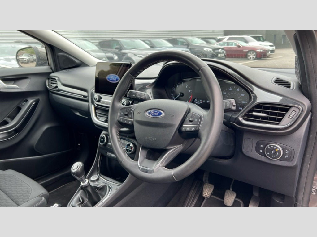 Ford Puma 1.0 EcoBoost Titanium 5dr Ford easy fuel, Lane keeping aid with lane departure warning, Power assist steering, Rear parking sensor, Selectable drive modes(Normal, Eco, Sport, Slippery and Trail), Wireless charging pad, Body coloured door mirrors, Front fog lights with cornering lights and LED rear lamps, Power foldable heated door mirrors with puddle lamps, Quickclear heated windscreen, Alhambra cloth upholstery with casual bolsters, Centre console with armrest and stowage, EATC - Electronic Auto Temperature control, Ford megabox extended bootspace, Front and rear floor mats and tie down rings, Front and rear head restraints, Lumbar massage for driver and passenger, Sensico leather steering wheel/gear knob/handbrake, 3 rear seatbelts, Electronic stability control (ESC) and hill start assist, Pre-collision assist with autonomous emergency braking, pedestrian/cyclist detection & post-collision braking, Tyre pressure monitoring system (TPMS), Thatcham alarm, 17" 10 spoke absolute black machined finish alloy wheel, Tyre inflation kit