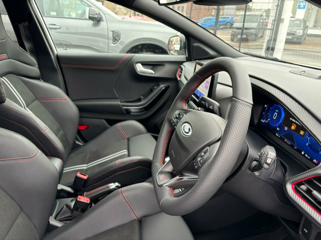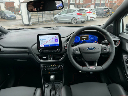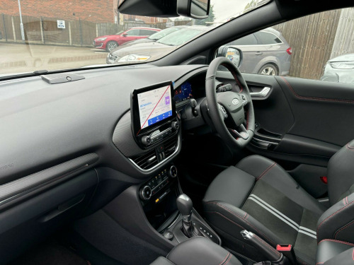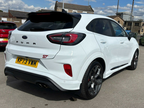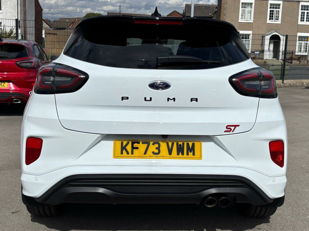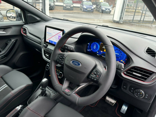 POWER TAILGATE, DRIVER ASSISTANCE PACK WITH ADAPTIVE CRUISE CONTROL, AUTONOMOUS EMERGENCY BRAKING BY RADAR/CAMERA, BLIND SPOT INDICATOR SYSTEM(BLIS) WITH CROSS TRAFFIC ALERT (CTA) AND ACTIVE BRAKING, ACTIVE PARK ASSIST AND REAR VIEW CAMERA, BLACK CONTRAST ROOF, ONE OWNER FROM NEW.This 2024 Ford Puma ST is a superb example, having had only one owner since new. It boasts a responsive 1.0 litre petrol hybrid engine, meeting Euro 6 emissions standards, and offers an impressive 0-62mph acceleration time of just 7.4 seconds. Inside, you'll find a host of desirable features including a Handsfree Power Tailgate for effortless access, and the convenience of Electronic Air Temperature Control with Climate Control. The ST trim level enhances the driving experience, complemented by Fixed LED Signature Headlamps for excellent visibility.Further enhancing its appeal, this Puma ST includes the Driver Assistance Pack, which incorporates Blind Spot Assistance and a Rear Camera for easier parking. The Winter Pack adds comfort with heated seats and a heated steering wheel, perfect for colder journeys. These features, combined with its dynamic performance, set this Ford Puma ST apart from other vehicles in its class, offering a refined and practical driving experience.