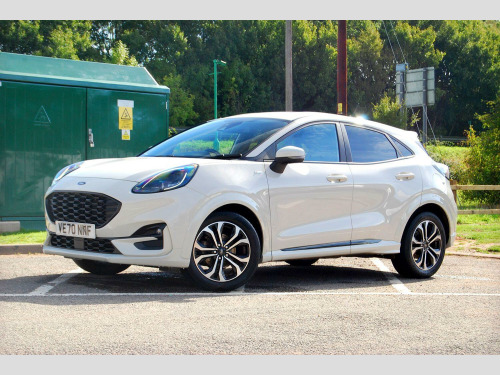 2020/70 Ford Puma ST-Line 1.0 EcoBoost 155 MHEV 5-Door covered 53,000 miles in Exclusive Metallic Metropolis White. 6-Speed Manual. , * Awaiting Preparation *, , Specification includes:, , - SYNC 3 Satellite Navigation System with 8 Touchscreen, Apple CarPlay and Android Auto, - Hands Free Power Tailgate, - Heated Front Seats, - Heated Steering Wheel, - Comfort Pack, - 17 5x2-Spoke ST-Line Alloy Wheels in Black Machined Finish, - Full Digital 12.3 Instrument Cluster, - Cruise Control with Intelligent Speed Limiter, - Rear Privacy Glass, - Rear Parking Sensors, - Power-Foldable Door Mirrors with Puddle Lights, - Ford KeyFree System with Motion Sensing Key Fob, - Ford MegaBox Extended Bootspace, - LED Projector Headlights with Daytime Running Lights, - LED Rear Lights, - Lane-Keeping System with Alert and Aid, - DAB Audio System with Voice Control, Bluetooth and USB, - Sports Style Front Seats in Ebony Black with Red Stitching, - ST-Line Leather Sports Style Flat Bottomed Multi Function Steering Wheel, - ST-Line Body Styling Kit - Upper Grille, Bumpers and Side Skirts with Rear Spoiler, - Front Cornering Fog Lights, - Quickclear Heated Windscreen, - Automatic Headlights & Wipers with Auto High Beam , - Auto-Dimming Rear View Mirror, - Air Conditioning, - Centre Console with Openable Armrest, - Selectable Drive Modes (SDM) - Normal, Eco, Sport, Slippery & Trail, - Sports Tuned Suspension, - FordPass Connect, - Keyless Start with Ford Power Button, - Stainless Steel Sports Pedals, - Dark Woven Deluxe Headliner, - Ford MyKey, - Tyre Pressure Monitoring System (TPMS), - Pre-Collision Assist with Autonomous Emergency Braking (AEB), - Electronic Stability Control (ESC) with Traction Control, - Anti-Lock Braking System (ABS) with Electronic Brake-Force Distribution (EBD), - Hill Start Assist (HSA), - Thatcham Category 1 Alarm, - Auto Start-Stop Technology, - Multiple Airbags, - On-Board Computer, - Electric Windows and Mirrors, , High specification ST-Line model fitted with optional extras including: Hands Free Power Tailgate, Comfort Pack with Heated Front Seats and Heated Steering Wheel, Exclusive Metropolis White paintwork. Plus: SYNC 3 Satellite Navigation System with 8 Touchscreen, Apple CarPlay and Android Auto, 17 ST-Line Alloy Wheels, Rear Privacy Glass, Cruise Control, Rear Parking Sensors, Ford MegaBox Boot, Digital Dash and more. , Complete with Full Ford Main Dealer Service History. 2 Owners From New. HPI Clear. MOT to April, 2026. Very good condition for the age and mileage. , Fitted with the fantastic 1.0 EcoBoost MHEV 155 (Mild Hybrid Electric Vehicle) engine fitted with a timing chain, not a wet cam belt. Excellent fuel economy and performance. Complete with spare remote key. , YouTube walkaround video here: https://youtu.be/l9Y2LH0xfZY, , _______________________________________________________________, , COVID-19 Update, , We are open for business and fully operational. Moving forwards, will be taking viewings on a pre-booked appointment basis. Cars will be valeted and sanitised prior to viewings. Vehicle delivery and click-and-collect services are still available. We will be taking enquiries over telephone, email and social media as normal. , If you wish to stay at home, walk-around videos and photos of any vehicle can be requested to provide peace of mind and conversations can be completed through video calling including FaceTime. Finance applications can also be discussed, proposed and processed via phone or email. Cars can be secured remotely and either collected from our forecourt or delivered directly to your door. , In regards to vehicle purchasing, we are still looking to purchase cars. This can also be discussed remotely with valuations and purchases being completed online. We can offer collection from your home or workplace, or arrange an appointment to bring your car down to our forecourt for a hand-over. , Being a sole trader business, we can offer a professional and personalised service whilst still adhering to any government guidelines and ensuring that our customers are safe, secure and happy. , We look forward to hearing from you. , _______________________________________________________________, , For more information please visit our website or call us on 07929 902 358. Viewings arranged by appointment. , Part Exchange Welcome. Finance Available - we are fully FCA registered and offer finance through MotoNovo Finance and others. , All of our vehicles come complete with a nationwide warranty included in the price - arranged through A1 Approved Ltd. , See our website for full vehicle stock-list. Find us on Facebook at GB Performance Cars or Focus ST UK. , WE BUY CARS FOR CASH. We are always looking to purchase Performance, Sports and Hot Hatch models. We offer a hassle-free, quick and honest service. Visit our website for more information.