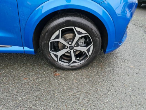 This 2025 Ford Puma ST Line T is a superb example, having had only one owner since new. This stylish compact SUV is powered by an efficient 1.0L Petrol Hybrid engine, meeting Euro 6 emissions standards. Inside, you'll find a generous 12in Landscape Touchscreen Display that seamlessly integrates with Wireless Apple CarPlay and Android Auto, all delivered through a 6 speaker sound system. The Ford SYNC Navigation system, complete with FordPass Connect and Emergency Assist, ensures you're always connected and informed. Driving visibility is enhanced by LED Headlights with distinctive Daytime Running Lights, while the Electronic Automatic Temperature Control provides a comfortable cabin environment. For added convenience and safety, this Puma features a Rear View Camera and Rear Parking Sensors. The Ford Puma ST Line T offers impressive efficiency, achieving a highlight fuel economy of 52 mpg, which is excellent for its class. Its low CO2 emissions further highlight its environmental consideration compared to similar vehicles. This combination of advanced technology, practical features, and strong efficiency makes this one owner 2025 Ford Puma a compelling choice for those seeking a modern and economical driving experience.