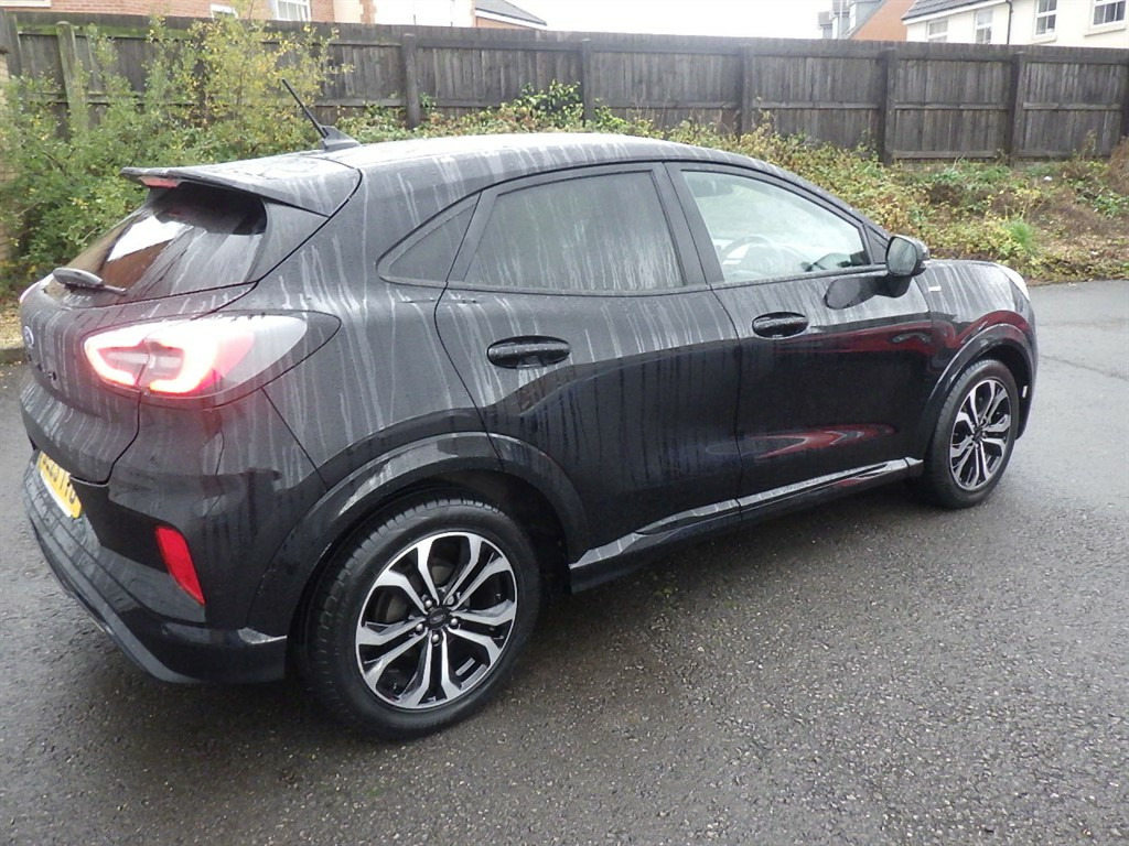 Introducing the stunning Ford Puma 1.0 Puma ST-Line MHEV 5dr, a dynamic and stylish SUV that is sure to turn heads wherever you go. With only 19350 miles on the clock and just 1 previous owner, this vehicle is in impeccable condition and ready to hit the road. Finished in sleek Black, this Ford Puma comes with a range of extras to enhance your driving experience. The interior features stylish Cloth upholstery in Black with Red Stitching, adding a touch of sporty sophistication. The Agate Black exterior paint exudes elegance, while the Privacy Glass ensures added comfort and privacy for you and your passengers. Don't miss out on the opportunity to own this exceptional Ford Puma. With its impressive mileage, single ownership history, and desirable extras, this SUV is the perfect choice for those seeking a blend of performance, style, and practicality. Visit us today to experience the Ford Puma for yourself and take your driving adventures to the next level. Traction Control and Emergency Braking Assistance,Tyre Pressure Monitoring System - TPMS,Tyre Inflation Kit,Trip-Fuel Computer,Thatcham Alarm,Tailgate - Manual,Sports Suspension,Speed Limiter,Soft-feel Gearshift Boot with Red Stitching,Selectable Driving Modes - Normal - Eco - Sport - Slippery and Trail,ST-Line Flat-Bottomed Leather Steering Wheel with Unique Red Stitching,ST-Line Body Styling Kit,ST-Line Badge,Restrain Device Pack,Remote Central-Double Locking,Rear Seats - Second Row 60-40 Folding Seats,ESC - Electronic Stability Control and Hill Start Assist,Front Seats - Sports Style,Front Fog Lights,Front Floor Mats,Front Bumper - Unique ST-Line Sport Design - Body Colour,Ford SYNC 3 Navigation,Ford Power Starter Button,Ford MegaBox Extended Bootspace,First Aid Kit Strap,Emergency Brake Warning - Automatic Hazard Warning Lights,Electric Windows - Front and Rear,Ecoboost Hybrid Tailgate Badge,Full Digital 12.3in Instrument Cluster,Drivers Manual 4-Way Seat Adjustment with Manual Lumbar Adjust,Cruise Control with Intelligent Speed Assist,Courtesy Lights - Ambient LED Courtesy Lighting - Single Colour,Centre Console - Premium with Openable Stowage Area with USB Connectivity - 2 Cupholders and 12v Power Point,Automatic Headlights with Rain-Sensing Wipers and Auto High Beam,Automatic Dimming Rear View Mirror,Active Grille Shutter,Acoustic Laminated Windscreen,ABS - Anti-lock Braking System,Passengers Seat - 2-Way,Rear Seats - 2-Way Head Restraint Up-Down,Rear Parking Sensors,Rear Bumper Body Colour - Diffuser,Quickclear Heated Windscreen,Puma Badge,Projector Headlamps with LED Daytime Running Lights,Pre-Collision Assist with Autonomous Emergency Braking and Pedestrian-Cyclist Detection,Power-Foldable Heated Door Mirrors with Puddle Lamps,Power Steering,Post Collision Braking,17in Alloy Wheels - 5x2 Spoke - Black Machined Finish,Manual Air Conditioning,Lower Bodyside Moulding - Body Colour,Locking Wheel Nuts,Large Rear Spoiler - Body Colour with Centre High Mounted Stop Light,Lane Keeping Aid with Lane Departure Warning,LED Rear Lights,Intelligent Speed Assistance,Instrument Panel - High Level,Headliner - Deluxe,Handbrake - Black Sensico Trimmed with Stitching,Gear Knob - Aluminium,Cloth - Black with Red Stitching,Agate Black,Privacy Glass