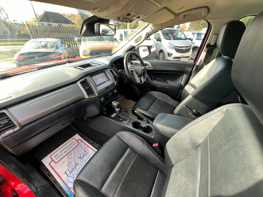 5 doors, 3 seats, Diesel, crew cab, automatic, 36,000 Miles, red, FULLY HPI CLEAR, 1 OWNERS FROM NEW, AIR CON, PARKING SENSORS, REAR CAMERA, Brake assist system, Central door locking, Connection to ext.entertainment devices, Cup holders, Electric windows, Electronic brake distribution, Electronic traction control, Front airbag, Front seat centre armrest, Power steering, Remote audio controls, Stability control, Start/Stop, service history BUY FROM HOME- DELIVER TO YOUR DOOR, WATCH A WALK AROUND VIDEO ON OUR WEBSITE. We offer up to 3 years warranty per vehicle! WE ACCEPT ALL MAJOR DEBIT AND CREDIT CARDS! ALWAYS AROUND 100 VEHICLES IN STOCK! 17in Alloy Wheels - 8in Silver,2 Key Fobs,ABS - ESP and Roll-Over Mitigation,Air Conditioning - Manual,Airbags - Curtain,Airbags - Driver and Front Passenger,Airbags - Drivers Knee Bolster,Airbags - Front Side,Airbags - Passenger Deactivation,Bi-Xenon Headlights,Body Coloured Plastic Front Bumpers,Bright Front Fender Grill,Cargo Box Power Point Plug,Chrome Exterior Door Handles,Chrome Exterior Mirror Finish,Chrome Lift -Decklid Handle,Chrome Sports Bar - Deleting Load Rest from XLT - Pack 11,Collision Mitigation System,Cool Box in Centre Console,Cruise Control with ASLD -AEB and ISA,Day-Night Inside Mirror,Daytime Running Lamps,Double Locking Power Door Lock with Flip Key,Driver Seat Back Mounted Map Pocket,Dual Control System - EATC,Dual Power Heated Fold Back Mirrors with Puddle Lamps and Signal,EPAS - Electric Power Assisted Steering,ESC - Electronic Stability Control,Electrically-Operated Windows with One-Shot Drivers Window,Electrochromic Inside Mirror,Fixed Rear View Camera,Ford SYNC 3 Single CD-DAB Radio,FordPass Connect,Front Fog Lights,Front Parking Aid,Front Seats - Driver and Passenger Heated Seats,Front Splash Guard - Mud Flaps,Gearshift Knob - Leather,Heated Windshield and Rear Window,High Mounted Stop Lamp with Cargo Light,ISOFIX Child Safety Seat Attachments,Inside Chrome Door Handles,Intelligent Speed Assistance,Lane Keeping Aid,Leather Door Trim Panel Insert,Leather Seat Trim,Less Load Box Bedliner,Load Box Bedliner,Load Rest,Loadbox Inside Tie Down Hooks,Locking Wheel Nuts,Mud Flaps - Rear,Open Style Rear Axle,Passive Anti-Theft System,Passive Keyless Entry and Start,Power Converter,Power Tailgate Lock,Premium Carpet Floor Mats,Privacy Glass,Rain Sensitive Windshield Wipers,Rear Bumper Chromed Steel Step,Rear Parking Sensors,Rear Power Point Plug,Rear Throw in Logo Floor Mats,Roof Storage for Driver Sunglasses,Seats - Drivers 8-Way Adjustment,Self Coloured Exterior Door - Tailgate Handles,Side Step with Bright Finish Inserts,Sports Bar with High Mounted Brake Light,Steering Wheel - Leather Wrapped,TSR - Traffic Sign Recognition,Tailgate with Easy-Lift - Lower Mechanism,Thatcham Category 1 Security System,Tie Down Rail with Rope Hooks,Traction Control - TC,Tyre Pressure Sensors,Under Hood Engine Cover