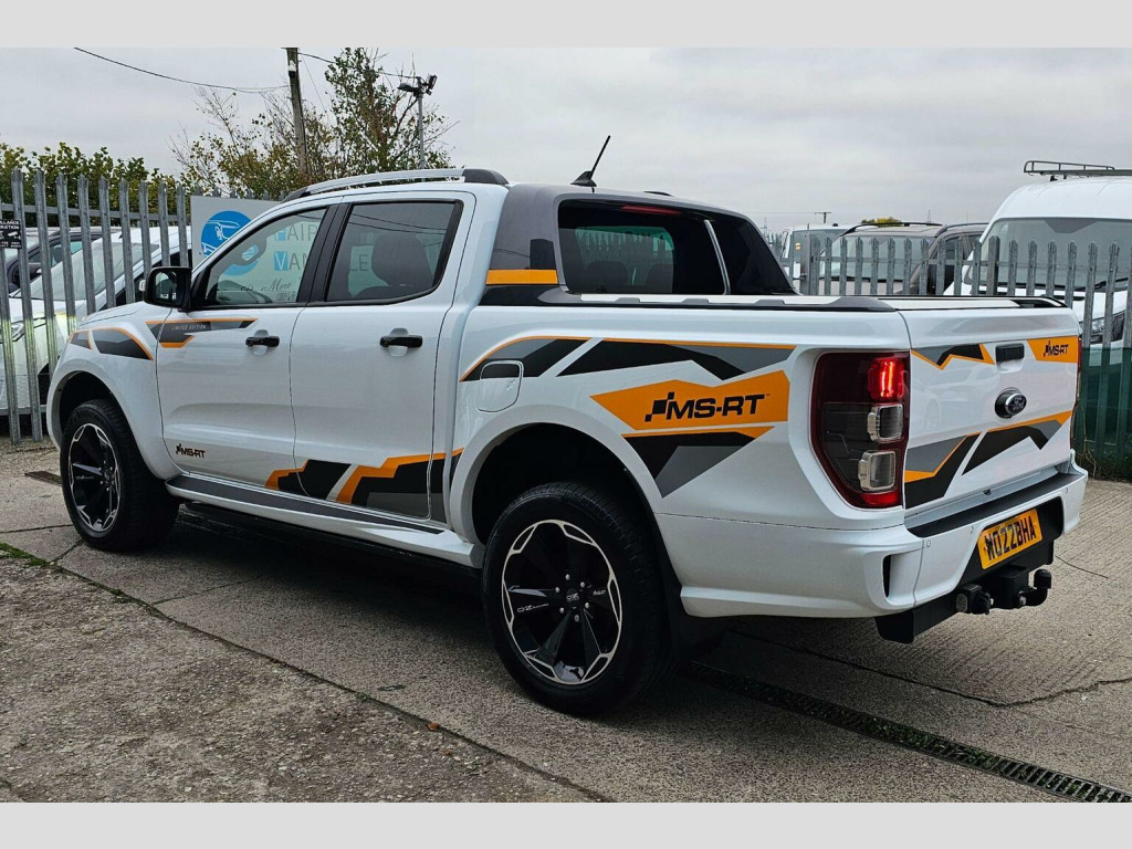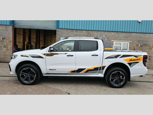 Finance arranged , This 2022 Ford Ranger MS-RT is a standout example, boasting exceptionally low mileage of just 9420 miles from its single owner. This impressive 4x4 pickup is powered by a robust 2.0 litre EcoBlue diesel engine, delivering a substantial 210 bhp and meeting Euro 6 emission standards. It comes equipped with a Trailer Tow Pack including a towbar, perfect for those needing to haul. This model also has the msrt electric sidebars and power mountain top. Inside, youll find comfort and convenience with heated front seats for both driver and passenger, and dual zone automatic electronic climate control (EATC) to keep everyone comfortable. The MS-RT trim level signifies a premium offering, and this Ranger further enhances its appeal with practical features. Parking is made easier thanks to a fixed rear view camera and rear parking sensors, providing excellent assistance. The four wheel drive system ensures capability in various conditions, while the low mileage and single owner provenance indicate a well cared for vehicle that stands out from others on the market.