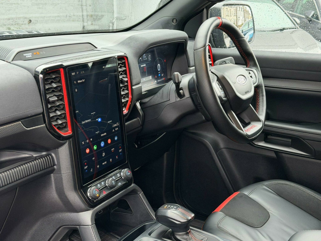 This 2024 Ford Ranger Raptor is a remarkable example of a high performance pickup truck, boasting a powerful 2.0L diesel engine that delivers an impressive 207 bhp. As a Euro 6 compliant vehicle, it meets stringent emission standards, and its four wheel drive system ensures capability in various conditions. This Raptor derivative comes equipped with a host of desirable features, including Electronic Automatic Air Conditioning for optimal cabin comfort, Wireless Charging for your devices, and the ICE Feature Pack 106, which includes a premium branded sound system for an enhanced audio experience. Furthermore, the Front Seat Pack 9 adds heated seats for added comfort, and the Trailer Tow Pack, complete with a towbar, makes it ready for towing duties.The Ford Ranger Raptor stands out with its robust engineering and thoughtful features. The 207 bhp output from its 2.0 litre EcoBlue engine, combined with the automatic transmission and four wheel drive, provides a dynamic and assured driving experience. The inclusion of features like climate control, heated seats, and a premium sound system demonstrate a focus on driver and passenger comfort, setting it apart from other vehicles in its class. This 2024 model is designed to offer both rugged utility and a refined driving environment.. 12v Socket in Bedliner, 17in Alloy Wheels, 17in Aluminum Spare Wheel, 2 Key Fobs, 360 Lighting, 400W Power Inverter, A Pillar Assist Handle, ABS - Anti-Lock Braking System and Electronic Stability Programme - ESP Brakes with Electronic Brake Boost, Accent Colour HD Front Bumper, Acoustic Laminated Windscreen, Airbag - Front Passenger, Airbags - Driver, Assisted Conventional Tailgate, Battery Management System, Black Front Fender Grill, Black Grille, Body Coloured Exterior Mirror Finish, Breakdown Warning Triangle, Cabin Socket and Loadbox Socket, Cargo Light, Cast Alloy Side Steps, Child Proof Rear Door Locks, Console with Double Lid, Daytime Running Lamps, Decklid Handle - Self Coloured, Door Handles - Body Colour, Driver and Passengers Sun Visor with Mirror, Dual Note Electric Horn, Dual Power Heated Fold Back Mirrors with Puddle Lamps, E-Marked Glass, EPAS - Electric Power Assisted Steering, Electric Rear Window Defroster, Electric Windshield Defroster, Electrical Outlet 3, Electrochromic Inside Mirror, Electronic Automatic Air Conditioning, Electronic Parking Brake, Extra Large Wheelarch Flares, Fog Lamp Bezels, Fresh Air Heater, Front Seat Pack 9, Front Splash Guard - Mud Flaps, Front and Rear Towing Hooks, Fuel Tank Guard, Full TFT-LCD Instrument Cluster, Functional Upgrade Pack 3, Grab Handle - Roof Mounted Passenger Side, Headlights - Levelling System - Automatic, Heated Steering Wheel, Heavy Duty Terrain Pack, High Mounted Stop Lamp, High Series Air Register, ICE Feature Pack 106, Interior Ambient LED Lighting, Interior Trim Pack 15, LED Front Fog Lamps, Level 3 Headlamp, Level 3 Tail Lamp, Load Box Edge Protectors, Locking Front Axle, Locking Glove Box Lid, Locking Rear Axle, Locking Wheel Nuts, Manual Liftgate, Metal Underbody Protection, Non Locking Capless Fuel Fill, Non Locking Lug Nuts, Non Woven Carpet, Overhead Console with Dome Lamps, Passive Keyless Entry and Start, Performance Suspension, Pollen Filter, Power Door Deadlocks - Double Locking, Power Front Windows with One Touch Up Down, Power Rear Windows, Premium Front Floor Mats, Privacy Glass, Pro Trailer Backup Assist, Pull Out Cup Holder, Radio Noise Supression, Rain Sensitive Windshield Wipers, Rear Bumper Step Accent Colour, Rear Floor Ducts, Rear Fog Light, Rear Power Point Plug, Rear Seat Pack 15, Rear Splash Guards - Mud Flaps, Roof Storage for Driver Sunglasses, Spare Wheel Lock, Steering Wheel - Multimedia Controls, Stolen Vehicle Recovery System, Tailgate Lock, Technology Package 73, Tempered Glass Front Window, Thatcham Alarm, Thatcham Security System, Tie Down Hooks, Trailer Tow Pack, Under Hood Engine Cover, Washer Tank Level Warning Lamp, Wireless Charging, Raptor Pack, Super Matte Leather - Ebony, Power load cover.