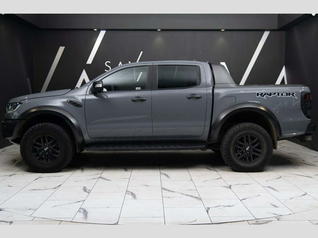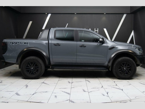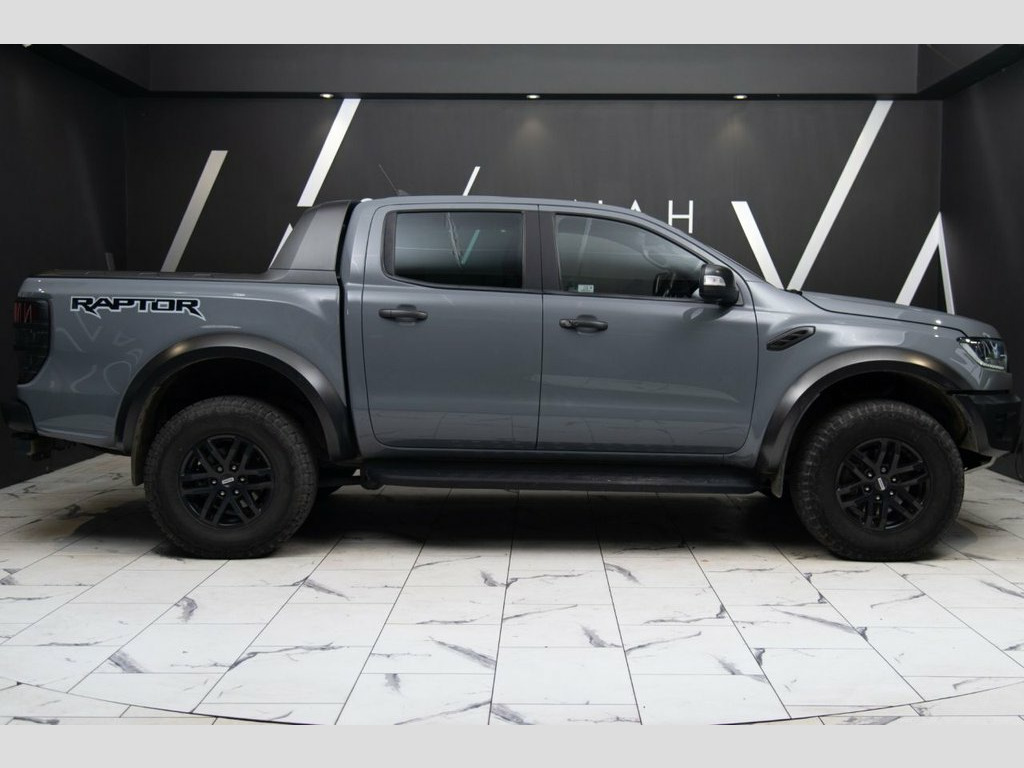 Ford Ranger 2.0 EcoBlue Raptor Pickup Double Cab 4dr Diesel Auto 4WD Euro 6 (s/s) (213 ps) – an uncompromising blend of rugged design, off-road capability, and everyday refinement. Finished in striking Conquer Grey with bold Dyno Grey 17-inch alloy wheels, black side steps, Boulder Grey accents, and the signature FORD grille, it commands presence on every road and trail. The Raptor's chassis is engineered for performance with unique suspension, underbody protection, locking rear axle, and all-terrain management, making it as fearless off-road as it is refined on the road. Inside, the cabin exudes durability and sophistication with Soho Grain premium ebony leather seats, Raptor paddle shift, a unique leather steering wheel, ambient LED lighting, and an ebony headliner. Heated front seats, dual-zone climate control, and premium floor mats ensure comfort, while advanced technology is at the core with Ford SYNC 3 infotainment, FordPass Connect, fixed rear-view camera, and front and rear parking aids. Safety and assistance features include lane keeping aid, collision mitigation, traffic sign recognition, and a full suite of airbags. Practicality is assured with a lockable mountain top cover, load bed liner, tie-down rails, and trailer tow pack, complemented by power tailgate lock and multiple power points. A pickup that goes far beyond utility, the Ranger Raptor is a commanding performance machine built for those who demand capability, strength, and refinement in equal 17in Alloy Wheels - 8.5in Dyno Grey, 2 Key Fobs, ABS - ESP and Roll-Over Mitigation, Airbags - Curtain, Airbags - Driver and Front Passenger, Airbags - Drivers Knee Bolster, Airbags - Front Side, All Terrain Management, Automatic Headlamp Control On-Off, Black Exterior Mirror Finish, Black Front Fender Grill, Black Plastic Front Bumper, Black Side Steps, Black Tailgate Handle, Boulder Grey Exterior Door Handle, Cargo Box Power Point Plug, Chrome Lift -Decklid Handle, Collision Mitigation System, Cruise Control with ASLD -AEB and ISA, Day-Night Inside Mirror, Daytime Running Lamps, Double Locking Power Door Lock with Flip, Driver Seat Back Mounted Map Pocket, Dual Control System - EATC, Dual