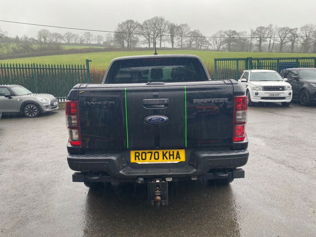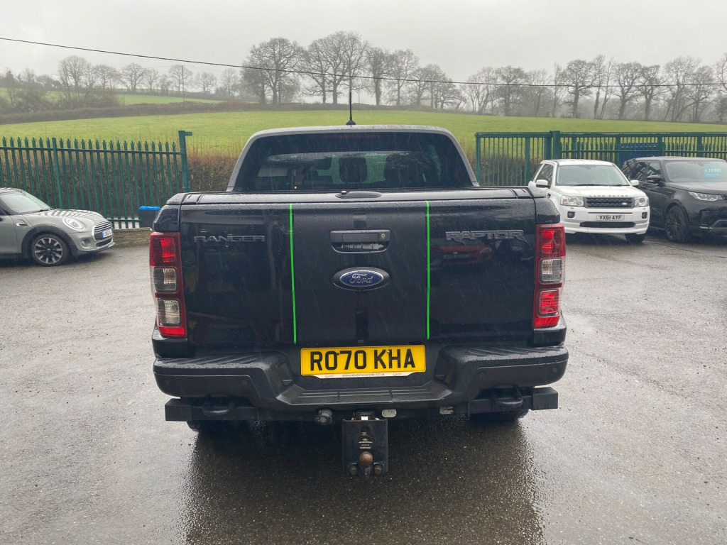 This 2020 Ford Ranger 2.0 EcoBlue Raptor Pickup Double Cab 4dr Diesel Auto 4WD Euro 6 (s/s) (213 ps) is a robust and reliable vehicle with only 50790 miles on the clock. With a powerful diesel engine, this pickup is ULEZ compliant and comes with a fresh MOT on sale. It comfortably seats 5 passengers with 4 doors, making it perfect for both work and leisure. The 17in alloy wheels and all-terrain tyres ensure a smooth and steady ride, while the black exterior mirror finish, front fender grill, and plastic front bumper add a touch of rugged style. This pickup is sure to turn heads and provide a comfortable and efficient driving experience, whether on or off the road. - 2.0 EcoBlue Pickup Double Cab 4dr Diesel Auto 4WD Euro 6 (s/s) (213 ps)- Great spec including roller shutter- Service History- Will be supplied with 12 months' MOT- Extended Warranties Available- Finance Available- Part Exchange Welcome, in alloy wheels - 8.5in dyno grey, all terrain tyres, black exterior mirror finish, black front fender grill, black plastic front bumper, black radiator grille, black side steps, black tailgate handle, dual power heated fold back mirrors with puddle lamps and signal, dyno grey exterior door handle, dyno grey painted rear bumper, dyno grey sports hoop with side rails, electrically-operated windows with one-shot drivers window, front splash guard - mud flaps, heated windshield and rear window, heavy body construction, inside chrome door handles, locking wheel nuts, power rear side window, privacy glass, rear splash guards, spare wheel - conventional, trailer tow hitch - 13 pin socket, trailer tow pack, under hood engine cover, 2 fobs, 3 point inertia rear seat belts, 433 mhz high power door lock frequency, abs - esp-rsc and terrain management, airbags - curtain, airbags - driver and front passenger, airbags - drivers knee bolster, airbags - front side, airbags - passenger deactivation, airbags - side thorax, child proof rear door locks, collision mitigation system, double locking power door lock with flip key, driver and passenger belt minder, drivers air bag restraint, isofix child safety seat attachments, keyless entry and start system, lane keeping aid, low speed crash foam in bumper, passenger airbag restraint, power tailgate lock, safety pack 16, security lock group, thatcham category 1 security system, under body protection, volumetric remote alarm system with less battery backup, air conditioning - manual, cargo management system, cool box in centre console, driver seat back mounted map pocket, dual control system - eatc, ebony headliner, electrochromic inside mirror, front roof interior assist handle, front seats - driver and passenger heated seats, gearshift knob - leather, inflatable driver knee bolster, leather handbrake with chrome button, load box bedliner, load box bedliner - power point and tie down hooks, loadbox inside tie down hooks, mountain top lockable cover and load bars, passenger seat air bag disable lamp, premium front floor mats, premium rear floor mats, rain sensitive windshield wipers, rear seat centre armrest, roof storage for driver sunglasses, seats - drivers 8-way adjustment, seats - front passenger 8-way adjustment, second row bench seat, single driver sunvisor with ticket holder - illuminated mirror and sliding rod, single passenger sunvisor with illuminated mirror and sliding rod, single rear fog light, standard electric starter, tailgate with easy-lift - lower mechanism, unique leather steering wheel, vinyl door trim panel insert, automatic headlamp control on-off, daytime running lamps, headlights - led, high mounted stop lamp with cargo light, led front fog lamps, cruise control with asld -aeb and isa, epas - electric power assisted steering, fixed rear view camera, intelligent speed assistance, locking rear axle, performance suspension, rear bumper sensor device, rear parking sensors, speed control with asld - aeb and isa, speed sign recognition, washer tank level warn lamp, ford sync 3 single cd-dab radio - tmc and active noise cancelling, fordpass connect, loadbox power point plug, power converter, rear power point plug