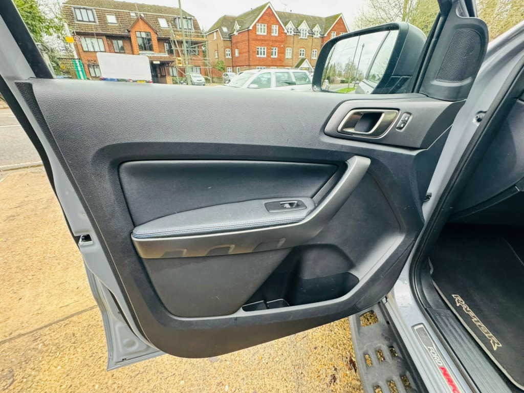 For sale is a 2020 Ford Ranger 2.0 EcoBlue Raptor Pickup Double Cab with only 45000 miles on the clock. This powerful Diesel vehicle comes with an automatic 4WD Euro 6 (s/s) engine producing 213 ps, making it perfect for tough terrains and off-road adventures. The MOT expires on 21/12/2026, and it is ULEZ compliant, ensuring it meets the latest emission standards. With 5 seats and 4 doors, this Pickup offers enough space for the whole family while also being practical for work purposes. The car comes with 17in Alloy Wheels, All Terrain Tyres, Black Exterior Mirror Finish, and a Black Plastic Front Bumper, making it look sleek and stylish. Don't miss the opportunity to own this powerful and reliable vehicle ready for any challenge. Updated wet belt and new engine fitted, new all terrain tyres fitted, finance & warranty packages available. NO VAT in alloy wheels - 8.5in dyno grey, all terrain tyres, black exterior mirror finish, black front fender grill, black plastic front bumper, black radiator grille, black side steps, black tailgate handle, dual power heated fold back mirrors with puddle lamps and signal, dyno grey exterior door handle, dyno grey painted rear bumper, dyno grey sports hoop with side rails, electrically-operated windows with one-shot drivers window, front splash guard - mud flaps, heated windshield and rear window, heavy body construction, inside chrome door handles, locking wheel nuts, power rear side window, privacy glass, rear splash guards, spare wheel - conventional, trailer tow hitch - 13 pin socket, trailer tow pack, under hood engine cover, 2 fobs, 3 point inertia rear seat belts, 433 mhz high power door lock frequency, abs - esp-rsc and terrain management, airbags - curtain, airbags - driver and front passenger, airbags - drivers knee bolster, airbags - front side, airbags - passenger deactivation, airbags - side thorax, child proof rear door locks, collision mitigation system, double locking power door lock with flip key, driver and passenger belt minder, drivers air bag restraint, isofix child safety seat attachments, keyless entry and start system, lane keeping aid, low speed crash foam in bumper, passenger airbag restraint, power tailgate lock, safety pack 16, security lock group, thatcham category 1 security system, under body protection, volumetric remote alarm system with less battery backup, air conditioning - manual, cargo management system, cool box in centre console, driver seat back mounted map pocket, dual control system - eatc, ebony headliner, electrochromic inside mirror, front roof interior assist handle, front seats - driver and passenger heated seats, gearshift knob - leather, inflatable driver knee bolster, leather handbrake with chrome button, load box bedliner, load box bedliner - power point and tie down hooks, loadbox inside tie down hooks, mountain top lockable cover and load bars, passenger seat air bag disable lamp, premium front floor mats, premium rear floor mats, rain sensitive windshield wipers, rear seat centre armrest, roof storage for driver sunglasses, seats - drivers 8-way adjustment, seats - front passenger 8-way adjustment, second row bench seat, single driver sunvisor with ticket holder - illuminated mirror and sliding rod, single passenger sunvisor with illuminated mirror and sliding rod, single rear fog light, standard electric starter, tailgate with easy-lift - lower mechanism, unique leather steering wheel, vinyl door trim panel insert, automatic headlamp control on-off, daytime running lamps, headlights - led, high mounted stop lamp with cargo light, led front fog lamps, cruise control with asld -aeb and isa, epas - electric power assisted steering, fixed rear view camera, intelligent speed assistance, locking rear axle, performance suspension, rear bumper sensor device, rear parking sensors, speed control with asld - aeb and isa, speed sign recognition, washer tank level warn lamp, ford sync 3 single cd-dab radio - tmc and active noise cancelling, fordpass connect, loadbox power point plug, power converter, rear power point plug