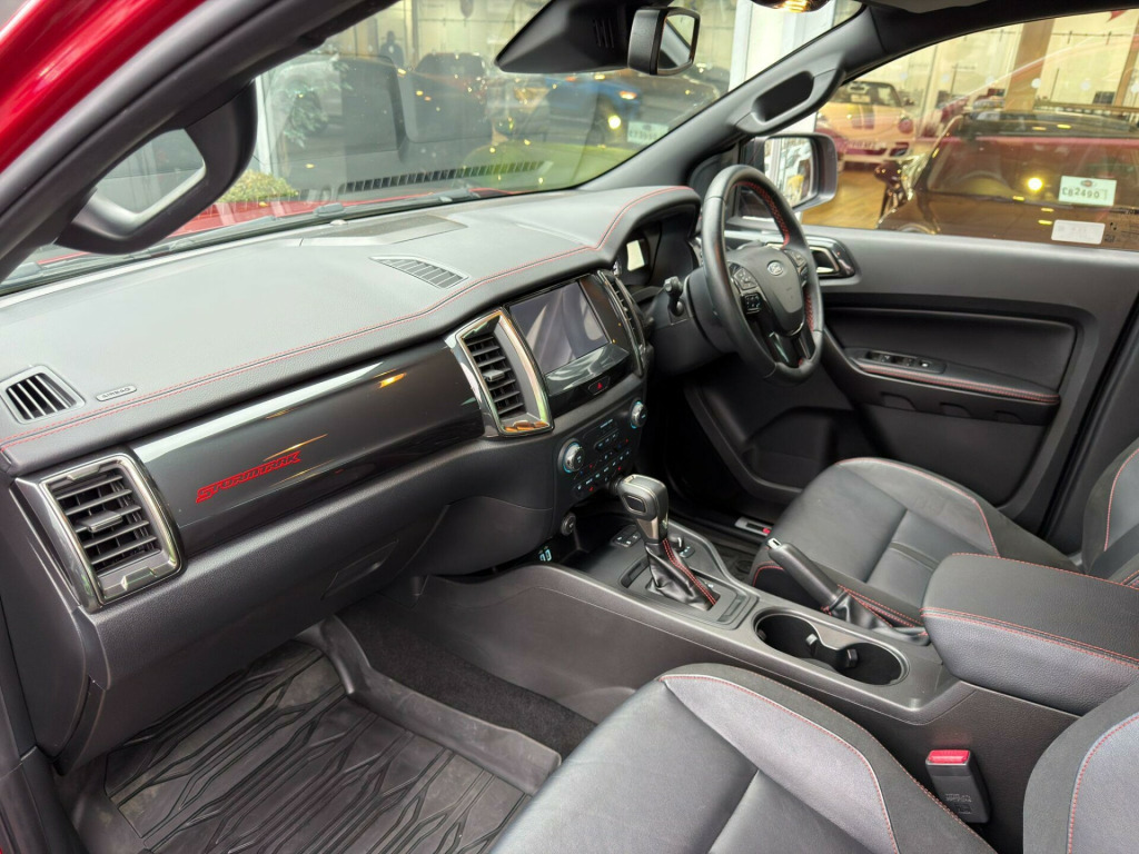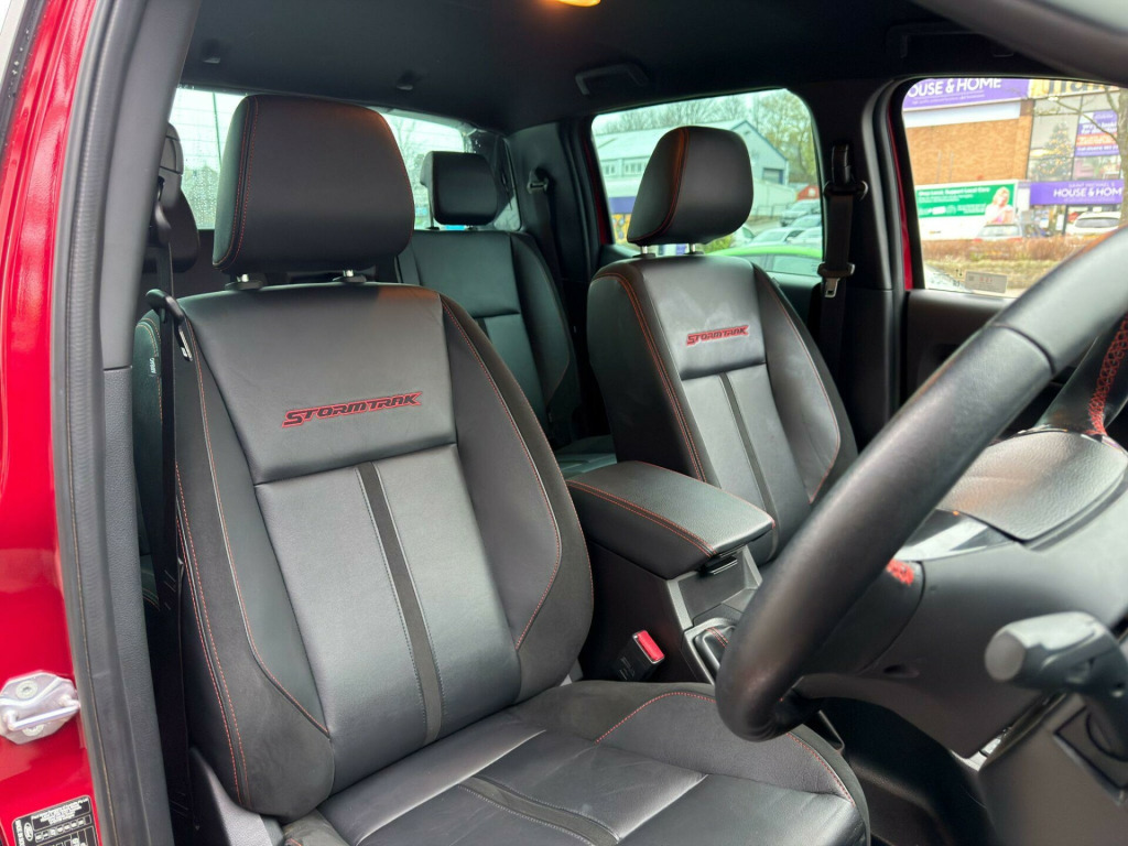 No V A T, 1 Owner Car, 2.0 EcoBlue Stormtrak Factory Options: Electric Roller Shutter, Trailer Tow Pack (Tow Bar with 13 Pin-Wiring), Ebony Journey Grain Leather Interior.Standard Specification: Stormtrak Decals, Side Steps, Roof Rails, Sports Hoop, Privacy Glass, Apple CarPlay, Android Auto, 7 Colour LED Ambient Lighting, Keyless Entry & Start, Heated Front Seats with Electric Driver’s Seat, Red Stormtrak Front Seat Embroidery, Red Stitching, Leather Multi-Function Steering Wheel, Rear View Camera, ParkPilot with Front & Rear Sensors, Cruise Control, Intelligent Speed Assist, Autonomous Emergency Braking, Collision Mitigation System, Lane Keeping Aid, Traffic Sign Recognition, Dual Zone Climate Control, LED Headlights, LED Taillights, TFT Instrument Cluster Display, Ford SYNC 3, Satellite Navigation, DAB Radio, Bluetooth, Red Illuminated Kick Plates, Electric Folding Heated Wing Mirrors, Puddle Lighting, Ebony Headliner, Mud Flaps, Leather Gearshift Knob.Finished in Lucid Red Paint. Fitted with Optional 20'' Riviera Alloy Wheels at an Additional Cost of £1,990. See Photos 3&8 for a Visual of The Standard 18'' Alloys.This car does not have a panoramic roof.All our cars are HPI clear. Please contact us for your own personal video presentation of this particular car. We offer competitive finance rates with our in-house team from PCP, lease purchase and HP. Whilst we make every effort to ensure that the specification and technical information for the cars on our website is correct, some of it is supplied by third party providers and we cannot guarantee its accuracy. It is therefore important that you do not solely rely on this information.. Stormtrak Decals, Side Steps, Roof Rails, Sports Hoop, Privacy Glass, Apple CarPlay, Android Auto, 7 Colour LED Ambient Lighting, Keyless Entry & Start, Heated Front Seats with Electric Driver’s Seat, Red Stormtrak Front Seat Embroidery, Red Stitching, Leather Multi-Function Steering Wheel, Rear View Camera, ParkPilot with Front & Rear Sensors, Cruise Control, Intelligent Speed Assist, Autonomous Emergency Braking, Collision Mitigation System, Lane Keeping Aid, Traffic Sign Recognition, Dual Zone Climate Control, LED Headlights, LED Taillights, TFT Instrument Cluster Display, Ford SYNC 3, Satellite Navigation, DAB Radio, Bluetooth, Red Illuminated Kick Plates, Electric Folding Heated Wing Mirrors, Puddle Lighting, Ebony Headliner, Mud Flaps, Leather Gearshift Knob, Trailer Tow Pack, Journey Grain Partial Leather - Ebony, Electric Roller Shutter, Fitted with Optional 20'' Riviera Alloy Wheels at an Additional Cost of £1,990. See Photos 3&8 for a Visual of The Standard 18'' Alloys..