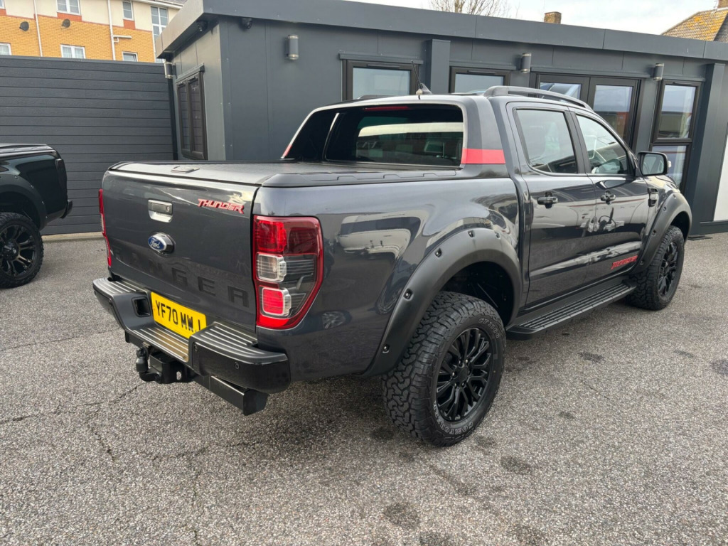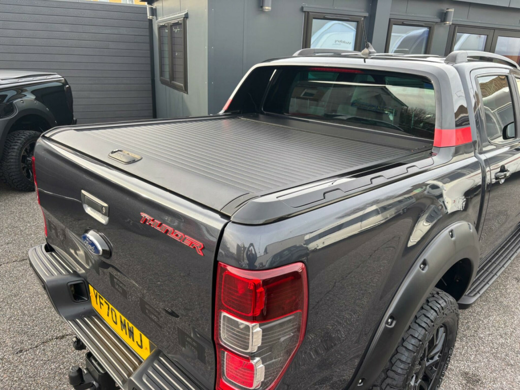 NO VAT! ONLY 32,000 MILES WITH FULL SERVICE HISTORY, This Isn't Your Average Ford Truck - This is the Rarer 'Thunder' Edition! Only 1400 Were Ever Made! Fitted With Premium Leather Seats, 18in Alloy Wheels and Exciting Exterior Styling! 2.0 Bi-Turbo Diesel with 10-Speed Automatic Gearbox. This One Comes Complete With Raptor Style Wide Body Arches, Bonnet Styling, Bonnet Guard, Front Spoiler Bar, Rear Roller Top, Plus Lots More! The trim level inside offers Leather Upholstery, Touch Screen Satellite Navigation/Radio/CD ETC, Rear Camera, Bluetooth,Keyless Start, Air Conditioning, Parking Sensors, Electric Driver's Seat, Heated Seats, Cruise Control, Multifunction Leather Steering Wheel, USB Plug-in, Airbags, Child Isofix, Remote Locking, Side Steps, Rear Bodyliner ETC ETC. Presented in Metallic Grey with Complimenting Gloss Black Alloy Wheels! PRISTINE CONDITION THROUGHOUT AND DRIVES AS NEW...Year's MOT upon purchase. Call NOW to book a test drive or for any further information! Thanks for looking, in alloy wheels - 8in ebony black painted - machined, 2 key fobs, abs - esp and roll-over mitigation, air conditioning - manual, airbags - curtain, airbags - driver and front passenger, airbags - drivers knee bolster, airbags - front side, airbags - passenger deactivation, black moulded side steps, black powder-coated roof rails, body coloured plastic front bumpers, boulder grey exterior mirror finish, boulder grey step design rear bumper, cargo box power point plug, chrome lift -decklid handle, collision mitigation system, cool box in centre console, cruise control with asld -aeb and isa, day-night inside mirror, daytime running lamps, door handles - ebony black, double locking power door lock with flip key, driver seat back mounted map pocket, dual control system - eatc, dual power heated fold back mirrors with puddle lamps and signal, dyno grey sports hoop with side rails, epas - electric power assisted steering, ebony black aerodynamic sports hoop with integrated hook with intergrated loadbox illumination and race red stripe decal, ebony black mesh design grille with race red nostril inserts, ebony headliner, electrically-operated windows with one-shot drivers window, electrochromic inside mirror, fixed rear view camera, ford sync 3 single cd-dab radio - tmc and active noise cancelling, fordpass connect, front parking aid, front seats - driver and passenger heated seats, front splash guard - mud flaps, gearshift knob - leather, headlights - led, heated windshield and rear window, high mounted stop lamp with cargo light, isofix child safety seat attachments, inside chrome door handles, intelligent speed assistance, interior ambient led lighting, led front fog lamps, lane keeping aid, leather seat trim, load box bedliner, load box bedliner - power point and tie down hooks, load rest, loadbox inside tie down hooks, locking rear axle, locking wheel nuts, moulded in colour tailgate handle, mud flaps - rear, passive anti-theft system, passive keyless entry and start, power converter, power tailgate lock, premium front and rear floor mats, privacy glass, rain sensitive windshield wipers, rear bumper chromed steel step, rear parking sensors, rear power point plug, roof storage for driver sunglasses, seats - drivers 8-way adjustment, spare wheel lock, sport leather stitched steering wheel, sports bar with high mounted brake light, sports hoop, tsr - traffic sign recognition, tailgate with easy-lift - lower mechanism, thatcham category 1 security system, thunder 3d external badging, tie down rail with rope hooks, tyre pressure sensors, under body protection, under hood engine cover, unique race-red lined interior trim