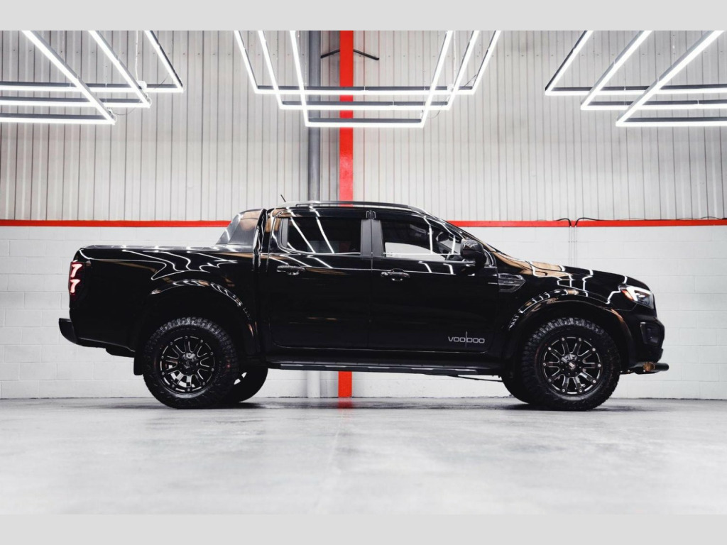 UKCVS are delighted to offer another stunning 2021 (71) Ford Ranger 2.0 Wildtrak Auto with our full Voodoo V+ Styling Pack, The Ford Ranger Wildtrak with our Voodoo V+ styling pack strikes the perfect balance between aggressive styling and the uncompromised practicality of Fords class leading 4x4 commercial vehicle. All modifications are carried out to the highest possible standards in our own workshop, using our own parts to completely transform the look of the Ford Ranger whilst still retaining a factory OEM+ look...this is the ultimate pickup truck that really does stand out from the crowd!, Our Voodoo V+ Styling pack consists of... , , V+ Stealth Grille with Signature DRLs, Voodoo Tri-LED Headlights, Colour Coded Wide Arch Kit , Voodoo Smoked LED Rear Lights, 18 Fuel Covert Wheels , 285/60/18 RT+ Tyres , Smoked LED Indicators , Front Nudge Bar, Voodoo Decals , LED Puddle Lamps , LED Number Plate Lamps, Full Black Pack, This Ranger has been incredibly well looked after by the one previous owner, and is presented in fantastic condition throughout , Please note: All commercial vehicles are subject to VAT at 20% unless stated otherwise, Please Note: Whilst we do our best to ensure the accuracy of all of our vehicle listings, some parts of the specification and vehicle data are auto populated and UKCVS accept no responsibility for any errors in this listing. If there is a particular specification feature that you require, please confirm prior to purchasing with a member of our sales team.