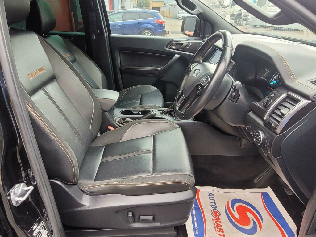 This 2023 Ford Ranger Wildtrak is a robust and capable vehicle, ready for any challenge. Powered by a 2.0 litre EcoBlue diesel engine and featuring a four wheel drive drivetrain, this Euro 6 compliant model offers impressive performance. With a substantial towing weight of 3500 kg, it is well equipped for towing needs. The Wildtrak derivative comes with a Trailer Tow Pack including a towbar, a fixed rear view camera with rear parking assistance, and rear parking sensors for added convenience.The Wildtrak trim level ensures a comfortable and convenient driving experience. It includes passive keyless entry and start, allowing for effortless access and ignition. For those colder days, the front seats are heated, providing extra comfort for both the driver and passenger. These features, combined with the vehicle's powerful engine and four wheel drive system, highlight how this Ford Ranger Wildtrak stands out from other similar vehicles, offering a superior blend of utility and comfort. in alloy wheels - 8in boulder grey-machined, 2 key fobs, abs - esp and roll-over mitigation, airbags - curtain, airbags - driver and front passenger, airbags - drivers knee bolster, airbags - front side, body coloured plastic front bumpers, boulder grey exterior door handle, boulder grey exterior mirror finish, boulder grey radiator grille, boulder grey step design rear bumper, cargo box power point plug, chrome lift -decklid handle, collision mitigation system, cruise control with asld -aeb and isa, day-night inside mirror, daytime running lamps, double locking power door lock with flip key, driver seat back mounted map pocket, dual control system - eatc, dual power heated fold back mirrors with puddle lamps and signal, dyno grey sports hoop with side rails, epas - electric power assisted steering, ebony headliner, electrically-operated windows with one-shot drivers window, electrochromic inside mirror, fixed rear view camera, ford sync 3 single cd-dab radio - tmc and active noise cancelling, fordpass connect, front parking aid, front seats - driver and passenger heated seats, front splash guard - mud flaps, gearshift knob - leather, headlights - led, heated windshield and rear window, high mounted stop lamp with cargo light, isofix child safety seat attachments, inside chrome door handles, intelligent speed assistance, interior ambient led lighting, led front fog lamps, lane keeping aid, leather seat trim, load box bedliner, load box bedliner - power point and tie down hooks, load rest, loadbox inside tie down hooks, locking rear axle, locking wheel nuts, moulded in colour tailgate handle, mud flaps - rear, painted front fender grill, passive anti-theft system, passive keyless entry and start, power converter, power tailgate lock, premium front and rear floor mats, privacy glass, rain sensitive windshield wipers, rear bumper chromed steel step, rear parking sensors, rear power point plug, roof rails, roof storage for driver sunglasses, seats - drivers 8-way adjustment, side step with brushed inserts, spare wheel lock, sport leather stitched steering wheel, sports bar with high mounted brake light, sports hoop, tsr - traffic sign recognition, tailgate with easy-lift - lower mechanism, thatcham category 1 security system, tie down rail with rope hooks, tyre pressure sensors, under body protection, under hood engine cover, wildtrak door trim panel insert, trailer tow pack, 18in alloy wheels - 8in fully painted boulder grey-machined, journey grain partial leather - ebony