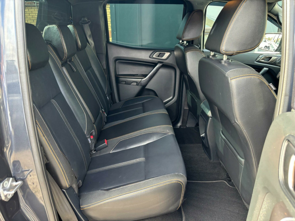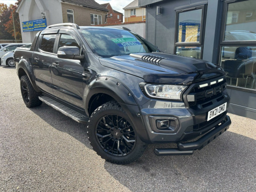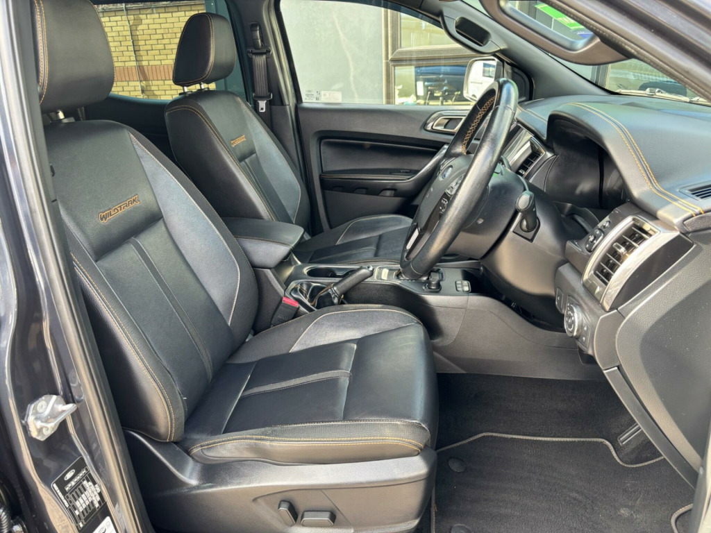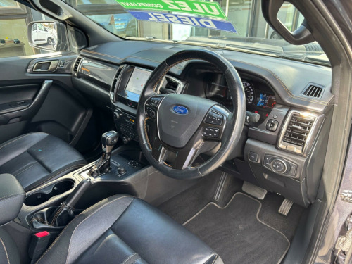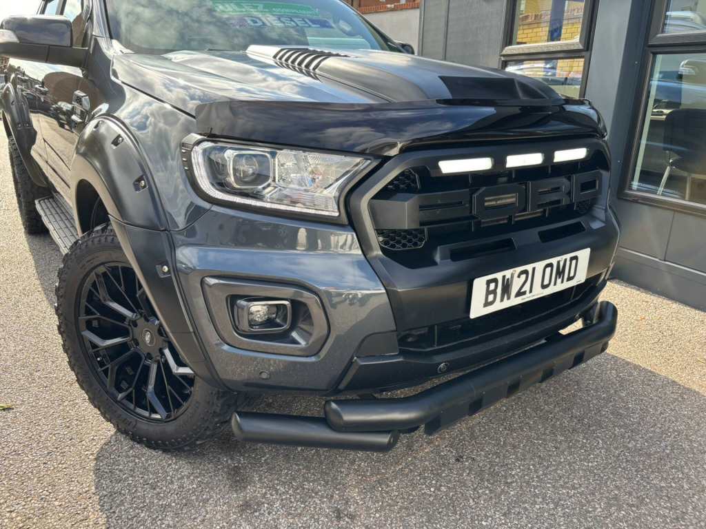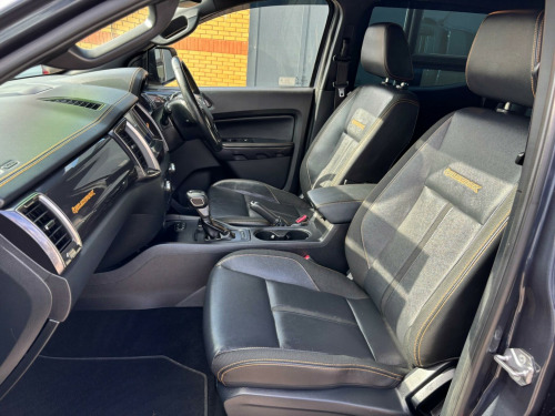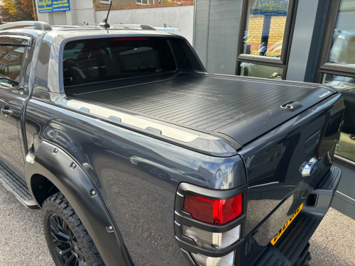 NO VAT! This Ford Ranger Wildtrak 2.0 Litre EcoBlue Diesel Automatic Is In Stunning Condition Inside And Out!! FULL FORD SERVICE HISTORY! Presented in Metallic Grey. Fully Loaded With Wide Arches And Body Styling - This Isn't Your Average Wildtrak! 20'' Black Alloys, Wide Body Arches, Front Spoiler Bar, Bonnet Enhancement, Rear Roller Shutter Plus Lots More! The Wildtrak trim level inside offers Touch Screen Satellite Navigation, Rear Camera, Air Conditioning, Keyless Start ETC! PART EXCHANGE WELCOME, Finance Available!This Ranger Wildtrak stands out with its advanced LED headlights, providing excellent visibility. For added convenience, it includes passive keyless entry and start, allowing you to access and operate the vehicle without needing to take your keys out of your pocket. These features, combined with the vehicle's strong engine power and four wheel drive capability, demonstrate its superiority over similar vehicles, offering a more refined and practical driving experience for both work and leisure., ailer tow pack, journey grain partial leather - ebony, 18in alloy wheels - 8in boulder grey-machined, 2 key fobs, abs - esp and roll-over mitigation, air conditioning - manual, airbags - curtain, airbags - driver and front passenger, airbags - drivers knee bolster, airbags - front side, airbags - passenger deactivation, body coloured plastic front bumpers, boulder grey exterior door handle, boulder grey exterior mirror finish, boulder grey radiator grille, boulder grey step design rear bumper, cargo box power point plug, chrome lift -decklid handle, collision mitigation system, cool box in centre console, cruise control with asld -aeb and isa, day-night inside mirror, daytime running lamps, double locking power door lock with flip key, driver seat back mounted map pocket, dual control system - eatc, dual power heated fold back mirrors with puddle lamps and signal, dyno grey sports hoop with side rails, epas - electric power assisted steering, ebony headliner, electrically-operated windows with one-shot drivers window, electrochromic inside mirror, fixed rear view camera, ford sync 3 single cd-dab radio - tmc and active noise cancelling, fordpass connect, front parking aid, front seats - driver and passenger heated seats, front splash guard - mud flaps, gearshift knob - leather, headlights - led, heated windshield and rear window, high mounted stop lamp with cargo light, isofix child safety seat attachments, inside chrome door handles, intelligent speed assistance, interior ambient led lighting, led front fog lamps, lane keeping aid, leather seat trim, load box bedliner, load box bedliner - power point and tie down hooks, load rest, loadbox inside tie down hooks, locking rear axle, locking wheel nuts, moulded in colour tailgate handle, mud flaps - rear, painted front fender grill, passive anti-theft system, passive keyless entry and start, power converter, power tailgate lock, premium front and rear floor mats, privacy glass, rain sensitive windshield wipers, rear bumper chromed steel step, rear parking sensors, rear power point plug, roof rails, roof storage for driver sunglasses, seats - drivers 8-way adjustment, side step with brushed inserts, spare wheel lock, sport leather stitched steering wheel, sports bar with high mounted brake light, sports hoop, tsr - traffic sign recognition, tailgate with easy-lift - lower mechanism, thatcham category 1 security system, tie down rail with rope hooks, tyre pressure sensors, under body protection, under hood engine cover, wildtrak door trim panel insert