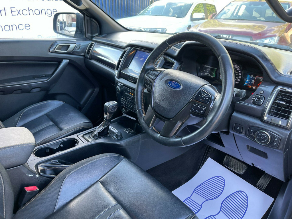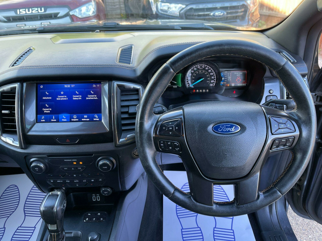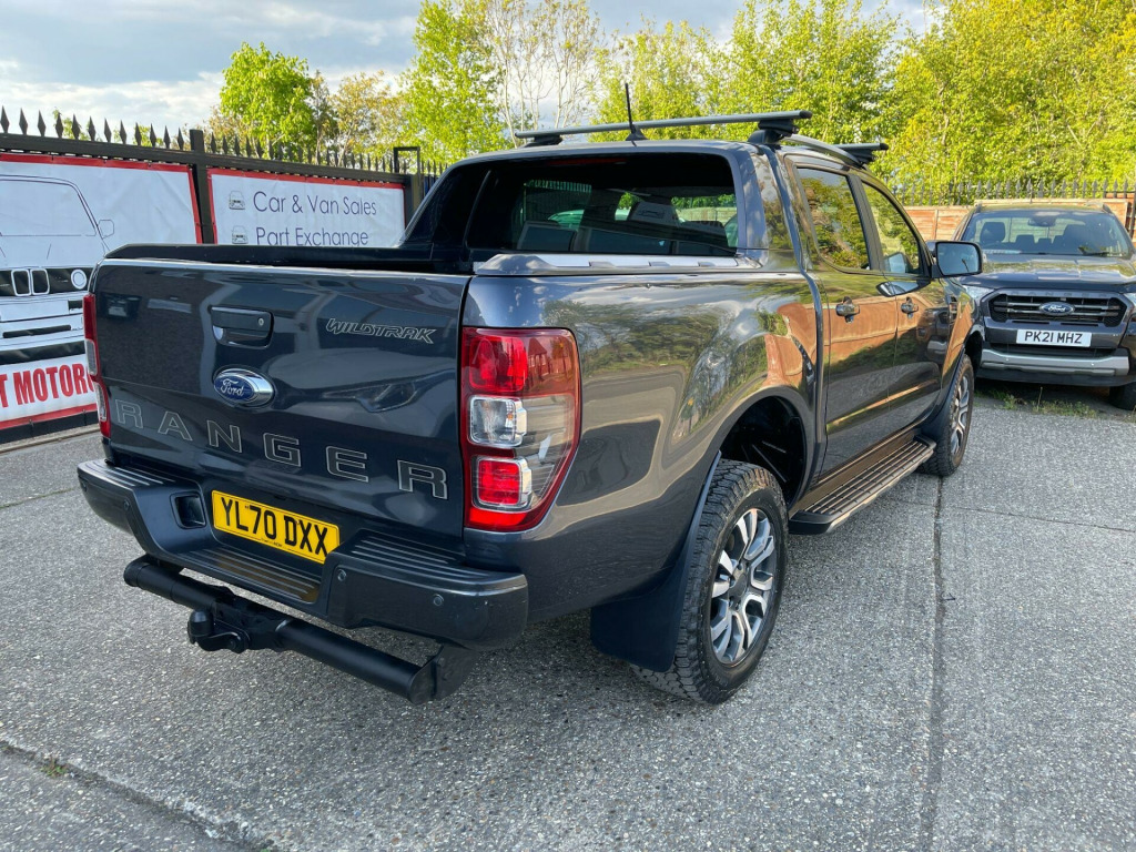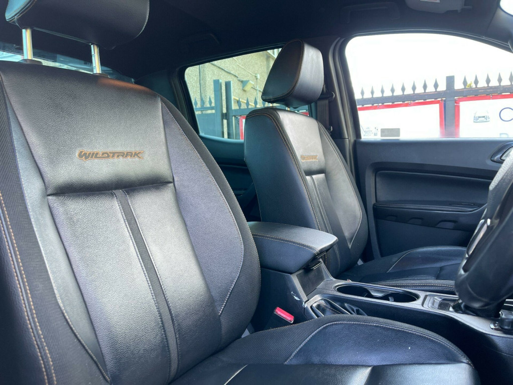 +VAT. We are delighted to be presenting to you this wonderful and top of the range FACELIFT 2021 (70-plate) Ford Ranger AUTOMATIC WILDTRAK in lovely condition with many upgrades such as LED Daylight headlights, Start-Stop switch, FULL leather heated and electric seats, cruise control, reverse camera, parking sensors (front and rear), SATNAV,..., amongst many others. This example has only had ONE ONE OWNER FROM BRAND NEW which have been a large organisation and they have regularly maintained the truck, visible from its internal and external condition. This lovely truck comes with FULL SERVICE HISTORY (two stamps present on the book), it will be given to you with a long MOT and it has just been serviced fully:-Engine Oil Removed and Replaced-Engine Oil Filter Removed and Replaced-Air Filter Removed and ReplacedInternal and external condition of the car are good for the age and mileage; you can judge for yourself just by looking at the images and the video (more, larger images available on our website TRUSTMOTORCARS CO UK) or hopefully if you visit us very soon. Please do get in touch with us should you wish to arrange a viewing or if you would like to have it delivered to your door. More images of this car and many more are on our website so please feel free to visit us there; thank you. Part Exchange Welcome.-GUARANTEED MOT: WE WILL HAVE A NEW MOT DONE FOR YOU IF THE MOT RUNS OUT SOON-AFFORDABLE FINANCE OPTIONS AVAILABLE - PLEASE GET IN TOUCH WITH US FOR MORE DETAILS-THREE MONTHS WARRANTY-OPTIONAL EXTENDED AA WARRANTY COVER-MORE PHOTOS AND VIDEOS OF THIS VEHICLE AND MANY OTHERS ON OUR WEBSITE: TRUSTMOTORCARS CO UK-PART EXCHANGE WELCOME.-WE ARE BASED NEXT TO HEATHROW AIRPORT, MINUTES TO M25 J14, M4, M40, M3 and A312-NATIONWIDE DELIVERY AVAILABLE. urney grain partial leather - ebony, 18in alloy wheels - 8in boulder grey-machined, 2 key fobs, abs - esp and roll-over mitigation, air conditioning - manual, airbags - curtain, airbags - driver and front passenger, airbags - drivers knee bolster, airbags - front side, airbags - passenger deactivation, body coloured plastic front bumpers, boulder grey exterior door handle, boulder grey exterior mirror finish, boulder grey radiator grille, boulder grey step design rear bumper, cargo box power point plug, chrome lift -decklid handle, collision mitigation system, cool box in centre console, cruise control with asld -aeb and isa, day-night inside mirror, daytime running lamps, double locking power door lock with flip key, driver seat back mounted map pocket, dual control system - eatc, dual power heated fold back mirrors with puddle lamps and signal, dyno grey sports hoop with side rails, epas - electric power assisted steering, ebony headliner, electrically-operated windows with one-shot drivers window, electrochromic inside mirror, fixed rear view camera, ford sync 3 single cd-dab radio - tmc and active noise cancelling, fordpass connect, front parking aid, front seats - driver and passenger heated seats, front splash guard - mud flaps, gearshift knob - leather, headlights - led, heated windshield and rear window, high mounted stop lamp with cargo light, isofix child safety seat attachments, inside chrome door handles, intelligent speed assistance, interior ambient led lighting, led front fog lamps, lane keeping aid, leather seat trim, load box bedliner, load box bedliner - power point and tie down hooks, load rest, loadbox inside tie down hooks, locking rear axle, locking wheel nuts, moulded in colour tailgate handle, mud flaps - rear, painted front fender grill, passive anti-theft system, passive keyless entry and start, power converter, power tailgate lock, premium front and rear floor mats, privacy glass, rain sensitive windshield wipers, rear bumper chromed steel step, rear parking sensors, rear power point plug, roof rails, roof storage for driver sunglasses, seats - drivers 8-way adjustment, side step with brushed inserts, spare wheel lock, sport leather stitched steering wheel, sports bar with high mounted brake light, sports hoop, tsr - traffic sign recognition, tailgate with easy-lift - lower mechanism, thatcham category 1 security system, tie down rail with rope hooks, tyre pressure sensors, under body protection, under hood engine cover, wildtrak door trim panel insert